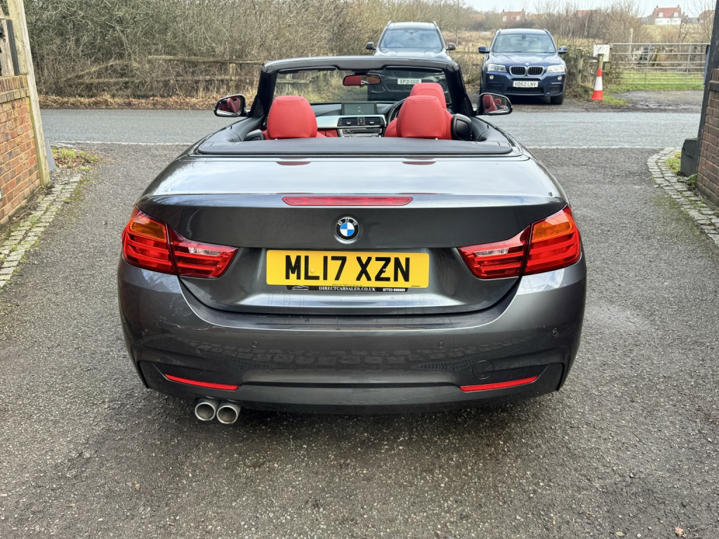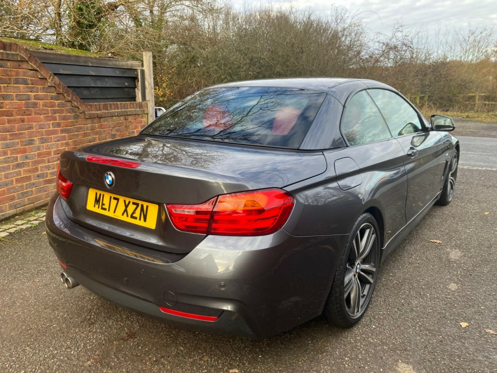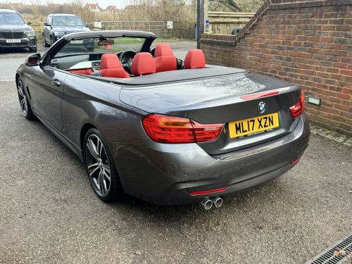 Direct Car Sales are excited to offer a 2017 BMW 4 SERIES for sale. This grey vehicle is a diesel model, with a 1995cc engine. The car has a great service history and has had only two former keepers. , The vehicle is equipped with enhanced Bluetooth preparation, including USB connectivity, and a Harman Kardon sound system, providing a high-quality audio experience. The M Sport Plus package adds a sporty touch, while the Wind Deflector and Convertible Comfort Package enhance the driving experience. The car also features heated seats and a heated steering wheel, as well as a Warm Air Collar for added comfort. , The interior boasts coral red leather seats, and the exterior features Mineral Grey Metallic paint. The M Sport braking system provides excellent stopping power. , We offer low-rate finance options and part-exchange is welcome. The vehicle comes with a three-month warranty for added peace of mind. If youre looking for a luxury driving experience, this BMW 4 SERIES is definitely worth considering.