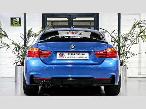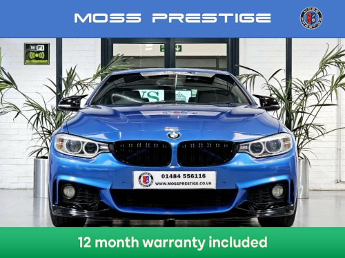 Moss Prestige are proud to offer this Stunning BMW 4 SERIES 2.0 420d M Sport Coupe Euro 6 ULEZ FREE, coming with Service History And over £3K worth of extras. Coming with a 12 Months Moss Prestige Care Package which also Includes 12 Months Warranty and 12 Months MOT for the new Owners peace of mind. Finished in beautiful Estoril Blue, Full M Performance Black Pack Kit, including Gloss Black Front Splitter, Gloss Black Double Spoke Kidney Grilles, M4 Gloss Black Mirror Covers, Gloss Black Side skirt extensions and Rear Upside down shark fin Diffuser. Freshly powder coated 20 inch Gloss Black Staggered Alloy Wheels. This beauty also comes with extras including, Nav System, Front & Rear Parking Sensors, Black heated Leather Interior, enhanced Telephone Bluetooth, CD/USB/Aux Media Player with Bluetooth streaming and DAB Radio, Cruise Control. Climate Control and Air Conditioning just to name a few. One Not to be missed and has to be seen in the flesh to be appreciated. All Our Cars Are Fully HPI Checked Including Write Off, Stolen& Recovered, Mileage Data Check & Finance So You Can Rest Assured Knowing Our Vehicles Don't Have An Hidden Past., All Cars Come With A Full HPI Printout., Part Exchange Welcome, Credit & Debit Cards accepted, Finance Arranged, Please Call Or Email To Arrange A Test Drive, Indoor showroom located In Huddersfield West Yorkshire , Full service history, Excellent bodywork, Interior - Excellent Condition, Tyre condition Good, Blue 12V Power Socket - Centre Console, 12V Power Socket - Passenger Footwell, 18in Alloy Wheels - Light M Star Spoke -, ABS - Anti Lock Braking System, ASC - Automatic Stability Control, Air Breather - Black High Gloss, Air Conditioning - Automatic with Two-Zo, Air Conditioning and Radio Control Panel, Airbags - Curtain, Airbags - Driver, Airbags - Front Side, Airbags - Passenger, Airbags - Passenger Deactivation, Alarm System Thatcham 1 with Remote Cont, Ambient Lighting - Switchable BMW Classi, Armrest - Front with Storage Compartment, Armrest - Rear Centre, Automatically Dimming Rear View Mirror, Auxiliary Input, BMW ConnectedDrive Online Services, BMW Emergency Call, BMW Navigation Business