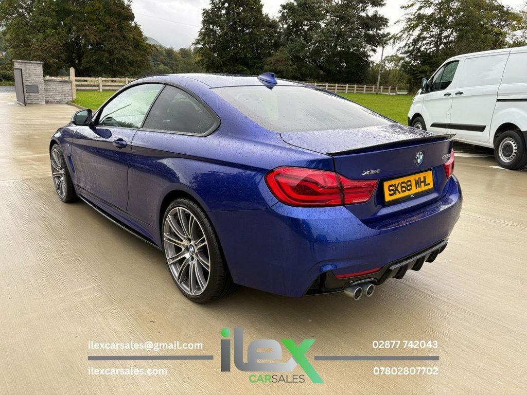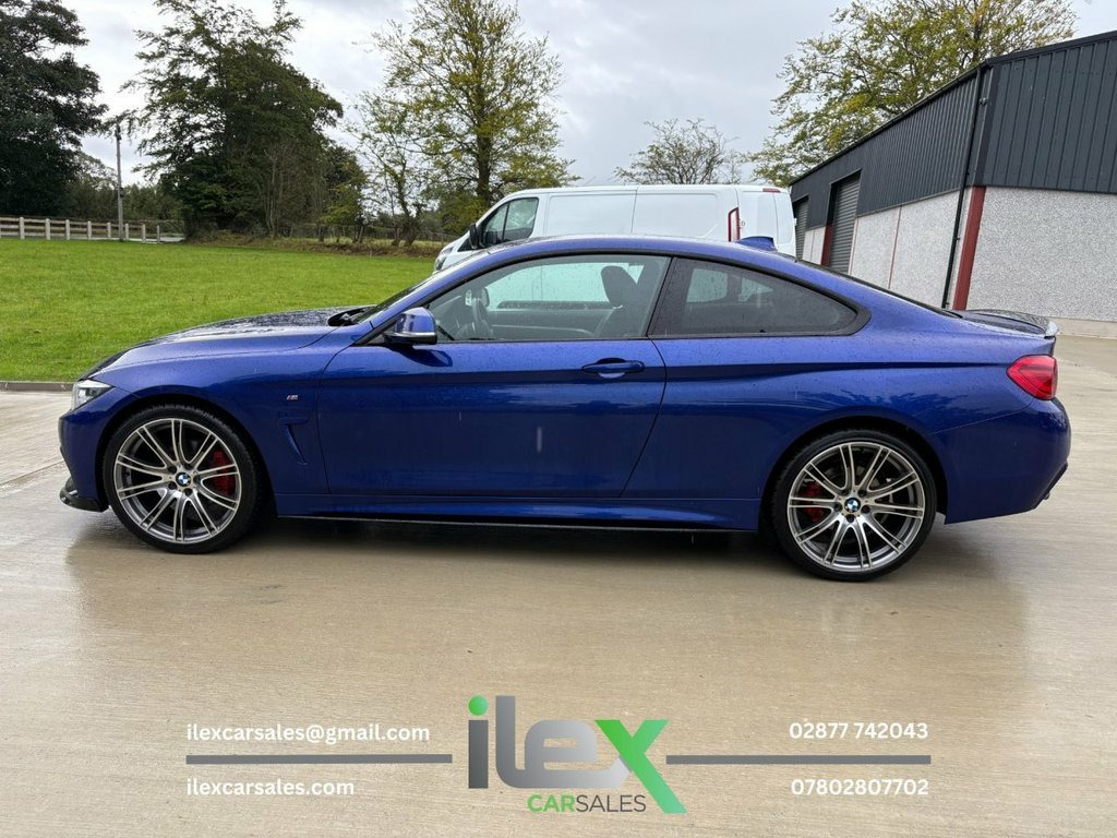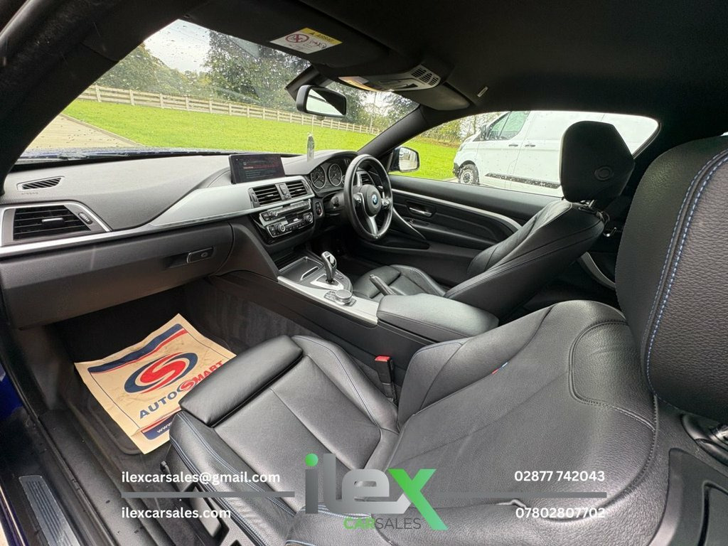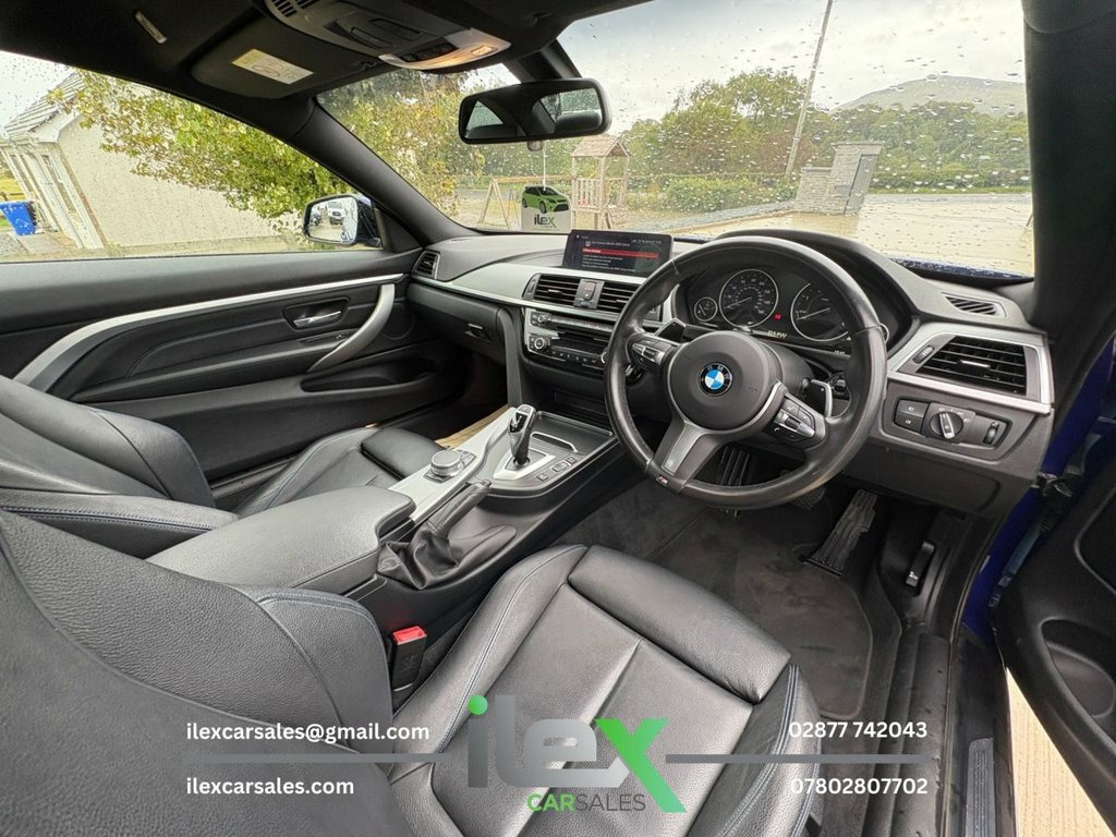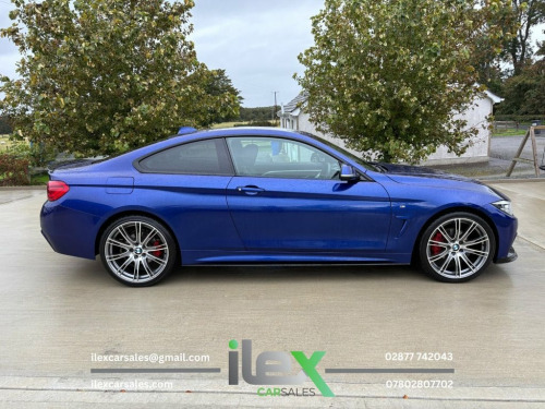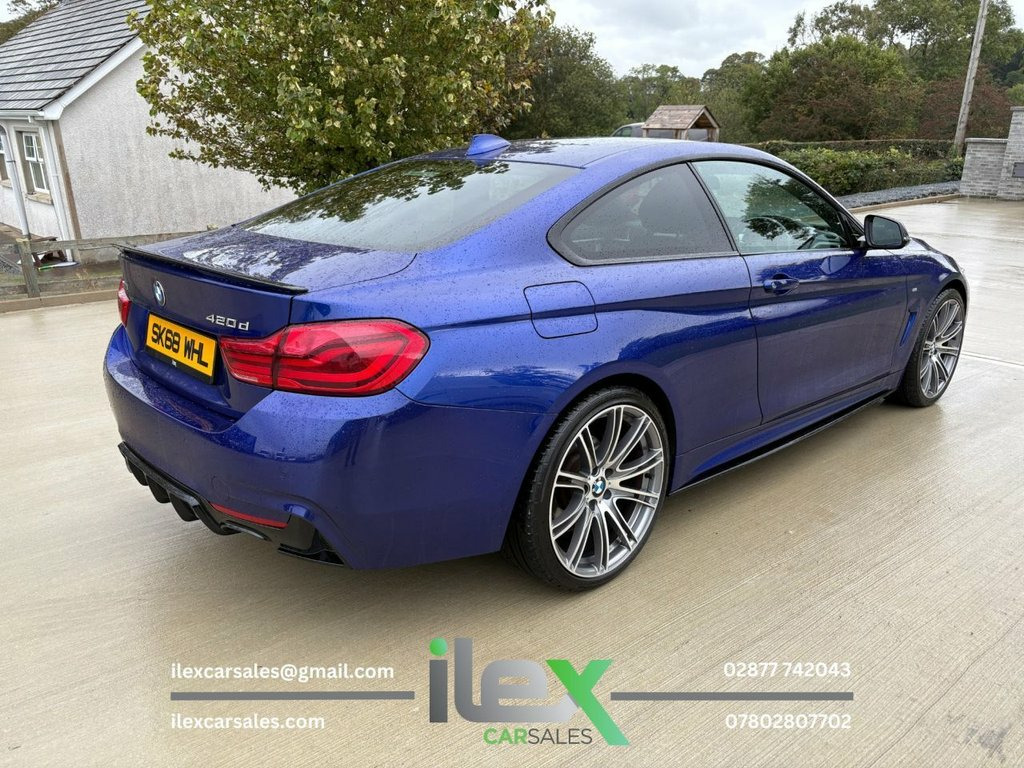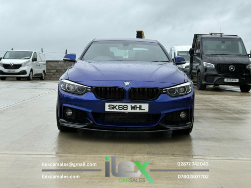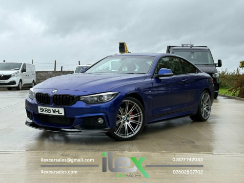 2018 BMW 420d M Sport Coupe xDrive – Style Meets Substance Key Details: San Marino Blue – 2.0L Diesel | 190BHP | xDrive AWD – Automatic | 44.1 MPG Avg – 92,021 Miles Interior Features: – Heated Sport Seats | M Sport Leather Steering Wheel – BMW iDrive with 8.8" Pro Nav | DAB | Bluetooth | USB – Ambient Lighting with BMW Classic/Cold White LED – Dual-Zone Climate | Dakota Leather in Black – Park Distance Control – Front & Rear – Apple CarPlay Prep | ConnectedDrive Services – Auto Lights & Wipers | Rain Sensor Exterior Highlights: – M Sport Styling Pack – 20" Alloys (£895 optional extra) – High Gloss Shadowline Trim – LED Headlights & Tail Lights – Sun Protection Glazing – Twin Exhaust Finishers (Chrome) £14,495 028 7774 2043 | 07802 807702 12V Power Socket in Front Centre Console, Access to BMW Connected Plus for 12 Mont, Air Breather - Black High Gloss, Air Breather - Body Colour, Air Conditioning - Automatic with Two-Zo, Air Conditioning and Radio Control Panel, Airbags, Alarm System - Thatcham 1 with Remote Co, Ambient Lighting - Switchable BMW Classi, Apple CarPlay Preparation, Armrest - Front - Folding with Storage C, Battery Safety Cut Off, Bluetooth Hands-Free Facility with USB A, BMW ConnectedDrive Online Services, BMW Emergency Call, BMW Professional Radio with Single CD Pl, BMW TeleServices, Bottle Holders Integrated into Door Trim, Brake Pad Wear Indicator - Front and Rea, Bumper System Front and Rear - Replaceab, C