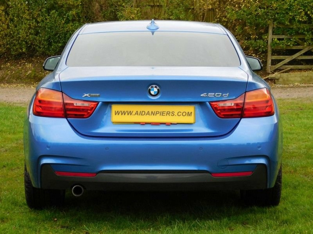 2014/14 BMW 420d xDrive M Sport Coupe Auto (184ps) Estoril Blue Metallic with Black Dakota Leather – Full Service Record – Black Alloys – Superb Condition – Two Former Keepers – HPI Clear Presented in iconic Estoril Blue metallic, this BMW 420d xDrive M Sport Coupe looks outstanding — arguably the most desirable colour available for this model, complemented by Black Dakota leather upholstery and gloss black M Double-Spoke alloys for a striking and timeless appearance. This vehicle was supplied by Aidan Piers via our CARSEARCH facility to a previous client and later sold again to the most recent owner — both reporting enjoyable, trouble-free motoring. Only the 2021 service was carried out by us prior to the customer's collection. Powered by BMW's 2.0 TwinPower Turbo diesel engine producing 184ps, paired with the xDrive all-wheel-drive system and Sport Automatic transmission, it combines refined performance, responsive handling, and impressive economy. Service History: Serviced at 19,144 miles (Jan 2016), 37,114 (Oct 2016), 45,581 (Oct 2017), 59,268 (Jun 2021 – Aidan Piers), 101,078 (Jul 2022), 106,992 (Jul 2023), and most recently at 114,862 miles (Jul 2024). Supplied with both keys, V5, and a complete service record. Specification Highlights Estoril Blue Metallic with Black Dakota Leather 18" Black M Double-Spoke Alloys (Style 442M) M Sport Package with Aerodynamic Styling M Leather Steering Wheel & A 12V Power Socket - Centre Console, 12V Power Socket - Passenger Footwell, 18in Alloy Wheels - Light M Star Spoke -, ABS - Anti Lock Braking System, ASC - Automatic Stability Control, Air Breather - Black High Gloss, Air Conditioning - Automatic with Two-Zo, Air Conditioning and Radio Control Panel, Airbags - Curtain, Airbags - Driver, Airbags - Front Side, Airbags - Passenger, Airbags - Passenger Deactivation, Alarm System Thatcham 1 with Remote Cont, Ambient Lighting - Switchable BMW Classi, Armrest - Front with Storage Compartment, Armrest - Rear Centre, Automatically Dimming Rear View Mirror, Auxiliary Input, BMW ConnectedDrive Online Services, BMW Emergency Call, BMW Navigation Business