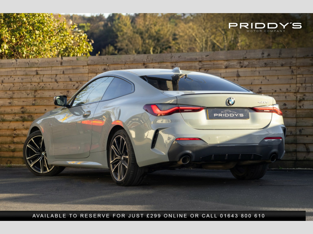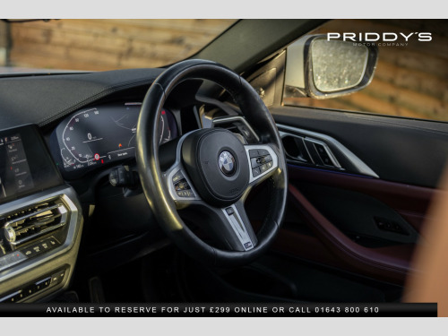 ** This vehicle has recently passed our meticulous pre-purchase inspection and has now arrived on site, where it has undergone a second detailed assessment and extended test drive. The photographs capture the car exactly as it arrived — already presenting beautifully, as only the finest examples ever make it into our selection. It is now undergoing final preparation behind the scenes and will require only light finishing touches before being ready for handover. Given its superb condition and desirability, we recommend reserving early to secure it ahead of other discerning buyers **, , , , Priddys Motor Company. , Finished in the ever-popular Brooklyn Grau metallic, this 420d M Sport Coupe immediately stands out for all the right reasons. It looks modern, clean and effortlessly premium — exactly what buyers want in a current-shape 4 Series. Out on the road it feels wonderfully composed, pairing the smooth, efficient mild-hybrid diesel with a genuinely comfortable, refined ride that makes it an easy car to enjoy every day. , Inside, the specification transforms the experience. The Vernasca Leather in Tacora Red with decorative stitching brings a bold, luxurious contrast to the exterior, while the BMW Individual piano black trim deepens the sense of quality throughout the cabin. A heated steering wheel and front lumbar support add a layer of comfort that makes this coupe feel properly upmarket. Comfort Plus Package, Sun Protection Glass and the desirable M Sport Pro Package give the car the presence and equipment buyers actively look for, while the electric glass sunroof lifts the cabin beautifully. The Harman Kardon sound system finishes the interior off with the clarity and depth it deserves. , , , SERVICE HISTORY, , The car has been maintained exclusively by BMW main dealers up to 2025, with our specialist inspection just completed:, PDI at delivery in April 2022 at five miles. Oil and pollen in January 2023 at thirteen thousand miles. Oil and pollen in December 2023 at twenty-eight thousand miles. Oil, fuel filter, brake fluid and inspection in April 2025 at forty-one thousand miles. Our recent inspection at the current mileage ensures its ready to drive and enjoy with confidence. , , , SPECIFICATION, , Brooklyn Grau metallic, Vernasca Leather Tacora Red with decorative stitching, BMW Individual Piano Black interior trim, heated steering wheel, front lumbar support, Comfort Plus Package, Sun Protection Glass, M Sport Pro Package, Harman Kardon audio and electric glass sunroof. , Our inspection confirms Continental tyres all round, with discs and pads in very good condition. , , , Why Buy from Priddys Motor Company, , , Excellence isnt optional — its standard.