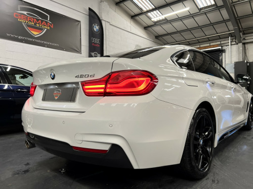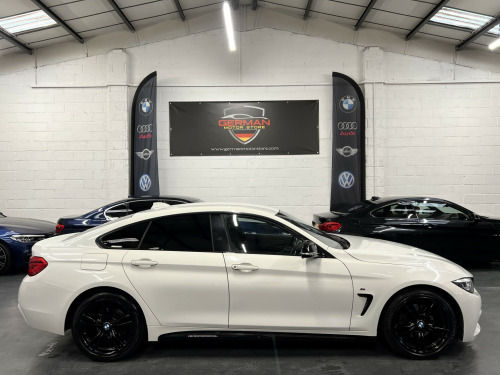 German Motor Store are delighted to offer this 2017 (67) BMW 420d M Sport Gran Coupe to market, finished in Alpine white with Black Leather Interior trim. With just 2 previous keepers, this stunning 4 series arrives with a comprehensive BMW main dealer service history; it will also leave us with a fresh 12-month MOT. It is very frugal to run and maintain, retuning 55 mpg, & is Euro 6 ULEZ compliant meaning no inner-city charges. Specification is very impressive with over £4k of options which include... M performance side skirts, gloss black kidney grills with matching mirrors, upgrade gloss black alloy wheels, heated leather seats, sun protection glass, digital dual zone climate control, professional media navigation, parking sensors, electric seats with memory function, extended storage, electric tailgate, enhanced Bluetooth, folding mirrors, driver comfort pack & WiFi functionality. Viewers will not be disappointed on inspection. Part exchange welcome. Be sure to check our google reviews to see what other are saying. , Viewing By Appointment Only!!, , German Motor Store Limited is a family operated business specializing in quality used German Cars with over 30 years experience in the industry! We are authorized and registered by the FCA so can arrange finance for our customers, if necessary, through our selected finance companies. Our company aim is to independently offer quality used German vehicles at competitive prices, with an excellent and honest service backed up by dealership facilities. We are located on the out skirts of the Derbyshire Peak District in Chesterfield, 10 minutes drive from either junction 29 or 30 of the M1 Motorway. We are very relaxed here at German Motor Store you will be able to view your selected car in your own time and never feel under pressure.