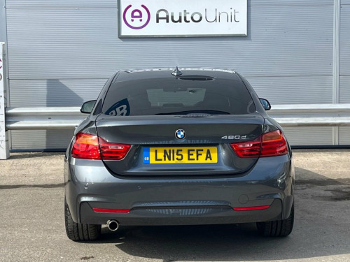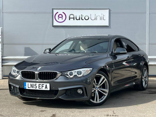 Discover this exceptional 2015 BMW 4 Series Gran Coupe 420d M Sport, boasting remarkably low mileage of just 44,471 miles. It features the desirable M Sport trim, enhanced by striking 19in M Double Spoke Style 442M alloy wheels. Practicality is also key, with 40 20 40 split folding rear seats and automatically dimming folding door mirrors. Experience the dynamic performance of this 420d M Sport, capable of accelerating from 0 to 60mph in a swift 7.3 seconds. This impressive acceleration, combined with its Euro 6 emissions standard, sets it apart from many similar vehicles. Further enhancing your driving experience are the enhanced Bluetooth telephone preparation with USB audio interface and voice control, and the added privacy and comfort of sun protection glazing. 12V Power Socket - Front, 12V Power Socket - Passenger Footwell, 18in Alloy Wheels - Light M Star Spoke -, 20GB Memory, ABS - Anti Lock Braking System, ASC - Automatic Stability Control, Air Breather - Black High Gloss, Air Conditioning - Automatic with Two-Zo, Airbags - Driver, Airbags - Front Side, Airbags - Passenger, Airbags - Passenger Deactivation, Alarm System Thatcham 1 with Remote Cont, Ambient Lighting - Switchable BMW Classi, Armrest - Front with Storage Compartment, Armrest - Rear Centre, Automatically Dimming Rear View Mirror, Auxiliary Input, BMW Apps Interface, BMW ConnectedDrive Online Services, BMW Emergency Call, BMW Professional Radio - Single CD and M, BMW TeleServices, B