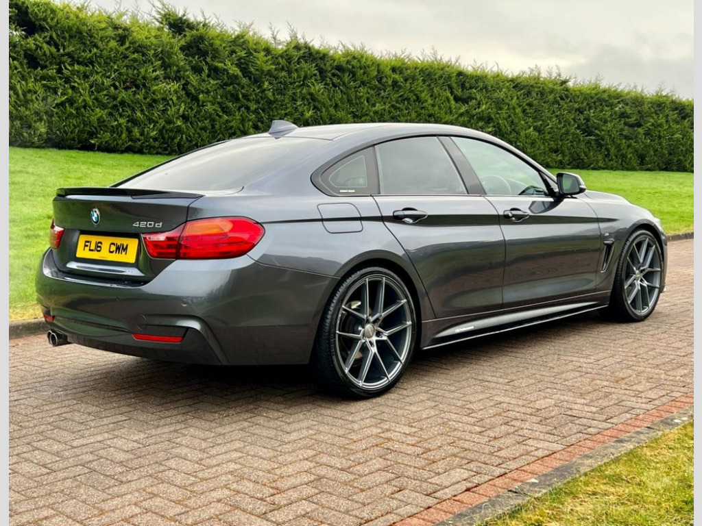March 2016 BMW 420d Gran Coupe M-Sport Auto in Mineral Grey. Full Service History. Mot'd to November 2026. Loaded with spec including Full Dakota Leather Interior, Pro-Navigation System, Xenon Lights, Parking Aid, Bluetooth, DAB Radio, Dual Climate Control, On-Board Computer, Central Armrest, Cruise Control, M-Performance Kit, Privacy Glass, Upgraded 20" Veeman Alloys etc. FINANCE AVAILABLE AT KEEN RATES!! Viewing by Appointment Only Please. 12V Power Socket in Front Centre Console, 18in Alloy Wheels - M Double Spoke - 400, 3.5mm Auxiliary Input Point in Centre Co, Air Breather - Black High Gloss, Air Conditioning - Automatic with Two-Zo, Air Conditioning and Radio Control Panel, Airbags, Alarm System - Thatcham 1 with Remote Co, Ambient Lighting - Switchable BMW Classi, Armrest - Front - Folding with Storage C, Automatic Tailgate, Automatically Dimming Rear View Mirror, Battery Safety Cut Off, Bluetooth Hands-Free Facility with USB A, BMW ConnectedDrive Online Services, BMW Emergency Call, BMW Professional Radio with Single CD Pl, BMW TeleServices, Bottle Holders Integrated into Door Trim, Brake Pad Wear Indicator - Front and R
