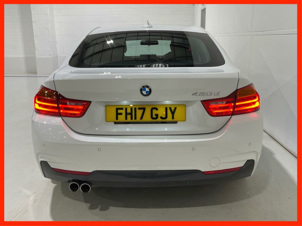 FINANCE & PART EXCHANGE AVAILABLE* - Only 1 registered keeper & 56,523 miles from new, SERVICE HISTORY, 2 KEYS - this FANTASTIC BMW 420D 2.0 DIESEL GRAN COUPE M SPORT AUTOMATIC is finished in stunning sports white & is complimented with contrasting full black leather sports trim and extends itself to the following additional features - BMW M Sports aerodynamic styling, on board satellite navigation system, dual zone climate control / automatic air conditioning, trip computer, cruise control with speed limiter, leather trimmed multi function steering wheel with paddle shift, front & rear park distance control, driver & passenger heated front seats, Bluetooth telephone prep, DAB digital radio, media input, voice command, BMW Connected Drive Services, keyless start, start / stop, speed warning, drive mode select, lumbar support, ambient lighting, electric adjustable & heated exterior mirrors, electric tailgate, M Sports suspension, Xenon auto headlights, rain sensor, power assisted steering, abs, airbags, electric mirrors, electric windows, remote central locking, head restraints, BMW 18'' M sports alloy wheels, BMW anti theft system. ***FINANCE AVAILABLE - subject to status. T&C's apply.***PART EXCHANGE AVAILABLE***ALL VEHICLES ARE HPI & NATIONAL MILEAGE REGISTER CHECKED***THE AA WARRANTY IS SUBJECT TO TERMS & CONDITIONS AND DOES NOT COVER VEHICLES THAT ARE BEING USED FOR TAXI, PRIVATE HIRE, CHAUFFEURING PURPOSES OR FOR REWARD.***Please note, that the specifications/components/features etc. are generic to that vehicle of the type advertised but may not be included in the specific vehicle that is for sale. It is for the intended purchaser to satisfy themselves of the presence or absence of any specifications/components/features before sale. Please ask if you are uncertain of anything and we will see if we can assist.. 12V Power Socket in Front Centre Console and Passenger Footwell, 18in Alloy Wheels - M Double Spoke - 400M, Air Breather - Black High Gloss, Air Conditioning - Automatic with Two-Zone Control, Air Conditioning and Radio Control Panel in High Gloss Black, Airbags, Alarm System - Thatcham 1 with Remote Control and Engine Immobiliser, Ambient Lighting - Switchable BMW Classic Orange - Cold White - LED, Armrest - Front - Folding with Storage Compartment, BMW ConnectedDrive Online Services, BMW Emergency Call, BMW Professional Navigation, BMW TeleServices, Battery Safety Cut Off, Bluetooth Hands-Free Facility with USB Audio Interface and Audio Streaming, Bottle Holders Integrated into Door Trim Storage Compartments - Front - Up to 1 litre, Brake Pad Wear Indicator - Front and Rear, Bumper System Front and Rear - Replaceable Deformation Elements for Impacts Up to 9mph, Central Locking Switch - Doors - Fuel Filler Cap - Luggage Compartment, Centre Armrest For Rear Seats - Include Two Cup Holders, Centre Console - Panel Highlight in Chrome, Check Control Warning System for Monitoring of Lights and Door-Luggage Compartment Open Warning, Child Seat ISOFIX Attachment - Rear with Passenger Airbag Deactivation, Condition Based Service, Crash Sensor, Cruise Control with Brake Function, Cup Holders - Two in Front with Sliding Lid, DAB Digital Radio, DSC - Dynamic Stability Control Plus, Direction Indicator - Side Repeaters - Integrated in Exterior Mirrors, Direction Indicator Lenses - LED, Door Sill Finishers - M Designation, Dynamic Brake Lights, EPS - Electric Power Steering, Electric Windows - Front with Open-Close Fingertip Control - Anti-Trap Facility and Comfort Closing Function, Exhaust Tailpipes - Dual Left - with Chrome Finisher, Extended Lighting, Exterior Mirrors - Heated - Electrically Adjustable, Exterior Parts in Body Colour, Exterior Trim - High-Gloss Shadowline, First Aid Kit and Warning Triangle, Floor Mats - Velour, Full Black Panel Display, Glove Compartment, Glove Compartment - Opener with Chrome Trim, Handbrake Lever - Gear Knob in Leather, Headlining - Anthracite, Heat Protection Glazing with Green Tint, High Level Third Brake Light, Incorrect Fuelling Protection System, Instrument Cluster, Interior Lighting - Front Centre Over Interior Mirror with Soft-Light and Rear Centre, Interior Trim - Aluminium Hexagon Trim Finishers with Estoril Blue Matt Highlight, Kidney Grille - Chrome with Extra Wide Black - High Gloss Vertical Slats, LED Front Foglights, LED Headlights, LED Tailights, Lights-On Warning by Audio Warning Signal When Ignition is Switched Off, Luggage Compartment - Lashing Eyes, Luggage Compartment - Light, M Aerodynamic Bodystyling, M Sport Instrument Cluster, M Sport Multi-Function Leather Steering Wheel - Three-Spoke, M Sport Package, M Sport Suspension, Media Package - BMW Professional, Model Designation, Non Smoker Package, OBC - On-Board Computer, Oil Sensor For Level and Grade - Warning by Check Control System, Optimum Shift Indicator, PDC - Park Distance Control - Front and Rear, Personal Profile, Rain Sensor with Automatic Headlight Activation, Real Time Traffic Information, Rear Seat Headrests - Two, Rear Suspension - Five-Link, Remote Control with Integrated Key with Insert in Blue, Run Flat Tyres, Seat Belt Security Check for Driver, Seat Heating for Driver and Front Passenger, Seats - 60-40 Split Folding Rear, Servotronic Steering, Shark Fin, Side Armrests - Front and Rear Integrated into Door Trim, Side Exterior M Designation Badges, Side Impact Protection, Sport Seats - Front, Start-Stop Button with Comfort Go Keyless Engine Start and Auto Start-Stop Deactivation Button, Steering Column with Manual Reach and Rake Adjustment, Storage Compartment in Rear Centre Console, Sun Visors with Vanity Mirrors and Ticket Holder, Suspension - Front Aluminium, Tailgate Operation - Automatic, Three-Point Seat Belts - All Seats, Toolkit Located in Luggage Compartment, Twin Horns, Tyre Pressure Monitor with a Thr.