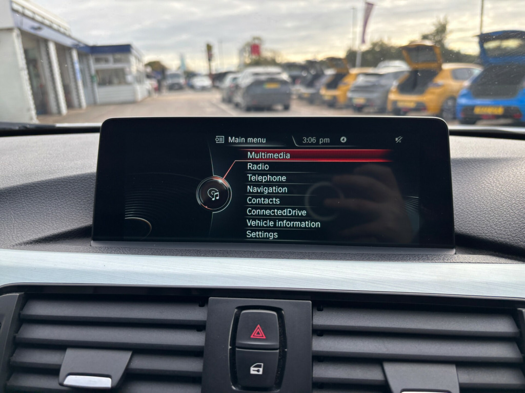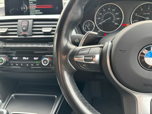 v power socket in front centre console and passenger footwell, 3.5mm auxiliary input point in centre console for auxiliary playing devices, bmw connecteddrive online services, bmw emergency call, bmw professional radio with single cd player - with mp3 playback compatibility, bmw teleservices, bluetooth hands-free facility with usb audio interface and audio streaming, dab digital radio, full black panel display, media package - bmw professional, shark fin aerial, 18in alloy wheels - m double spoke - 400m, air breather - black high gloss, bumper system - front and rear, direction indicator - side repeaters - integrated in exterior mirrors, direction indicator lights - clear lenses, electric windows - front and rear with open-close fingertip control - anti-trap facility and comfort closing function, exhaust tailpipe - single left - with chrome finisher, exterior mirrors - heated - electrically adjustable, exterior parts in body colour, exterior trim - high-gloss shadowline, heat protection glazing with green tint, heated windscreen washer jets, kidney grille - chrome with extra wide black - high gloss vertical slats, m aerodynamic bodystyling, m sport package, mirror caps in exterior colour, model designation, run flat tyres, side exterior m designation badges, tyres - reduced rolling resistance, windscreen with grey shade band, air conditioning - automatic with two-zone control, air conditioning and radio control panel in high gloss black, ambient lighting - switchable bmw classic orange - cold white - led, armrest - front - folding with storage compartment, automatic tailgate, automatically dimming rear view mirror, bottle holders integrated into door trim storage compartments - front - up to 1 litre, central locking switch - doors - fuel filler cap - luggage compartment, centre armrest for rear seats - include two cup holders, cup holders - two in front with sliding lid, door sill finishers - m designation, extended lighting, floor mats - velour, glove compartment, glove compartment - opener with chrome trim, handbrake lever - gear knob in leather, headlining - anthracite, interior lighting - front centre over interior mirror with soft-light and rear centre, interior trim - aluminium hexagon trim finishers with estoril blue matt highlight, luggage compartment - lashing eyes, luggage compartment - light, m sport instrument cluster, m sport multi-function leather steering wheel - three-spoke, non smoker package, personal profile, rain sensor with automatic headlight activation, rear seat headrests - two, seat heating for driver and front passenger, seats - split rear 60-40, side armrests - front and rear integrated into door trim, sport seats - front, standard seat for driver and passenger with manual adjustment, start-stop button with comfort go keyless engine start and auto start-stop deactivation button, steering column with manual reach and rake adjustment, storage compartment in rear centre console, sun visors with vanity mirrors and ticket holder, tailgate operation - automatic, toolkit located in luggage compartment, twin horns, welcome light, windscreen wipers - two-speed with adjustable intervals, airbags, alarm system - thatcham 1 with remote control and engine immobiliser, battery safety cut off, central locking - remote, child seat isofix attachment - rear with passenger airbag deactivation, crash sensor, dsc - dynamic stability control plus, dynamic brake lights, first aid kit and warning triangle, incorrect fuelling protection system, remote control including integrated key - 2, remote control with integrated key with insert in blue, seat belt security check for driver, side impact protection, three-point seat belts - all seats, brake pad wear indicator - front and rear, condition based service, cruise control with brake function, drive performance control - eco pro - comfort - sport and sport plus, obc - on-board computer, oil sensor for level and grade - warning by check control system, optimum shift indicator, pdc - park distance control - front and rear, power steering - electric, rear suspension - five-link, servotronic steering, sport automatic transmission, suspension - front aluminium, tyre pressure monitor with a three-level warning strategy, idrive controller - 8 favourite buttons, check control warning system for monitoring of lights and door-luggage compartment open warning, fog lights - front and rear, headlight wash, high level third brake light, led tailights, lights-on warning by audio warning signal when ignition is switched off, xenon headlights