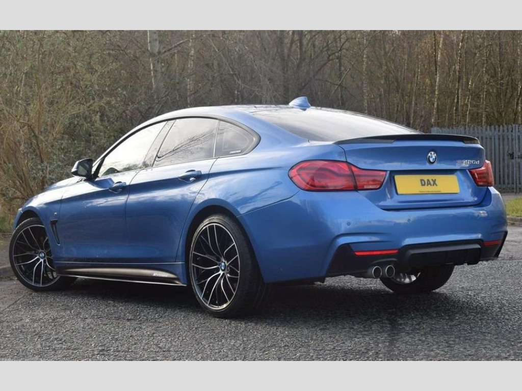 We are delighted to offer this stunning BMW 420D M Sport Gran Coupe presented in highly desirable Estoril Blue metallic with contrasting black leather interior and supported by a fantastic full service history and 2 keys. This is an exceptionally clean and tidy car, presented in stunning order throughout. The car offers best of both worlds motoring with stunning looks thanks to the M performance bodywork, combined with the fantastic economy from the ULEZ compliant Euro 6 engine, that pulls the car along beautifully. It really looks stunning in Estoril Blue with the beautiful 19 inch alloy wheels and privacy glass. This is a really fabulous example and drives stunningly well indeed! We've got both keys and a fantastic full service record and the car will be supplied with a fresh 12 months MOT on order, offering the new owner maximum peace of mind in this fabulous car. Specification includes: satellite navigation, DAB radio, bluetooth with audio streaming, angel eye LED daytime running lights, front & rear parking sensors, climate control, cruise control, heated seats, black leather interior, privacy glass, auto lights, 19 inch alloys and more! Estoril Blue, 12V Power Socket in Front Centre Console, 18in Alloy Wheels - M Double Spoke - 400, Access to BMW Connected Plus (12 Month S, Air Breather - Black High Gloss, Air Conditioning - Automatic with Two-Zo, Air Conditioning and Radio Control Panel, Airbags, Alarm System - Thatcham 1 with Remote Co, Ambient Lighting - Switchable BMW Classi, Armrest - Front - Folding with Storage C, BMW ConnectedDrive Online Services, BMW Emergency Call, BMW Professional Radio with Single CD Pl, BMW TeleServices, Battery Safety Cut Off, Bluetooth Hands-Free Facility with USB A, Bottle Holders Integrated into Door Trim, Brake Pad Wear Indicator - Front and Rea, Bumper System Front and Rear - Replaceab,