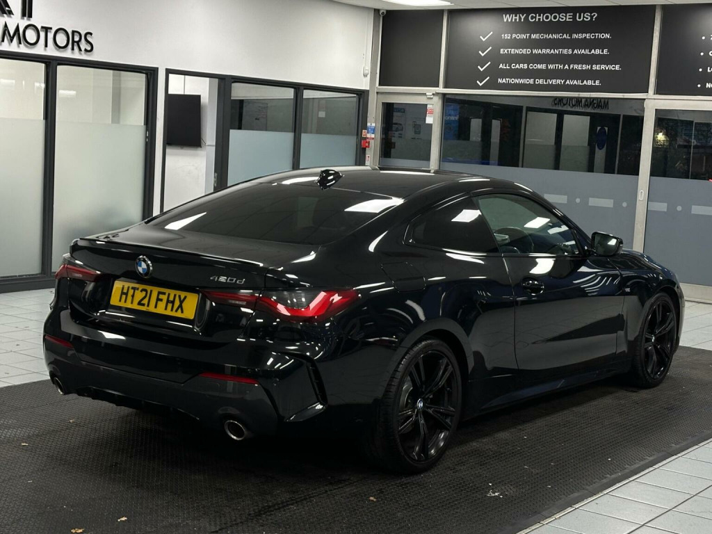 Magna Motor Group is pleased to present this BMW 4 Series 2.0 420d MHT M Sport with automatic transmission, combining sporty performance with refined luxury. Designed for dynamic driving and superior handling, this 4 Series delivers an engaging experience while maintaining efficiency and comfort. This vehicle is supplied with a three-month warranty included in the price, with extended warranty options available for added peace of mind. It will come with a full MOT and has been professionally valeted, ensuring both the interior and exterior are presented in excellent condition. Flexible finance packages are available to suit your individual needs, and our experienced sales team is dedicated to providing friendly and professional assistance throughout your purchase. Part exchange vehicles are welcomed, and we also offer a nationwide delivery service starting from just £99 including VAT. For convenience, we will collect your part exchange free of charge. At Magna Motor Group, we pride ourselves on offering high-quality vehicles combined with outstanding customer care. To arrange a viewing, book a test drive, or discuss finance and delivery options, please contact our sales team today.