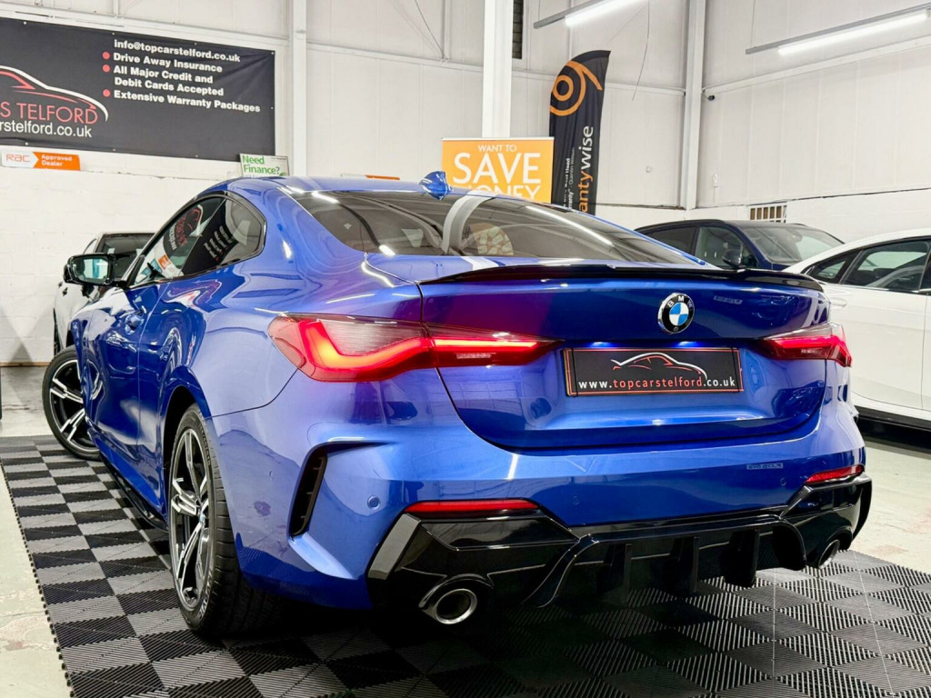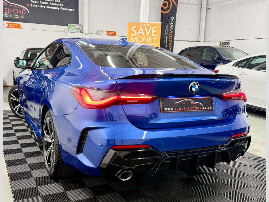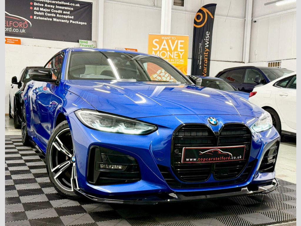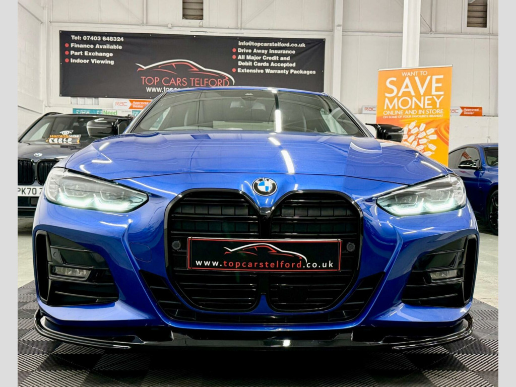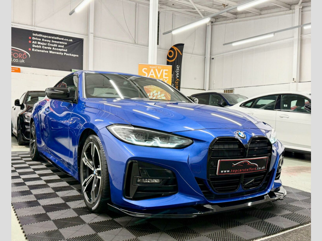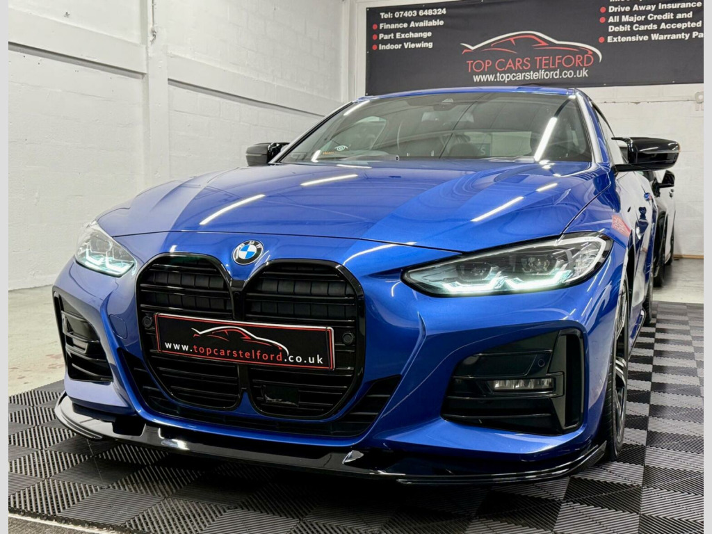 JUST ARRIVED M-PERFORMANCE SPECIALIST PLEASE VISIT OUR WEBSITE FOR MORE HIGH SPEC BMW, PLEASE CALL TO RESERVE OR REGISTER YOUR INTREST £99 DEPOSIT FULLY REFUNDABLE SUBJECT TO VIEW, SUPERB EXAMPLE HIGHLY POPULAR&ATTRACTIVE BMW G22 4 SERIES 420D MHT M-SPORT AUTO COUPE IN THE MOST DESIRABLE COLOUR PORTIMAO BLUE, UPGRADES INCLUDE M-SPORT PACK GLOSS BLACK M-PERFORMANCE BODYSTYLING NAV REV CAM HEATED SEATS LUXARY AT ITS BEST EVERYTHING YOU CAN ASK FOR, FULL SERVICE HISTORY JUST BEEN SERVICED LONG MOT HPI CLEAR WARRANTY WISE APPROVED DEALER £0 DEPOSIT LOW RATE FINANCE, DRIVE AWAY TODAY FROM £80 P/ WEEK SUBJECT TO STATUS FINANCE AVAILABLE FROM AS LITTLE AS 8.9% APR BUY NOW PAY LATER OPTION, FINANCE APPROVED SPECIALISTS HP/PCP AVAILABLE, NATIONWIDE DELIVERY T&C APPLY CLICK AND COLLECT BUY ONLINE OR DRIVE AWAY THE SAME DAY, VERY COMPETITIVELY PRICED TRULY IN OUTSTANDING CONDITION TOP SPEC REAL HEAD TURNER WELL MAINTAINED PRE DELIVERY CHECK TO BE COMPLETED PRIOR TO SALE FOR TOTAL PEACE OF MIND, STUNNING LOOKS VERY STYLISH AND PRESTIGE NOT MANY ON THE MARKET THAT ACTUALLY LOOK THIS GREAT REAL HEAD TURNER,RARE SPEC DRIVES AND SOUNDS AMAZING, VIEWING ESSENTIAL DRIVE AROUND IN PURE COMFORT AND STYLE FIRST TO SEE WILL BUY COMES COMPLETE WITH ALL ITS PAPERWORK TO HAND 2 KEYS, ALL OF OUR CARS ARE SPECIALLY SOURCED AND WE STRIVE TO BE THE CHEAPEST AROUND WHEN COMPARED TO LIKE TO LIKE VEHICLE, Truly a Unique Opportunity At Exceptional Value At TopCarsTelford We Pride Ourselves in Only Selling Top Quality Cars That Are Fully inspected HPI Checked CLEAR with report providing you with complete peace of mind guaranteed customer satisfaction viewing highly recommended you will not be disappointed EXTENSIVE WARRANTY PACKAGES, FINANCE ARRANGED ALL MAJOR DEBIT/CREDIT CARDS ACCEPTED Please call to arrange viewing buy indoor viewing available by appointment for any online enquires including our 5 STAR VERIFIED CUSTOMER REVIEWS Please visit our website WWW.TOPCARSTELFORD.CO.UK BUY WITH COMPLETE CONFIDENCE