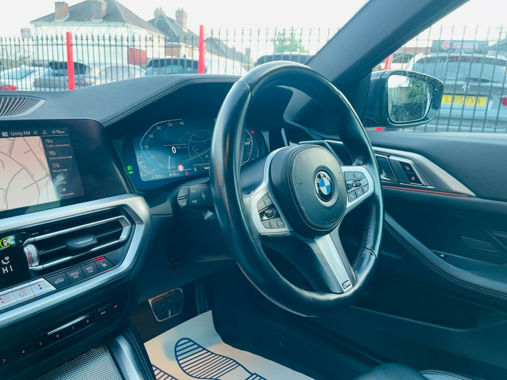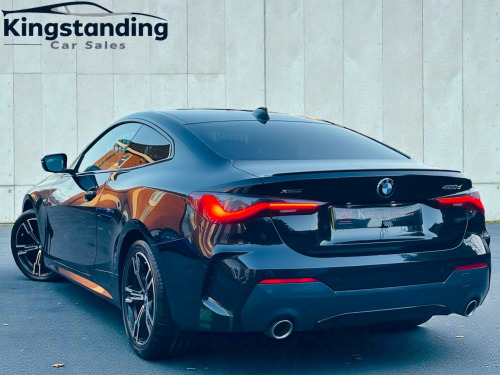 This 2022 BMW 4 Series 420d M Sport offers an exceptional blend of performance and efficiency, boasting a sophisticated 2.0L Diesel Hybrid engine and a robust Four Wheel Drive system. As a Euro 6 compliant vehicle, it meets stringent emission standards. This M Sport variant comes equipped with a suite of advanced features designed to enhance your driving experience, including Bluetooth Hands Free Facility with USB Audio Interface and Audio Streaming, and Parking Distance Control for both the front and rear. The convenience of a Rain Sensor with Automatic Headlight Activation ensures optimal visibility, while the comprehensive Parking Assistant, complete with front and rear sensors and a rear camera, makes manoeuvring effortless.Further enhancing its appeal, this BMW 4 Series includes the BMW Connected Package Professional, seamlessly integrating Android Auto and Apple CarPlay for effortless connectivity on the go. You'll also appreciate the generous boot space, providing ample room for all your luggage and shopping needs. These carefully selected features and the advanced hybrid technology demonstrate how this 420d M Sport stands out from other vehicles in its class, offering a more refined, connected, and practical driving solution. n protection glass, vernasca leather - black with grey stitching, 12v power socket in front centre console, 18in alloy wheels - double spoke style - 848 bicolour jet black, 2 headrests - non-folding - rear, 2 three-point seat belts - outer, abs - anti lock braking system, active guard plus, air conditioning - automatic with three-zone, airbags, alarm system - thatcham 1 with remote control and engine immobiliser, ambient lighting with welcome light carpet, armrest - integrated in door trim front and rear and in front on the centre console, attentiveness assistant, bmw connected package professional, bmw connecteddrive online services, bmw emblem on engine compartment lid and tailgate, bmw emergency call, bmw kidney grille with mesh grille - front side of the nuggets in matt aluminium and frame in chrome high-gloss, bmw live cockpit professional, bmw mobility kit, bmw teleservices, battery safety cut-off in the event of an accident, bluetooth hands-free facility with usb audio interface and audio streaming, brake energy regeneration, brake pad wear indicator - front and rear, bumper system - front and rear, central locking switch for all doors - fuel filler cap - luggage compartment, centre armrest for rear seats - include two cup holders, centre console rear storage compartment, check control warning system for monitoring of lights and door-luggage compartment open warning, child proof locking system - rear doors, child seat isofix attachment for the two outer rear seats, condition based service, crash sensor, cruise control with brake function, cup holders in centre console - front - 2 cupholder inserts with clamping elements - inlay matt black, dab digital radio, dsc - dynamic stability control plus, deletion lumbar support-width adjustment passenger side, door exit lighting - front and rear - left-right, door pockets - front and rear, door sill finishers front - aluminium - with bmw designation, drive performance control with eco pro - comfort and sport modes, driving experience modes, dynamic brake lights, eps - electric power steering, electric windows - front and rear - drivers side for all 4 windows - anti-trap facility, electro mechanical parking brake with automatic drive-away release and auto-hold function, exhaust tailpipes - split left and right - 90mm diameter, exterior mirrors - electrically folding with anti dazzle, exterior trim - high-gloss shadowline, first aid kit and warning triangle, floor mats - velour, footwell lights - front and rear, front apron - plastic in body colour, fuel filler cap - right - rear - in body colour, glove compartment - illuminated - with separate small compartment, grab handles - integrated in roof lining, headlight beam-throw control - automatic - load dependant regulating reaction - dynamic compensation of braking dive and acceleration squat, headlights - adaptive led, headlining - anthracite, heat protection glazing with green tint, illuminated armrest storage compartment, illuminated bow-type door handles - in body colour - drivers side with door lock, incorrect fuelling protection system, instrument cluster, instrument panel in sensatec, interior lighting - front centre over interior mirror with soft-light and rear centre, interior rear-view mirror with automatic anti-dazzle function, interior trim - aluminium tetragon, led front foglights, led tail lights, lashing eyelets in luggage compartment - 4 pieces, license plate panel integrated into front bumper and tailgate, luggage compartment - light, m aerodynamic bodystyling, m designation on front side panels - left and right, m rear spoiler - body colour, m sport leather multifunction steering wheel - three spoke, m sport package, m sport suspension, make-up mirror lights, manual deactivation of front passenger airbag, mild hybrid technology, model designation on tailgate - right, obc - on-board computer, oil sensor for level and grade - warning by check control system, one-piece front bumper cover including towing eye cover in body colour, optimum shift indicator, pdc - park distance control - front and rear, parking assistant, preparation for high-beam assistant, rain sensor with automatic headlight activation, reading lights - front and rear, rear seats, remote control including integrated key - 2, reversing assist camera, roof fin in body colour, seat backrest width adjustment, seat belt security check for driver and front passenger, seat heating for driver and front passenger, servotronic steering, side frame decorative moulding - black matt, side impact protection, split folding rear seat - 40-20-40, sport automatic transmission, sport seats - front, standard seat for driver and passenger with manual adjustment, start-stop button with keyless engine sta