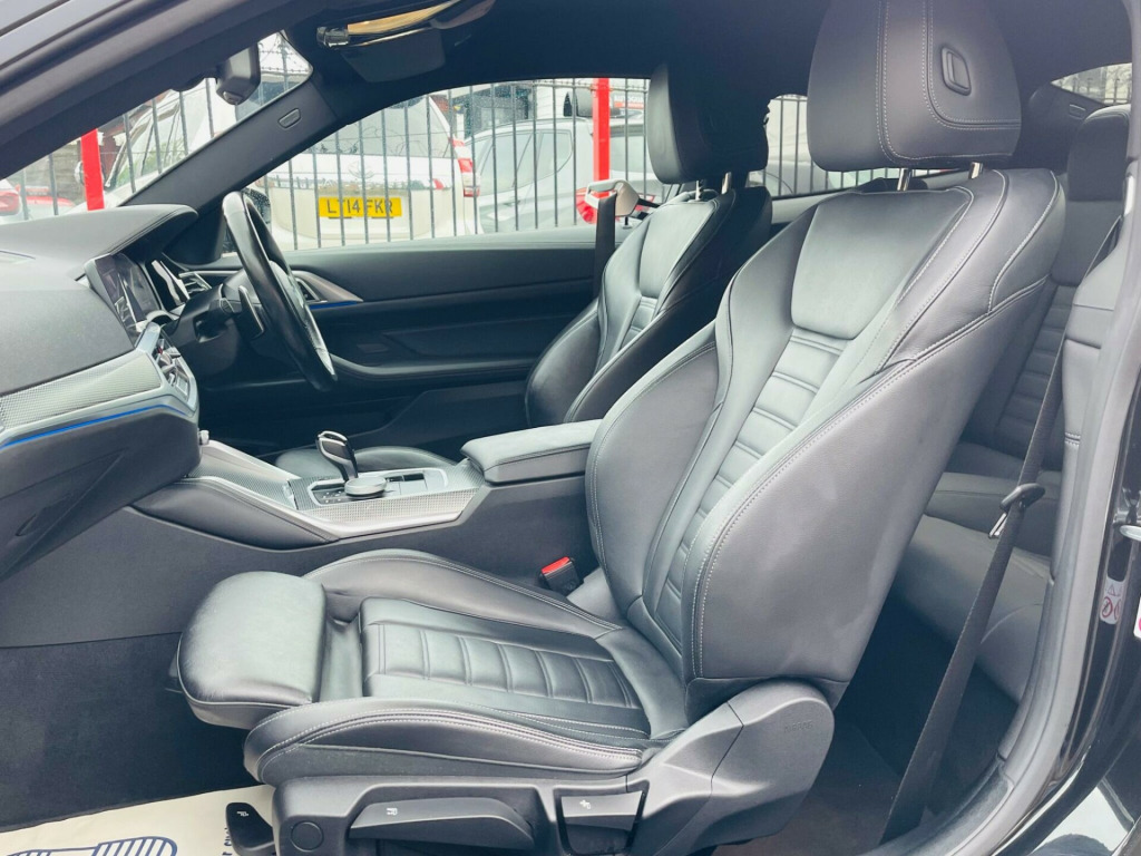 WELCOME TO KINGSTANDING CAR SALES HERE WE HAVE A GREAT LOOKING BMW 420d M-SPORTONLY 1 FORMER KEEPER FROM NEWWARRANTED MILES WITH A FULL SERVICE HISTORYJUST BEEN SERVICEDGREAT SPEC CAR WITH REVERSE CAMERA, SATNAVHEATED LEATHERPARKING SENSORSDRIVES GREAT VERY SMOOTH ENGINE AND GEARBOXPREVIOUS CAT-NCOMES WITH A 3 MONTHS PARTS AND LABOUR WARRANTY FOR A PEACE OF MINDVIEWING BY APPOINTMENTS ONLYANY INSPECTION IS WELCOMEOVER 30 CARS IN STOCKThis 2022 BMW 4 Series 420d M Sport offers an exceptional blend of performance and efficiency, boasting a sophisticated 2.0L Diesel Hybrid engine and a robust Four Wheel Drive system. As a Euro 6 compliant vehicle, it meets stringent emission standards. This M Sport variant comes equipped with a suite of advanced features designed to enhance your driving experience, including Bluetooth Hands Free Facility with USB Audio Interface and Audio Streaming, and Parking Distance Control for both the front and rear. The convenience of a Rain Sensor with Automatic Headlight Activation ensures optimal visibility, while the comprehensive Parking Assistant, complete with front and rear sensors and a rear camera, makes manoeuvring effortless.Further enhancing its appeal, this BMW 4 Series includes the BMW Connected Package Professional, seamlessly integrating Android Auto and Apple CarPlay for effortless connectivity on the go. You'll also appreciate the generous boot space, providing ample room for all your luggage and shopping needs. These carefully selected features and the advanced hybrid technology demonstrate how this 420d M Sport stands out from other vehicles in its class, offering a more refined, connected, and practical driving solution. n protection glass, vernasca leather - black with grey stitching, 12v power socket in front centre console, 18in alloy wheels - double spoke style - 848 bicolour jet black, 2 headrests - non-folding - rear, 2 three-point seat belts - outer, abs - anti lock braking system, active guard plus, air conditioning - automatic with three-zone, airbags, alarm system - thatcham 1 with remote control and engine immobiliser, ambient lighting with welcome light carpet, armrest - integrated in door trim front and rear and in front on the centre console, attentiveness assistant, bmw connected package professional, bmw connecteddrive online services, bmw emblem on engine compartment lid and tailgate, bmw emergency call, bmw kidney grille with mesh grille - front side of the nuggets in matt aluminium and frame in chrome high-gloss, bmw live cockpit professional, bmw mobility kit, bmw teleservices, battery safety cut-off in the event of an accident, bluetooth hands-free facility with usb audio interface and audio streaming, brake energy regeneration, brake pad wear indicator - front and rear, bumper system - front and rear, central locking switch for all doors - fuel filler cap - luggage compartment, centre armrest for rear seats - include two cup holders, centre console rear storage compartment, check control warning system for monitoring of lights and door-luggage compartment open warning, child proof locking system - rear doors, child seat isofix attachment for the two outer rear seats, condition based service, crash sensor, cruise control with brake function, cup holders in centre console - front - 2 cupholder inserts with clamping elements - inlay matt black, dab digital radio, dsc - dynamic stability control plus, deletion lumbar support-width adjustment passenger side, door exit lighting - front and rear - left-right, door pockets - front and rear, door sill finishers front - aluminium - with bmw designation, drive performance control with eco pro - comfort and sport modes, driving experience modes, dynamic brake lights, eps - electric power steering, electric windows - front and rear - drivers side for all 4 windows - anti-trap facility, electro mechanical parking brake with automatic drive-away release and auto-hold function, exhaust tailpipes - split left and right - 90mm diameter, exterior mirrors - electrically folding with anti dazzle, exterior trim - high-gloss shadowline, first aid kit and warning triangle, floor mats - velour, footwell lights - front and rear, front apron - plastic in body colour, fuel filler cap - right - rear - in body colour, glove compartment - illuminated - with separate small compartment, grab handles - integrated in roof lining, headlight beam-throw control - automatic - load dependant regulating reaction - dynamic compensation of braking dive and acceleration squat, headlights - adaptive led, headlining - anthracite, heat protection glazing with green tint, illuminated armrest storage compartment, illuminated bow-type door handles - in body colour - drivers side with door lock, incorrect fuelling protection system, instrument cluster, instrument panel in sensatec, interior lighting - front centre over interior mirror with soft-light and rear centre, interior rear-view mirror with automatic anti-dazzle function, interior trim - aluminium tetragon, led front foglights, led tail lights, lashing eyelets in luggage compartment - 4 pieces, license plate panel integrated into front bumper and tailgate, luggage compartment - light, m aerodynamic bodystyling, m designation on front side panels - left and right, m rear spoiler - body colour, m sport leather multifunction steering wheel - three spoke, m sport package, m sport suspension, make-up mirror lights, manual deactivation of front passenger airbag, mild hybrid technology, model designation on tailgate - right, obc - on-board computer, oil sensor for level and grade - warning by check control system, one-piece front bumper cover including towing eye cover in body colour, optimum shift indicator, pdc - park distance control - front and rear, parking assistant, preparation for high-beam assistant, rain sensor with automatic headlight activation, reading lights - front and rear, rear seats, remote control including integrated key - 2, reversing assist camera, roo