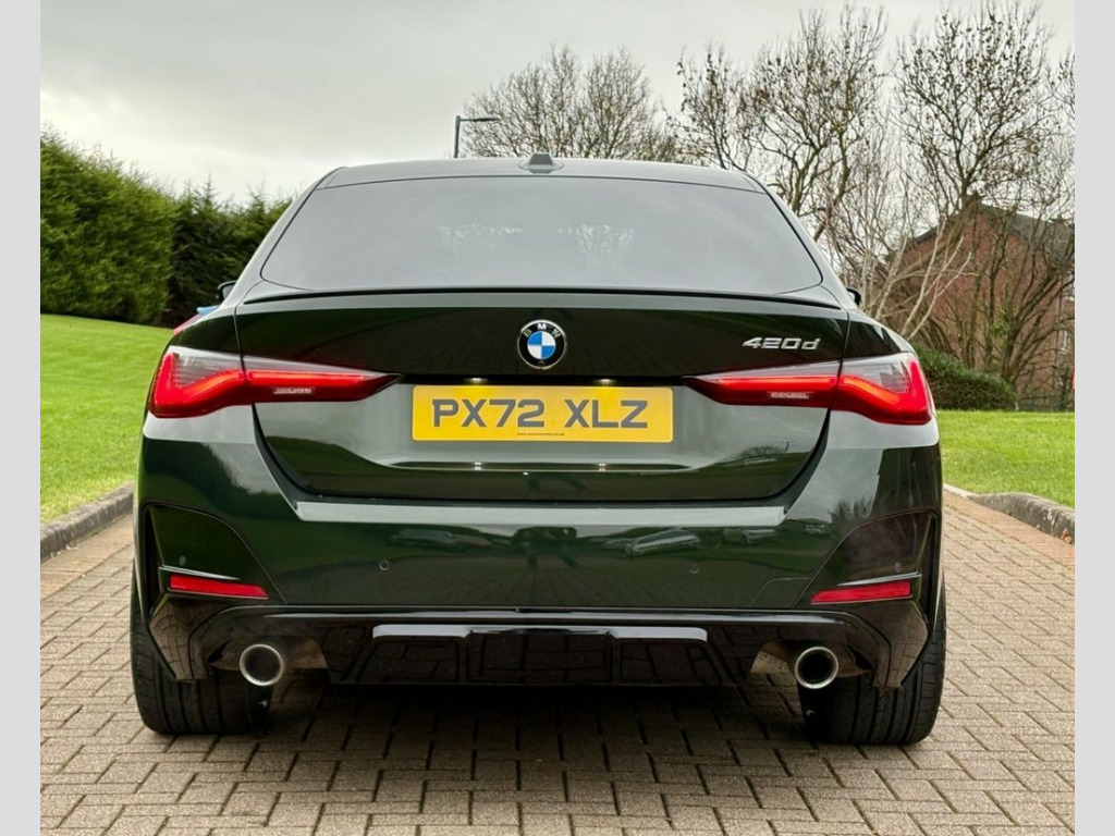 November 2022 BMW 420d M-Sport Step Auto in Sanremo Green. Full Service History & MOT'd to October 2026. Loaded with spec including Digital Dash, Navigation System, Heads-Up Display, Central Armrest, Full Leather Interior, Heated Seats, Bluetooth, DAB Radio, M-Performance Kit, Privacy Glass, Xenon Lights, Dual Climate Control, Multifunctional Steering Wheel etc. Fitted with Brand New 20" Alloys & Tyres (Optional Extra £1295) FINANCE AVAILABLE AT KEEN RATES!! Viewing by Appointment Only Please. 18in Alloy Wheels - M Aerodynamic 858 Mi, Active Guard Plus, Air Conditioning - Automatic with Three-, Airbags, Alarm System, Ambient Lighting, Armrests, Attentiveness Assistant, Automatic Powered Electric Bootlid, Automatic Start-Stop Button, Battery in Luggage Compartment, BMW Connected Package Professional, BMW ConnectedDrive Online Services, BMW Emblem on Engine Compartment Lid and, BMW Emergency Call, BMW ID, BMW iDrive, BMW Kidney Grille with Mesh Grille - Fro, BMW Live Cockpit Professional, BMW TeleServices, Bumper System - Front and Rear, Centre Armrest in Rear - Folding with 2 , Centre Lock Switch, Closing System with Central Locking, Condition Based Service, Crash Sensor, Cruise Co