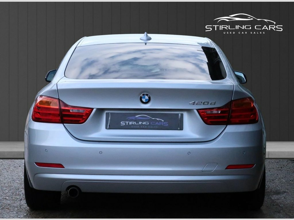 2014 BMW 4 Series Gran Coupe 2.0 420d SE, Euro 6, 184 ps. A well-maintained example with only one previous owner and presented in excellent condition throughout. Comes with MOT and warranty included for peace of mind, along with two keys and a solid service history. Equipped with leather seats, heated front seats, BMW media system, satellite navigation, Bluetooth, USB connectivity and parking sensors. The 2.0 diesel engine delivers strong performance and great fuel economy, while the manual gearbox provides a smooth and engaging drive. A stylish and practical Gran Coupe offering premium comfort, plenty of space and the quality you expect from BMW. Ready to drive away. 12V Power Socket - Front x2, 17in Alloy Wheels - Star Spoke - 393, ABS - Anti Lock Braking System, ASC - Automatic Stability Control, Air Conditioning - Automatic with Two-Zo, Airbags - Driver, Airbags - Front Side, Airbags - Passenger, Airbags - Passenger Deactivation, Alarm System Thatcham 1 with Remote Cont, Armrest - Front with Storage Compartment, Armrest - Rear Centre, Automatically Dimming Rear View Mirror, Auxiliary Input, BMW Emergency Call, BMW Professional Radio - Single CD and M, BMW TeleServices, Bluetooth Hands Free with USB Audio Inte, Bottle Holders - Front Door Storage Comp, Bumpers - Body Colour, CBC - Cornering Brake Control, Central Locking - Remote, Check Control Warning