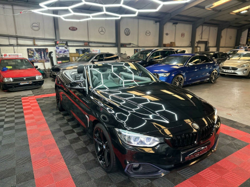 Bmw 420DSportConvertible Automatic 114k with historyAlloy wheels Sat navMediaCruise controlHeated seatsSpoilerBlack grillsGrill barsCustom badge stylingTinted windowsDrives lovelyNo issues at allCondition is great Mininal age related marks nothing majorHpi clear2 keys. 12V Power Socket - Centre Console, 12V Power Socket - Passenger Footwell, 18in Alloy Wheels - Double Spoke - 397, ABS - Anti Lock Braking System, ASC - Automatic Stability Control, Air Breather - Matt Aluminium, Air Conditioning - Automatic with Two-Zone Control, Air Conditioning and Radio Control Panel in High Gloss Black, Air Inlets - Side with Black High Gloss Finisher, Airbags - Curtain, Airbags - Driver, Airbags - Front Side, Airbags - Passenger, Airbags - Passenger Deactivation, Alarm System Thatcham 1 with Remote Control, Ambient Lighting - Switchable BMW Classic Orange - Cold White - LED, Armrest - Front with Storage Compartment, Automatically Dimming Rear View Mirror, Auxiliary Input, BMW Professional Radio - Single CD and MP3, Battery Safety Cut Off, Bluetooth Hands Free with Audio Streaming, Bluetooth Hands Free with USB Audio Interface, Bottle Holders - Front Door Storage Compartments, Brake Assist, Brake Drying, Brake Pad Wear Indicator, Brake Pre-Tensioning, Bumper - Rear with Black High Gloss Finisher, Bumpers - Body Colour, CBC - Cornering Brake Control, Central Locking - Remote, Check Control Warning System, Child Seat ISOFIX Attachment - Rear, Comfort Go Keyless Engine Start, Crash Sensor - Activating Central Locking-Hazard Warning Lights-Fuel Cut Off, Cruise Control with Brake Function, Cup Holders - Front, DAB Digital Radio, DBC - Dynamic Brake Control, DSC - Dynamic Stability Control Plus, DTC - Dynamic Traction Control, Daytime Running Lights - LED, Display - 6.5in Colour Screen, Door Handles - Body Colour, Door Mirrors - Body Coloured, Door Mirrors - Electric and Heated, Door Mirrors - Integrated Indicator Side Repeaters, Door Sill Finishers - Sport Designation, Drive Performance Control with ECO PRO - Comfort and Sport Modes, Dynamic Brake Lights, Electric Windows - Front and Rear with Open-Close Fingertip Control, Electronic Differential Lock, Extended Lighting, Exterior Trim - Matt Aluminimum, First Aid Kit, Floor Mats - Velour, Follow Me Home Headlight Function, Front Fog Lights, Gear Knob - Leather, Handbrake - Leather, Head Restraints - Front and Rear, Headlights - Automatic Activation, Headlights - Beam Throw Control, Headlights - Washer System, Heat Protection Glazing with Green Tint, Heated Windscreen Washer Jets, High Level Third Brake Light, Hill Start Assist, Interior Lighting - Front and Rear Centre, Interior Trim - Black High Gloss, Interior Trim Finisher - Coral Red, Kidney Grille - Chrome Extra-Wide High-Gloss Black Vertical Slats, LED Tailights, Lights-on Audio Warning, Loading Aid, Luggage Compartment - Lashing Eyes x2, Luggage Compartment - Storage Tray, Multifunction Controls for Steering Wheel, OBC - On-Board Computer, Oil Sensor For Level and Grade - Warning by Check Control System, Optimum Shift Indicator, PDC - Park Distance Control - Front, PDC - Park Distance Control - Rear, Personal Profile, Rain Sensor, Rollover Protection System, Roof Mouldings - Body Colour, Run Flat Tyres, Seat Adjustment - Front Electric with Driver Memory, Seats - Front Heated, Seats - Front Sports, Servotronic Steering, Side Impact Protection, Soft Close - Boot, Speakers x6, Steering Column with Manual Reach and Rake Adjustment, Steering Wheel - Black Leather - Sport - Three Spoke, Storage Compartment - Behind Rear Seat Backrest, Sun Visors with Illuminated Vanity Mirrors and Ticket Holder, TPMS - Tyre Pressure Monitoring System, Tool Kit Located in Luggage Compartment, Trim Designation Deletion, Tyres - Reduced Rolling Resistance, Warning Triangle, Windscreen with Grey Shade Band, Xenon Headlights, iDrive Controller - 8 Favourite Buttons, Enhanced Bluetooth Telephone Preparation with USB Audio Interface and Voice Control, Dakota Leather - Black with Red Highlight with Black Interior, Active Cruise Control with Stop and Go Function, Full Black Panel Display, Internet, Lane Change Warning System, Media Package - BMW Business Plus, Speaker System - BMW Advanced, Active Security Package, Adaptive Headlights.