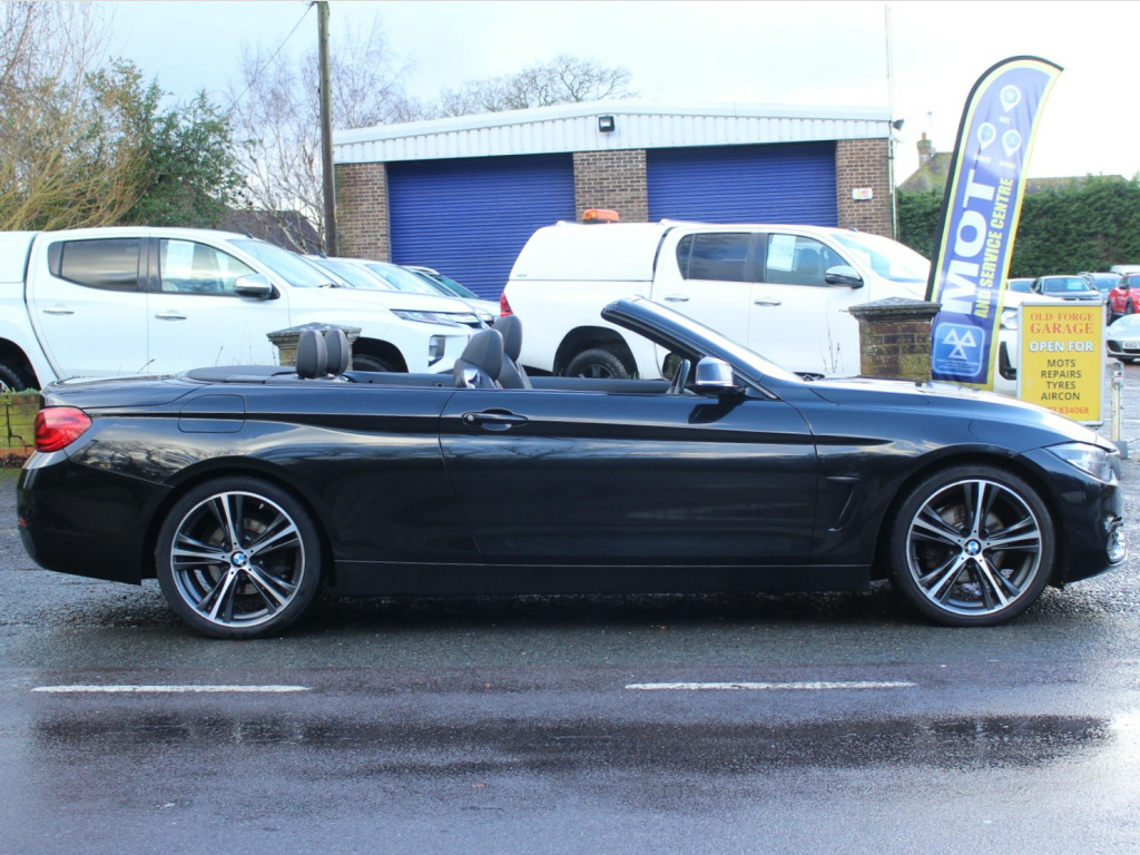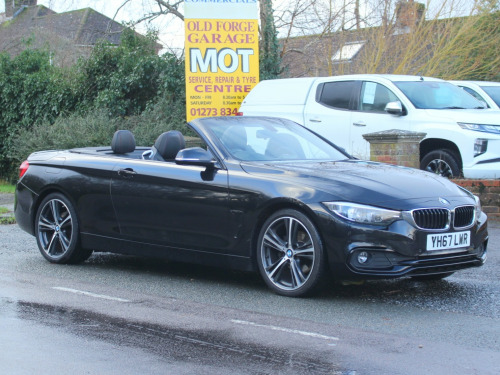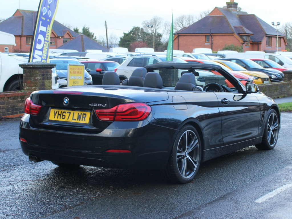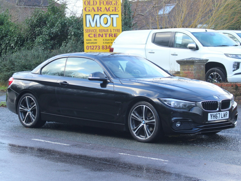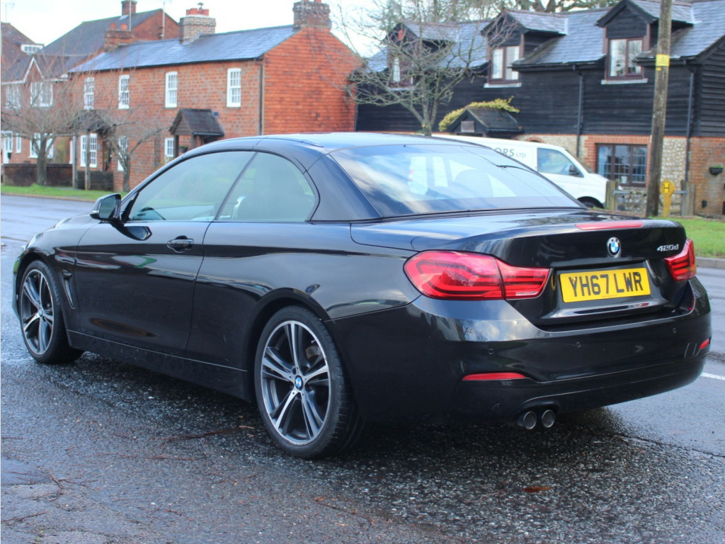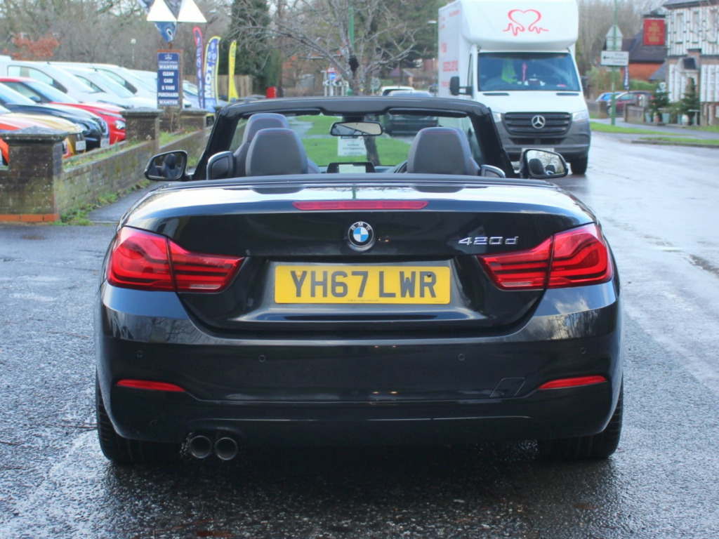 This 2017 BMW 4 Series 2.0 420d Sport Convertible 2dr Diesel Auto Euro 6 (s/s) (190 ps) with 46653 miles is a sleek and stylish convertible that's perfect for those sunny drives. It comfortably seats 4, has 2 doors and is ULEZ compliant, making it ideal for city driving. The black sapphire exterior is complemented by 19in Alloy Wheels and Electrically Folding Mirrors, while the High-Gloss Shadowline trim adds a touch of sophistication. The Wind Deflector ensures a smooth ride with the top down. Powered by a Diesel engine, this BMW is not only efficient but packs a punch with 190 ps. With its low mileage, this convertible is in excellent condition, ready for a new owner to enjoy the ultimate driving experience. private number plate not included., OPEN 7 DAYS A WEEK - A SELECTION OF UP TO 200 CARS AND VANS AVAILABLE. Click on dealer 'VISIT WEBSITE' link for many more large photographs of this car. We are a West Sussex Trading Standards Approved 'Buy with Confidence Dealership'. v power socket in front centre console and passenger footwell, 6.5in colour display screen, access to bmw connected plus (12 month subscription from new), bmw connecteddrive online services, bmw emergency call, bmw navigation system, bmw professional radio with single cd player - with mp3 playback compatibility, bmw teleservices, bluetooth hands-free facility with usb audio interface and audio streaming, dab digital radio, media package - bmw business, real time traffic information, shark fin, 18in alloy wheels - double spoke - 397, air breather - matt aluminium, direction indicator - side repeaters - integrated in exterior mirrors, direction indicator lenses - led, electric windows - front with open-close fingertip control - anti-trap facility and comfort closing function, exhaust tailpipes - dual left - with dark chrome finisher, exterior mirrors - heated - electrically adjustable, exterior parts in body colour, exterior trim - matt aluminium, front air inlet with high-gloss black finisher, heat protection glazing with green tint, kidney grille - chrome with extra wide black - high gloss vertical slats, model designation, rear bumper with high-gloss black finisher, roof - retractable hard top, run flat tyres, tyres - reduced rolling resistance, windscreen washer jets - heated, windscreen with grey shade band, air conditioning - automatic with two-zone control, air conditioning and radio control panel in high gloss black, ambient lighting - switchable bmw classic orange - cold white - led, armrest - front - folding with storage compartment, boot lid lock with soft close function, bottle holders integrated into door trim storage compartments - front - up to 1 litre, central locking switch - doors - fuel filler cap - luggage compartment, centre console - panel highlight in chrome, cup holders - two in front with sliding lid, door sill finishers - neutral bmw designation - front, extended lighting, floor mats - velour, glove compartment, glove compartment - opener with chrome trim, handbrake lever - gear knob in leather, instrument cluster, interior lighting - front centre over interior mirror with soft-light and rear centre, interior trim - black high-gloss trim finishers with coral red matt highlight, loading aid, luggage compartment - lashing eyes, luggage compartment - light, non smoker package, personal profile, rain sensor with automatic headlight activation, rear seat headrests - two, seat adjustment - front electric with driver memory, seat heating for driver and front passenger, side armrests - front and rear integrated into door trim, sport instrument cluster with red highlight and chrono scale, sport multi-function leather steering wheel - three-spoke, sport seats - front, start-stop button with comfort go keyless engine start and auto start-stop deactivation button, steering column with manual reach and rake adjustment, storage compartment - behind rear seat backrest, storage compartment in rear seat base centre, sun visors with vanity mirrors and ticket holder, toolkit located in luggage compartment, trim designation deletion, twin horns, welcome light, windscreen wipers - two-speed with adjustable intervals, airbags, alarm system - thatcham 1 with remote control and engine immobiliser, battery safety cut off, bumper system front and rear - replaceable deformation elements for impacts up to 9mph, child seat isofix attachment - rear with passenger airbag deactivation, crash sensor, dsc - dynamic stability control plus, dynamic brake lights, first aid kit and warning triangle, incorrect fuelling protection system, remote control with integrated key with insert in red, seat belt security check for driver, side impact protection, three-point seat belts - all seats, visible vin, brake pad wear indicator - front and rear, condition based service, cruise control with brake function, drive performance control with eco pro - comfort and sport modes, eps - electric power steering, obc - on-board computer, oil sensor for level and grade - warning by check control system, optimum shift indicator, pdc - park distance control - front and rear, rear suspension - five-link, servotronic steering, suspension - front aluminium, tyre pressure monitor with a three-level warning strategy, idrive controller - 8 favourite buttons, check control warning system for monitoring of lights and door-luggage compartment open warning, high level third brake light, led front foglights, led headlights, led taillights with new 3d l-shaped led light design, lights-on warning by audio warning signal when ignition is switched off