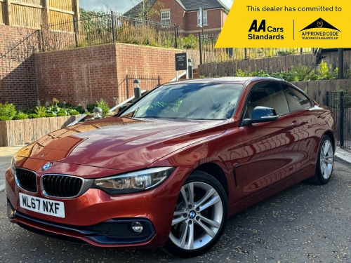 ** FREE 12 MONTH AA COVER ** WE ARE DELIGHTED TO OFFER TO SALE THIS STUNNING BMW 420 SPORT COUPE. FINISHED IN VALENCIA ORANGE WITH A BLACK LEATHER INTERIOR. THIS CAR IS A HIGH SPEC VEHICLE. WE WILL APPLY A LONG MOT AND A 6 MONTH NATIONWIDE WARRANTY. WE HOLD A DETAILED SERVICE RECORD AND NEXT SERVICE DUE IN 6000 MILES. OVERALL CONDITION IS EXCELLENT, UNMARKED ALLOYS, GREAT TYRES, FRESH INTERIOR AND CLEAN PAINTWORK. FEATURES INCLUDE PRO NAVIGATION, HEATED MEMORY SEATS FINISHED IN BLACK DAKOTA LEATHER, PARK SENSORS, CRUISE, MULTIFUNCTION STEERING WHEEL, CLIMATE CONTROL, TINTED GLASS, USB AND AUX PORTS, FOLDING MIRRORS, PUSH BUTTON START, DAB RADIO, 2 KEYS. A LOVELY EXAMPLE. ** WE ARE OPEN 6 DAYS A WEEK MONDAY - SATURDAY 8AM - 6PM ** VIEWINGS ARE BY APPOINTMENT. CALL 07904 803760 WE ARE HERE TO HELP YOU 07904 803760. NATIONWIDE DELIVERY OPTIONS. 12V Power Socket in Front Centre Console, 18in Alloy Wheels - Double Spoke - 397, 6.5in Colour Display Screen, Access to BMW Connected Plus for 12 Mont, Air Breather - Black High Gloss, Air Conditioning - Automatic with Two-Zo, Air Conditioning and Radio Control Panel, Airbags, Alarm System - Thatcham 1 with Remote Co, Ambient Lighting - Switchable BMW Classi, Armrest - Front - Folding with Storage C, Battery Safety Cut Off, Bluetooth Hands-Free Facility with USB A, BMW ConnectedDrive Online Services, BMW Emergency Call, BMW Navigation System, BMW Professional Radio with Single CD Pl, BMW TeleServices, Bottle Holders Integrated into Door Trim, Brake Pad Wear Indicator - Front and Rea, Bumper