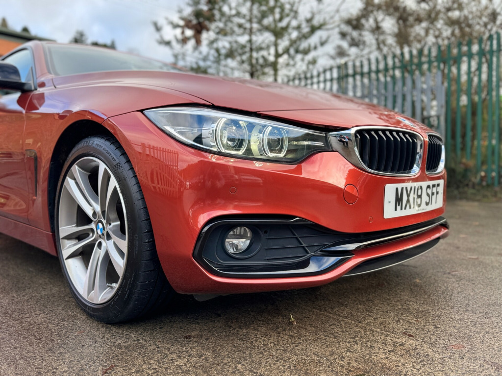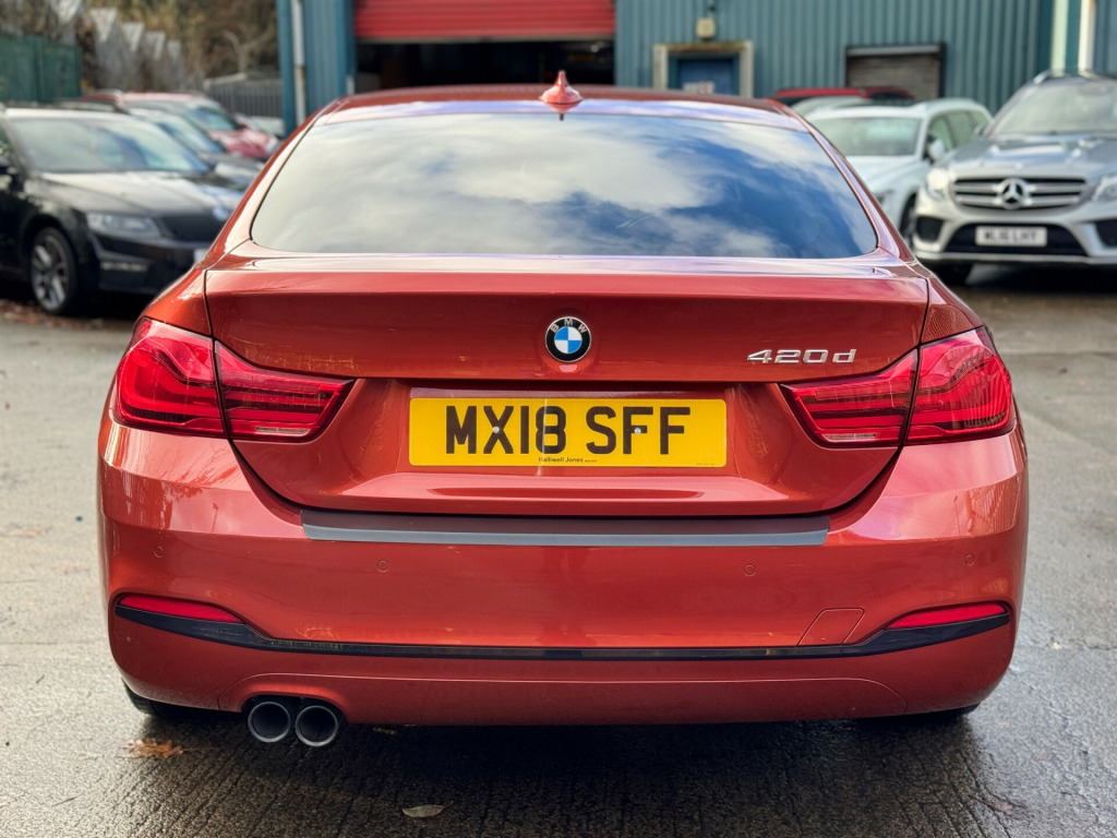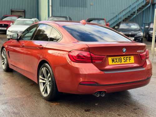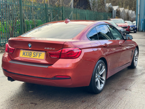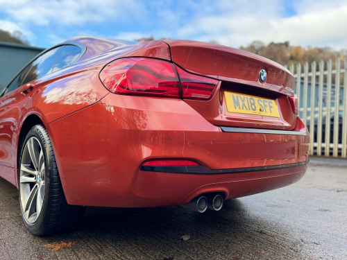 This 2018 BMW 4 Series Gran Coupe is a stylish and efficient hatchback with only 66330 miles on the clock and a diesel engine that is Euro 6 compliant, ensuring low emissions and great fuel economy. The exterior features include Mirror Caps in Black High Gloss, Sun Protection Glazing, and a striking Sunset Orange color. Inside, the sporty yet luxurious feel is enhanced by the Sport Leather Steering Wheel in Black, and the Dakota Leather seats in Black with Red Highlight, creating a sophisticated and modern look. With its 2.0 420d Sport Diesel Auto engine (190 ps), this BMW 4 Series Gran Coupe offers a smooth and powerful driving experience, combining style, practicality, and performance in one sleek package.UK delivery available.Part exchange welcome.AA extended warranty partner.AA standards approved dealership.Trading standards approved dealership.Autotrader highly rated dealership. v power socket in front centre console and passenger footwell, 6.5in colour display screen, access to bmw connected plus (12 month subscription from new), bmw connecteddrive online services, bmw emergency call, bmw navigation system, bmw professional radio with single cd player - with mp3 playback compatibility, bmw teleservices, bluetooth hands-free facility with usb audio interface and audio streaming, dab digital radio, media package - bmw business, real time traffic information, remote services, shark fin, 18in alloy wheels - double spoke - 397, air breather - black high gloss, direction indicator - side repeaters - integrated in exterior mirrors, direction indicator lenses - led, electric windows - front with open-close fingertip control - anti-trap facility and comfort closing function, exhaust tailpipe - dual round - left with dark chrome finisher, exterior mirrors - heated - electrically adjustable, exterior parts in body colour, exterior trim - high-gloss black, front air inlet with high-gloss black finisher, heat protection glazing with green tint, kidney grille - chrome with extra wide black - high gloss vertical slats, model designation, rear bumper with high-gloss black finisher, run flat tyres, tyres - reduced rolling resistance, windscreen washer jets - heated, windscreen with grey shade band, air conditioning - automatic with two-zone control, air conditioning and radio control panel in high gloss black, ambient lighting - switchable bmw classic orange - cold white - led, armrest - front - folding with storage compartment, bottle holders integrated into door trim storage compartments - front - up to 1 litre, central locking switch - doors - fuel filler cap - luggage compartment, centre armrest for rear seats - include two cup holders, centre console - panel highlight in chrome, cup holders - two in front with sliding lid, door sill finishers - metal - neutral bmw designation - front, extended lighting, floor mats - velour, glove compartment, glove compartment - opener with chrome trim, handbrake lever - gear knob in leather, instrument cluster, interior lighting - front centre over interior mirror with soft-light and rear centre, interior trim - black high-gloss trim finishers with coral red matt highlight, luggage compartment - lashing eyes, luggage compartment - light, non smoker package, personal profile, rain sensor with automatic headlight activation, rear seat headrests - two, seat heating for driver and front passenger, seats - 60-40 split folding rear, side armrests - front and rear integrated into door trim, sport instrument cluster with red highlight and chrono scale, sport multi-function leather steering wheel - three-spoke, sport seats - front, start-stop button with comfort go keyless engine start and auto start-stop deactivation button, steering column with manual reach and rake adjustment, storage compartment in rear centre console, sun visors with vanity mirrors and ticket holder, tailgate operation - automatic, toolkit located in luggage compartment, trim designation deletion, twin horns, welcome light, windscreen wipers - two-speed with adjustable intervals, airbags, alarm system - thatcham 1 with remote control and engine immobiliser, battery safety cut off, bumper system front and rear - replaceable deformation elements for impacts up to 9mph, child seat isofix attachment - rear with passenger airbag deactivation, crash sensor, dsc - dynamic stability control plus, dynamic brake lights, first aid kit and warning triangle, incorrect fuelling protection system, remote control with integrated key with insert in red, seat belt security check for driver, side impact protection, three-point seat belts - all seats, visible vin, brake pad wear indicator - front and rear, condition based service, cruise control with brake function, drive performance control with eco pro - comfort and sport modes, eps - electric power steering, obc - on-board computer, oil sensor for level and grade - warning by check control system, optimum shift indicator, pdc - park distance control - front and rear, rear suspension - five-link, servotronic steering, suspension - front aluminium, tyre pressure monitor with a three-level warning strategy, idrive controller - 8 favourite buttons, check control warning system for monitoring of lights and door-luggage compartment open warning, high level third brake light, led front foglights, led headlights, led taillights with new 3d l-shaped led light design, lights-on warning by audio warning signal when ignition is switched off
