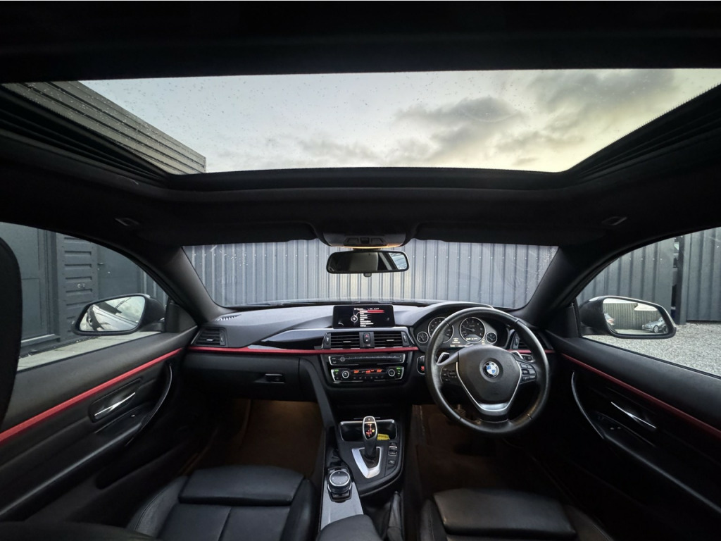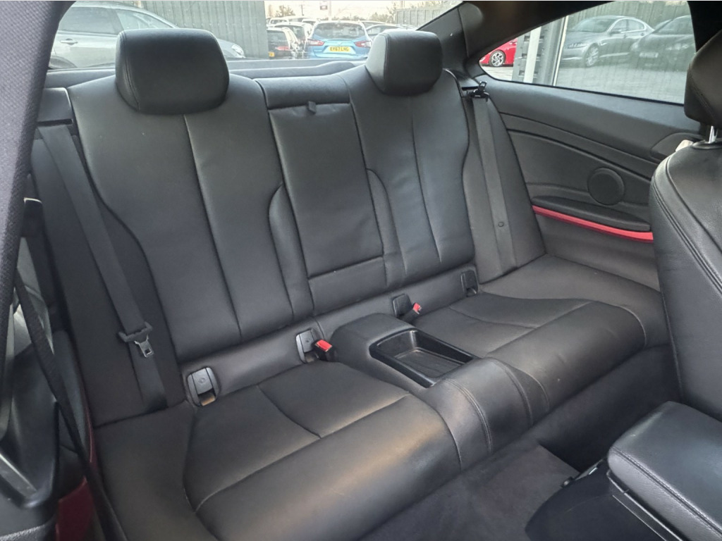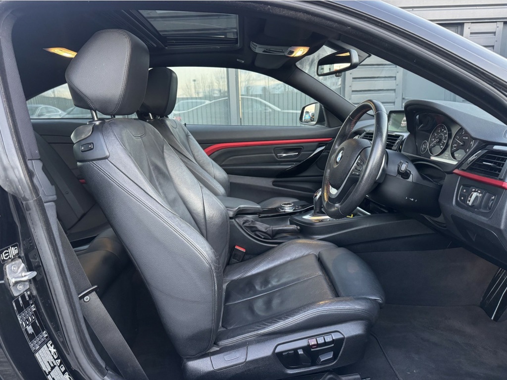 WE ARE PLEASED TO OFFER THIS 1 PREVIOUS OWNER ULEZ COMPLIANT (EURO 6) BMW 420D SPORT LINE XDRIVE FINISHED IN SAPPHIRE BLACK WITH BLACK SPORT LEATHER INTERIOR AND PIANO BLACK TRIM, EQUIPPED WITH A COMPREHENSIVE RANGE OF PREMIUM FEATURES INCLUDING ELECTRIC SLIDING SUNROOF, XENON HEADLIGHTS, ELECTRIC HEATED MEMORY SEATS, FRONT AND REAR PARKING SENSORS, 8-SPEED SPORT AUTOMATIC GEARBOX WITH PADDLE-SHIFT, PROFESSIONAL WIDE-SCREEN NAVIGATION, DAB RADIO, DVD PLAYER, CONNECTED DRIVE, TOUCHPAD CONTROLLER, 20GB BUILT-IN HARD DRIVE, USB AND BLUETOOTH AUDIO, DRIVING MODES, AMBIENT LIGHTING, DUAL-ZONE CLIMATE CONTROL, CRUISE CONTROL, AUTO-DIMMING ELECTRIC FOLDING MIRRORS, AUTO LIGHTS, RAIN-SENSING WIPERS, 19 UNMARKED DOUBLE SPOKE GLOSS BLACK ALLOYS, REAR SPOILER, FULL SERVICE HISTORY AND 2 KEYS. 19in Alloy Wheels - Double Spoke - 401, 6.5in Colour Display Screen, ASC - Automatic Stability Control, Air Conditioning - Automatic - Dual Zone Control, Air Conditioning and Radio Control Panel in High Gloss, Air Microfilter, Airbags - Passenger Deactivation, Alarm System Thatcham 1 with Remote Control, Ambient Lighting - Switchable BMW Classic Orange - White, Armrest - Rear Centre, Automatically Dimming Rear View Mirror, Auxiliary Input, Battery Safety Cut Off, Bluetooth Hands Free with USB Audio Interface, Bottle Holders - Front Door Storage Compartments, Brake Drying, Brake Pre-Tensioning, Bumpers - Body Colour, CBC - Cornering Brake Control, Comfort Go Keyless Engine Start, Concierge Service, Crash Sensor - Activating Central Locking Release, Cruise Control with Brake Function, DAB Digital Radio, DBC - Dynamic Brake Control, DSC - Dynamic Stability Control Plus, DTC - Dynamic Traction Control, Daytime Running Lights, Door Handles - Body Colour, Door Mirrors - Electric and Heated, Door Mirrors - Folding - Automatically Dimming, Door Sill Finishers - BMW Designation, Drive Performance Control - ECO PRO - Comfort - Sport - Sport Plus, Dynamic Brake Lights, Electronic Differential Lock, Engine Immobiliser, Enhanced Bluetooth Telephone Preparation with USB Audio Interface, Extended Lighting, Exterior B Pillar - High Gloss Black, Exterior Trim - High-Gloss Shadowline, First Aid Kit, Front Fog Lights, Full Black Panel Display, Glass Sunroof, Glove Box Opener with Chrome Trim, Handbrake Lever - Gear Lever Knob and Gaiters in Leather, Headlights - Automatic Activation, Headlights - Washer System, Headlining - Anthracite, Heat Protection Glazing with Green Tint, Interior Comfort Package, Interior Trim - Black High Gloss, Interior Trim - Black High Gloss with Coral Red Finisher, Interior Trim Finisher - Coral Red, Luggage Compartment - Lashing Eyes x2, Media Package - BMW Professional, Navigation System - BMW Professional Multimedia, Non Smokers Package, PDC - Park Distance Control - Front and Rear, PDC - Park Distance Control - Rear, Real Time Traffic Information, Seat Adjustment - Front Electric with Driver Memory, Seats - Front Heated, Shark Fin Aerial, Side Air Inlets - Highlighter in Black-Aluminium, Speakers x6, Sport Automatic Transmission, Sport Seats - Front, Sun Protection Glazing, Sun Visors with Illuminated Vanity Mirrors and Ticket Holder, Suspension - Five-Link, Suspension - Front Aluminium, TPWS - Tyre Pressure Warning System, Trim Designation Deletion, USB Audio Interface, Xenon Headlights