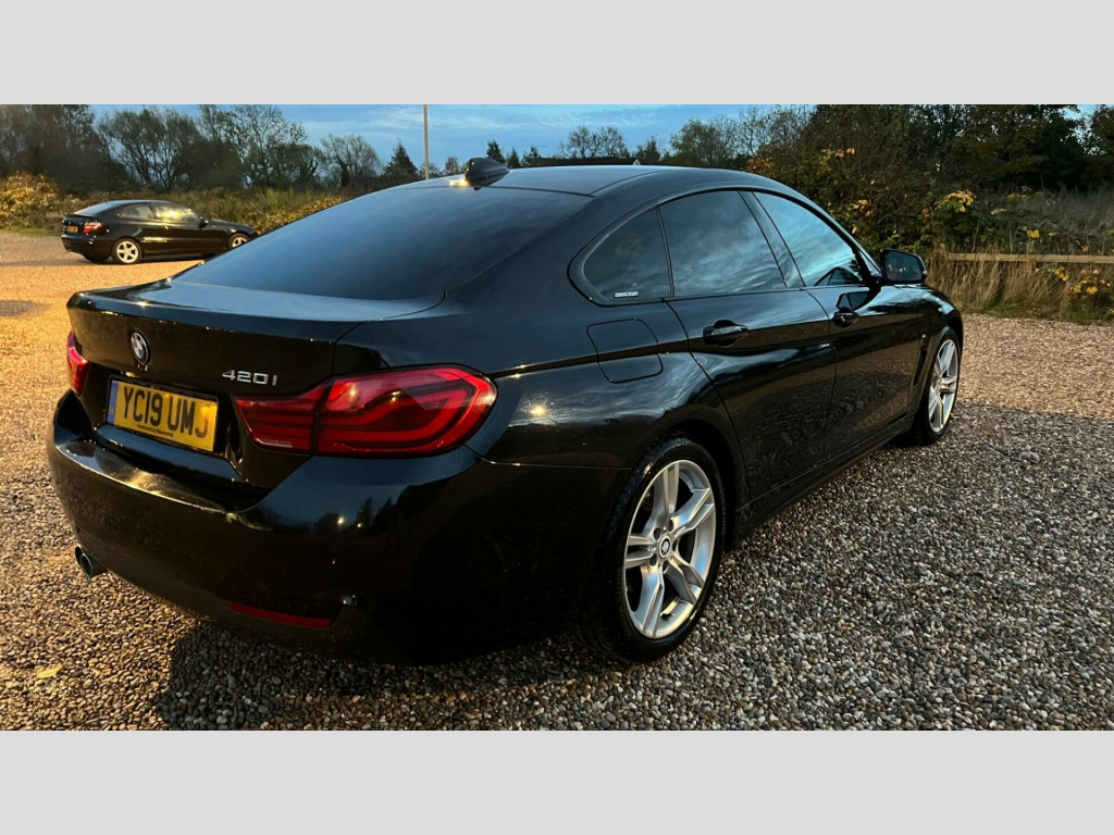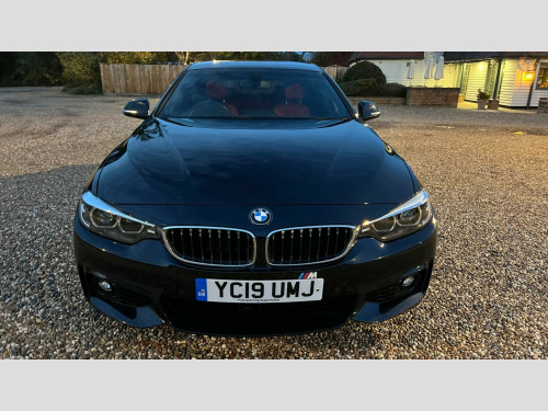 This 2019 BMW 4 Series Gran Coupe 420i M Sport offers a compelling blend of performance and practicality. Powered by a 2.0 litre Euro 6 petrol engine, this M Sport variant boasts a responsive 0-62mph acceleration in just 7.7 seconds. Inside, you'll find comfortable heated seats for the driver and front passenger, alongside the convenience of Bluetooth hands free facility with USB audio interface and audio streaming. Parking is made effortless with front and rear Park Distance Control, while the LED headlights and rain sensor with automatic headlight activation ensure excellent visibility in all conditions.The generous boot space provides ample room for luggage or shopping, making this Gran Coupe a versatile choice for everyday use and longer journeys. Compared to similar vehicles, the combination of its dynamic acceleration, advanced driver aids like the parking sensors and automatic headlights, and the premium M Sport trim, positions this BMW 4 Series Gran Coupe as a particularly well equipped and engaging option. v power socket in front centre console and passenger footwell, 18in alloy wheels - m double spoke - 400m, 6.5in colour display screen, access to bmw connected plus (12 month subscription from new), air breather - black high gloss, air conditioning - automatic with two-zone control, air conditioning and radio control panel in high gloss black, airbags, alarm system - thatcham 1 with remote control and engine immobiliser, ambient lighting - switchable bmw classic orange - cold white - led, armrest - front - folding with storage compartment, bmw connecteddrive online services, bmw emergency call, bmw professional radio with single cd player - with mp3 playback compatibility, bmw teleservices, battery safety cut off, bluetooth hands-free facility with usb audio interface and audio streaming, bottle holders integrated into door trim storage compartments - front - up to 1 litre, brake pad wear indicator - front and rear, bumper system front and rear - replaceable deformation elements for impacts up to 9mph, central locking switch - doors - fuel filler cap - luggage compartment, centre armrest for rear seats - include two cup holders, centre console - panel highlight in chrome, check control warning system for monitoring of lights and door-luggage compartment open warning, child seat isofix attachment - rear with passenger airbag deactivation, condition based service, crash sensor, cruise control with brake function, cup holders - two in front with sliding lid, dab digital radio, dsc - dynamic stability control plus, direction indicator - side repeaters - integrated in exterior mirrors, direction indicator lenses - led, door sill finishers - m designation, dynamic brake lights, eps - electric power steering, electric windows - front with open-close fingertip control - anti-trap facility and comfort closing function, exhaust tailpipes - dual left - with chrome finisher, extended lighting, exterior mirrors - heated - electrically adjustable, exterior parts in body colour, exterior trim - high-gloss shadowline, first aid kit and warning triangle, floor mats - velour, full black panel display, glove box, glove compartment - opener with chrome trim, handbrake lever - gear knob in leather, headlining - anthracite, heat protection glazing with green tint, high level third brake light, instrument cluster, interior lighting - front centre over interior mirror with soft-light and rear centre, interior trim - aluminium hexagon trim finishers with estoril blue matt highlight, kidney grille - chrome with extra wide black - high gloss vertical slats, led front foglights, led headlights, led taillights with new 3d l-shaped led light design, lights-on warning by audio warning signal when ignition is switched off, luggage compartment - lashing eyes, luggage compartment - light, m aerodynamic bodystyling, m sport instrument cluster, m sport multi-function leather steering wheel - three-spoke, m sport package, m sport suspension, media package - bmw professional, model designation, non smokers package, obc - on-board computer, oil sensor for level and grade - warning by check control system, optimum shift indicator, pdc - park distance control - front and rear, personal profile, rain sensor with automatic headlight activation, real time traffic information, rear seat headrests - two, rear suspension - five-link, remote control including integrated key - 2, remote control with integrated key with insert in blue, remote services, run flat tyres, seat belt security check for driver, seat heating for driver and front passenger, seats - 60-40 split folding rear, servotronic steering, shark fin, side armrests - front and rear integrated into door trim, side exterior m designation badges, side impact protection, sport automatic transmission, sport seats - front, start-stop button with comfort go keyless engine start and auto start-stop deactivation button, steering column with manual reach and rake adjustment, storage compartment in rear centre console, sun visors with vanity mirrors and ticket holder, suspension - front aluminium, tailgate operation - automatic, three-point seat belts - all seats, toolkit located in luggage compartment, twin horns, tyre pressure monitor with a three-level warning strategy, tyres - reduced rolling resistance, visible vin, welcome light, windscreen washer jets - heated, windscreen wipers - two-speed with adjustable intervals, windscreen with grey shade band, idrive controller - 8 favourite buttons, sun protection glazing, interior trim - aluminium hexagon trim finishers with black high-gloss highlight, dakota leather - coral red with black highlight with black interior