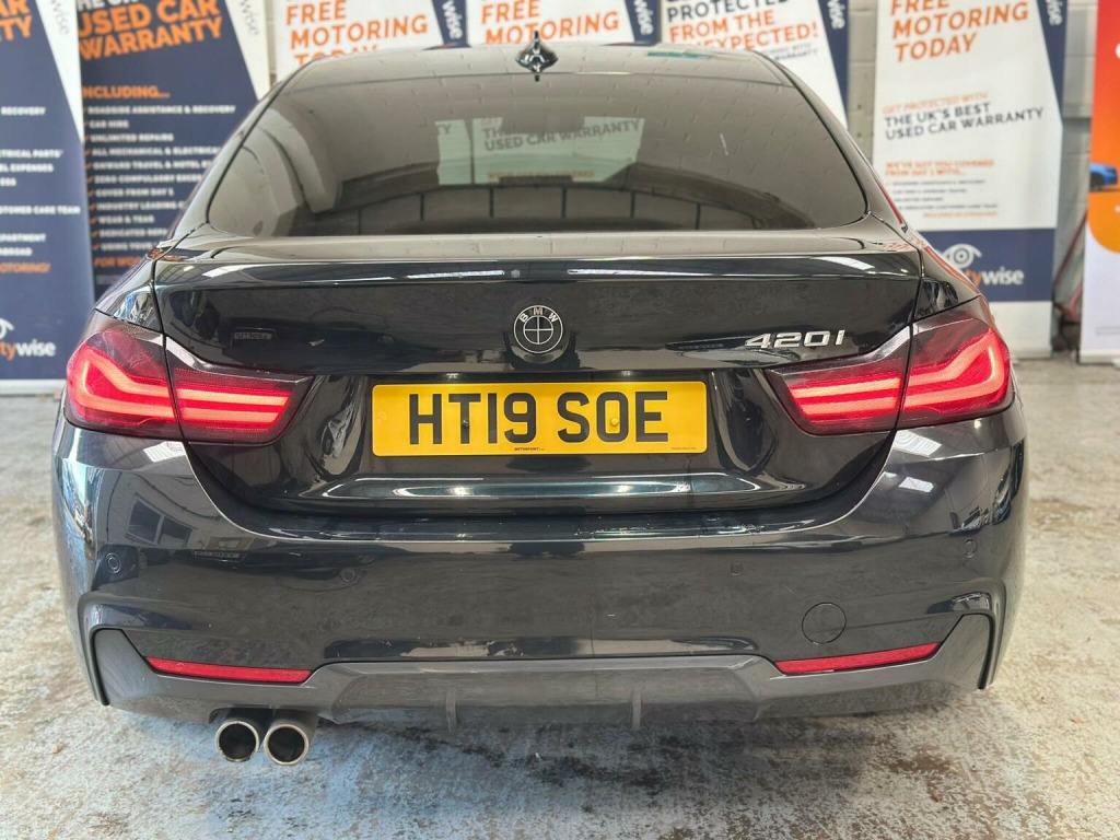⭐⭐⭐⭐⭐JUST ARRIVED!!** ABSOLUTE STUNNING EXAMPLE ????** SUPPLIED with a Brand New MOT and SERVICE along with 6 months PLATINUM COVER Parts/Labour WARRANTY (can be EXTENDED TO 24 MONTHS FOR GREAT PRICES!* with AA breakdown cover included FREE of CHARGE!!** COMPETITIVE FINANCE AVAILABLE with ZERO DEPOSIT and LOW APRS subject to status and terms etc** BUY WITH CONFIDENCE we are rated ⭐⭐⭐⭐⭐s on AUTOTRADER with over 275 buyer reviews!! ✅ BOOK A TEST DRIVE OR RESERVE NOW!!!, ✅ This 2019 BMW 4 Series Gran Coupe 420i M Sport boasts a full service history and a clear vehicle history check, offering peace of mind for its next owner. This stylish M Sport variant is powered by a 2.0 litre Euro 6 petrol engine, delivering an impressive 0-62mph acceleration in just 7.7 seconds. Notable features include LED headlights with a headlight wash function, a Speed Limit Display, and the High Beam Assistant for enhanced visibility. Inside, youll find Bluetooth hands free facility with USB audio interface and audio streaming, making connectivity seamless. The generous boot space ensures practicality for all your needs. This particular 420i M Sport stands out with its comprehensive provenance, including a full service history up to its last service at 55131 miles and a 12 month MOT provided on purchase, alongside a 6 month warranty for added assurance. The combination of its dynamic performance, indicated by its swift acceleration, and its array of advanced driver aids and connectivity options, positions it as a superior choice for those seeking a premium driving experience.