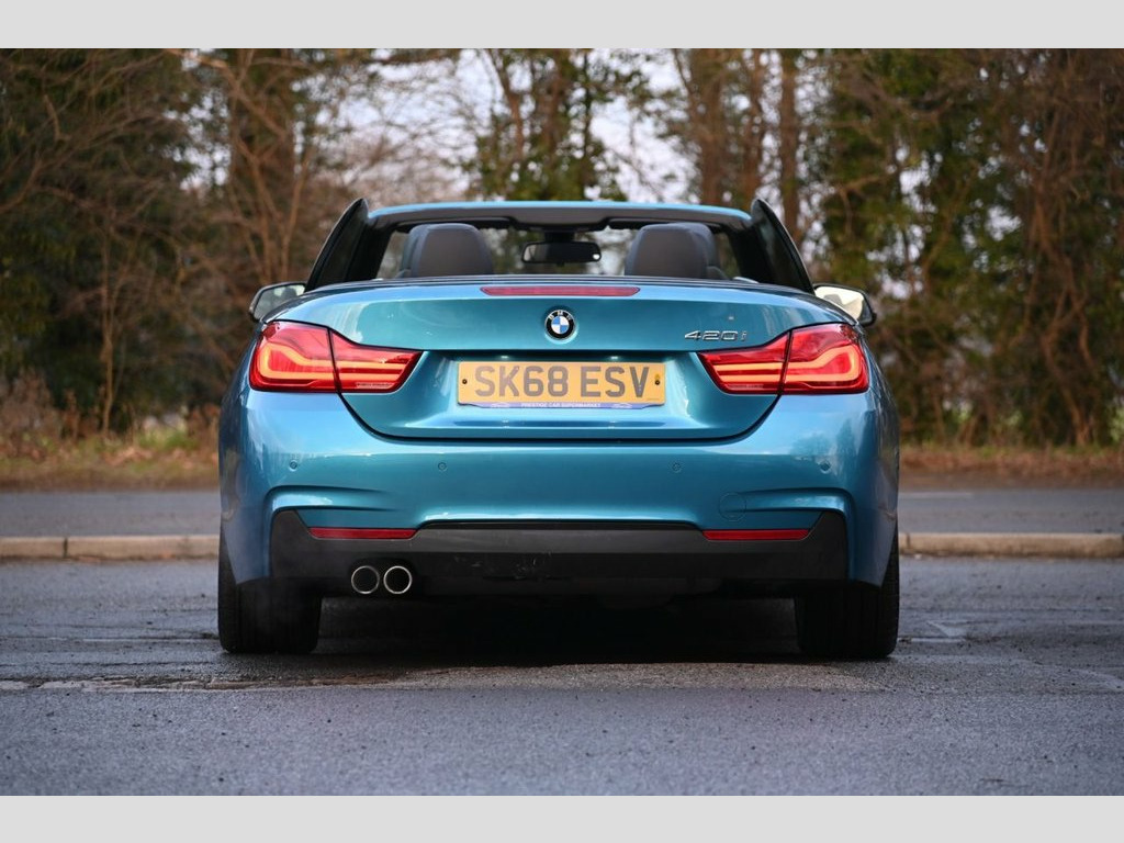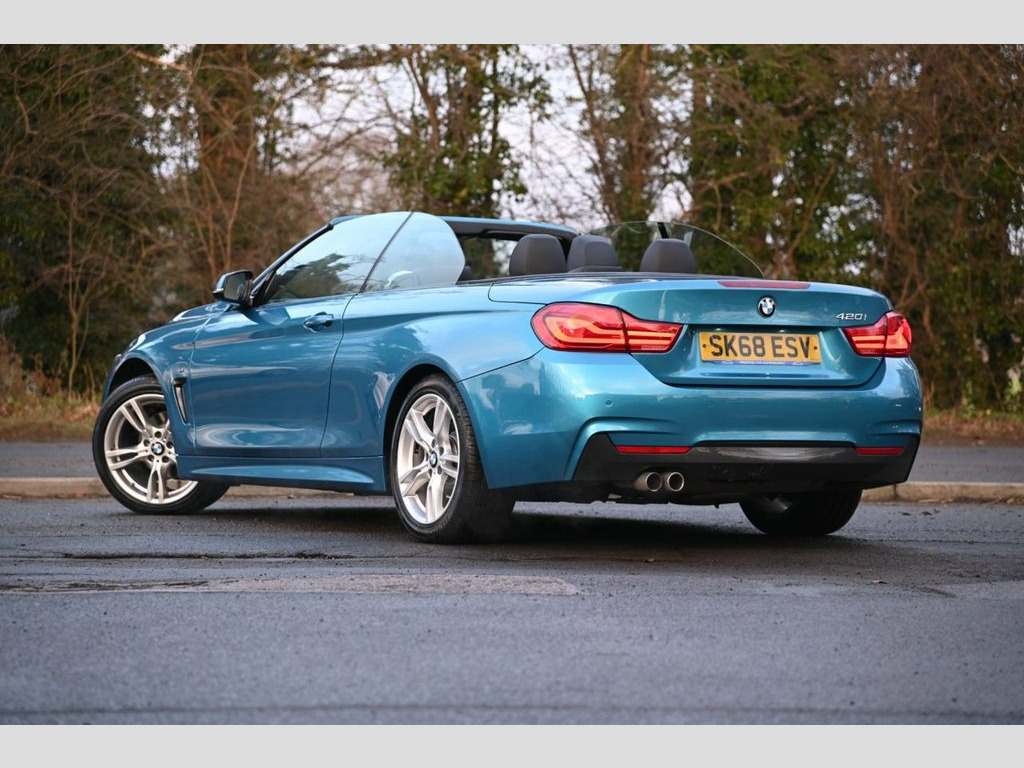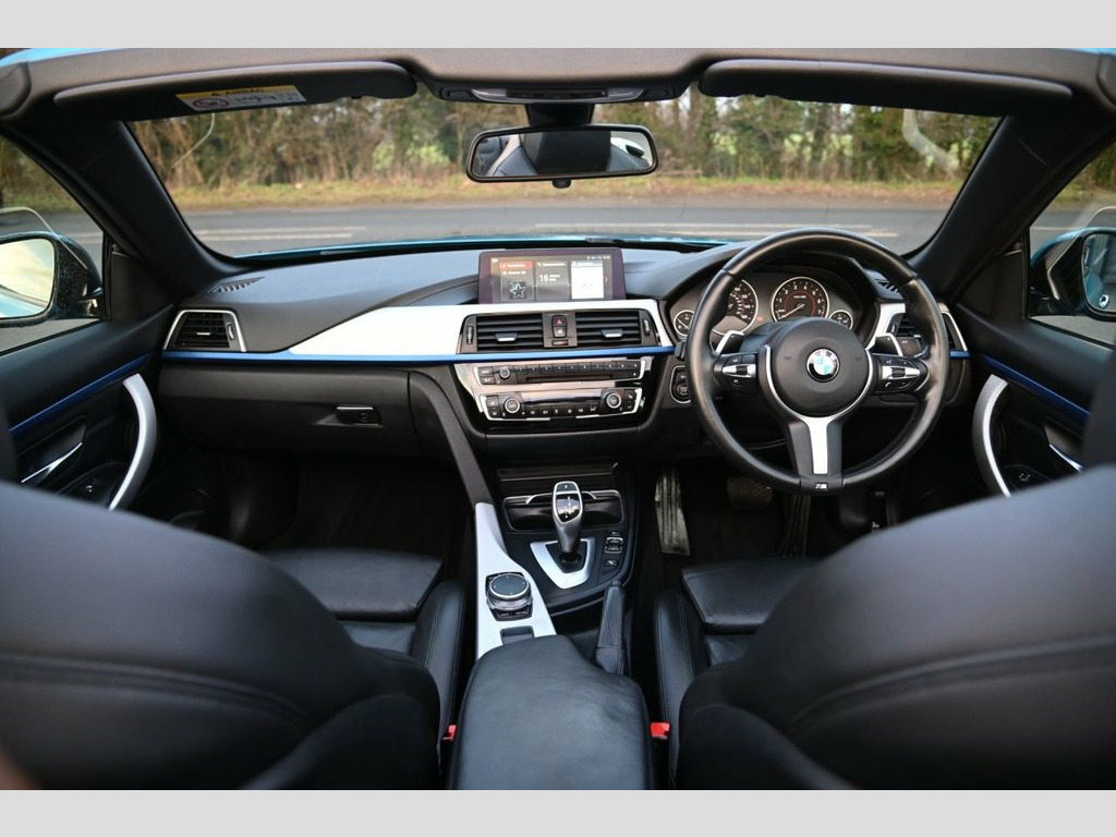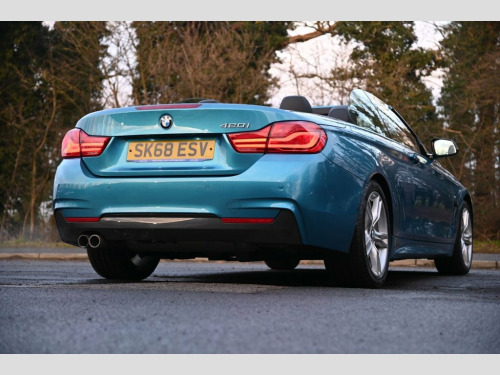 Prestige Car Supermarket in York presents this 2018 BMW 4 Series 420i M Sport Convertible, a Euro 6 petrol automatic producing 184 ps and combining engaging performance with open-top refinement. Finished in the striking Snapper Rocks Blue with Dakota leather upholstery in Black, this M Sport model is equipped with the desirable retractable hard top, offering year-round usability and effortless roof operation. The exterior is enhanced by 18in M Double Spoke alloy wheels, M aerodynamic bodystyling, high-gloss Shadowline trim, LED headlights, LED front fog lights and distinctive LED rear light signature. Inside, the cabin delivers a premium and driver-focused environment with front electric sport seats with driver memory and heating, automatic two-zone climate control, ambient lighting, aluminium hexagon interior trim with Estoril Blue highlights and an M Sport multifunction leather steering wheel. Technology and connectivity are provided via the BMW Professional media package, 6.5in colour display, DAB digital radio, Bluetooth with audio streaming, BMW ConnectedDrive services and cruise control with brake function. Practical and safety features include front and rear parking distance control, rain-sensing wipers, automatic headlights, alarm system, ISOFIX rear seating points, dynamic stability control and tyre pressure monitoring. This well-specified BMW 4 Series Convertible offers a balanced blend of sporting character, luxury detailing and everyday usability. 12V Power Socket in Front Centre Console, 18in Alloy Wheels - M Double Spoke - 400, 6.5in Colour Display Screen, Air Breather - Black High Gloss, Air Conditioning - Automatic with Two-Zo, Air Conditioning and Radio Control Panel, Airbags, Alarm System - Thatcham 1 with Remote Co, Ambient Lighting - Switchable BMW Classi, Armrest - Front - Folding with Storage C, BMW ConnectedDrive Online Services, BMW Emergency Call, BMW Professional Radio with Single CD Pl, BMW TeleServices, Battery Safety Cut Off, Bluetooth Hands-Free Facility with USB A, Boot Lid Lock with Soft Close Function, Bottle Holders Integrated into Door Trim, Brake Pad Wear Indicator - Front and Rea, Bumper System Front and Rear