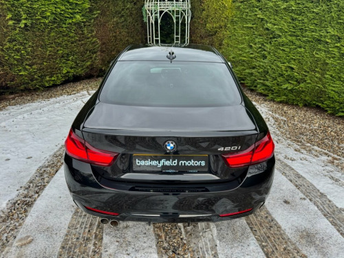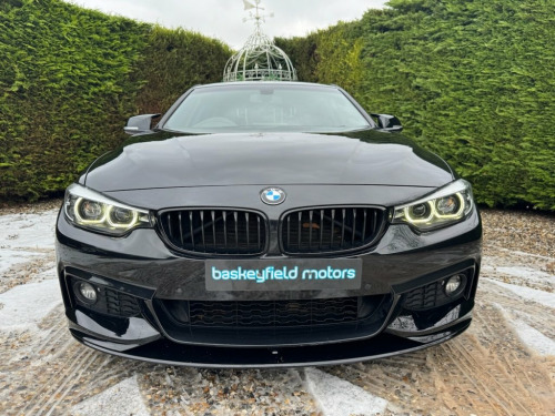BMW 4 SERIES FINISHED IN BLACK SAPPHIRE METALLIC PAINT, FULL BLACK DAKOTA LEATHER INTERIOR, 19" M Double Spoke alloy wheels, Harmon Kardon speaker system, Navigation system, Bluetooth, Heated seats, Dual zone climate control, Air conditioning, Rear parking sensors, Automatics headlights, Multifunction steering wheel With paddle shifters, Rear privacy glass, Front and rear fog lights, DAB Radio, Automatic Wipers, Iso-Fix rear seats. 12V Power Socket in Front Centre Console, 18in Alloy Wheels - M Double Spoke - 400, 19in Alloy Wheels - M Double Spoke Style, Access to BMW Connected Plus (12 Month S, Air Breather - Black High Gloss, Air Conditioning and Radio Control Panel, Air Conditioning Automatic with Two-Zone, Airbags, Alarm System - Thatcham 1 with Remote Co, Ambient Lighting - Switchable BMW Classi, Armrest - Front - Folding with Storage C, Battery Safety Cut Off, Black Sapphire, Bluetooth Hands-Free Facility with USB A, BMW ConnectedDrive Online Services, BMW Emergency Call, BMW Professional Radio with Single CD Pl, BMW TeleServices, Bottle Holders Integrated into Door Trim, Brake Pad Wear Indicator - Front and Rea