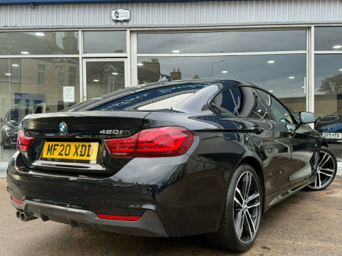 This 2020 BMW 4 Series Gran Coupe 420i M Sport is a superb example of German engineering, offering a blend of sporty performance and everyday practicality. Powered by a responsive 2.0 litre petrol engine, this Euro 6 compliant model delivers an impressive 0-62mph in just 7.5 seconds, showcasing its dynamic capabilities. The M Sport trim enhances its athletic appeal, while the M Sport Plus Package adds a premium touch, including the exceptional Loudspeaker System by Harman Kardon for an immersive audio experience. You'll also appreciate the convenience of automatic two zone climate control and the sophisticated M Gear Selector Lever finished in Nappa Leather.Beyond its performance credentials, this 4 Series Gran Coupe boasts a surprisingly large boot space, making it ideal for everything from weekly shopping to weekend getaways. The inclusion of LED headlights ensures excellent visibility in all conditions, contributing to both safety and the car's modern aesthetic. These features, combined with its brisk acceleration, demonstrate how this particular BMW 4 Series Gran Coupe stands out from others, offering a refined and engaging driving experience that is both exhilarating and comfortable for all occupants.. 12V Power Socket in Front Centre Console and Passenger Footwell, Access to BMW Connected Plus (12 Month Subscription From New), Air Breather - Black High Gloss, Air Conditioning Automatic with Two-Zone Control, Air Conditioning and Radio Control Panel in High Gloss Black, Airbags, Alarm System - Thatcham 1 with Remote Control and Engine Immobiliser, Ambient Lighting - Switchable BMW Classic Orange - Cold White - LED, Armrest - Front - Folding with Storage Compartment, BMW ConnectedDrive Online Services, BMW Emergency Call, BMW Professional Radio with Single CD Player - with MP3 Playback Compatibility, BMW TeleServices, Battery Safety Cut Off, Bluetooth Hands-Free Facility with USB Audio Interface and Audio Streaming, Bottle Holders Integrated into Door Trim Storage Compartments - Front - Up to 1 litre, Brake Pad Wear Indicator - Front and Rear, Bumper System Front and Rear - Replaceable Deformation Elements for Impacts Up to 9mph, Central Locking Switch - Doors - Fuel Filler Cap - Luggage Compartment, Centre Armrest For Rear Seats - Include Two Cup Holders, Centre Console - Panel Highlight in Chrome, Check Control Warning System for Monitoring of Lights and Door-Luggage Compartment Open Warning, Child Seat ISOFIX Attachment - Rear with Passenger Airbag Deactivation, Condition Based Service, Crash Sensor, Cruise Control with Brake Function, Cup Holders - Two in Front with Sliding Lid, DAB Digital Radio, DSC - Dynamic Stability Control Plus, Direction Indicator - Side Repeaters - Integrated in Exterior Mirrors, Direction Indicator Lenses - LED, Door Sill Finishers - M Designation, Dynamic Brake Lights, EPS - Electric Power Steering, Electric Windows - Front with Open-Close Fingertip Control - Anti-Trap Facility and Comfort Closing Function, Exhaust Tailpipes - Dual Left - with Chrome Finisher, Extended Lighting, Exterior Mirrors - Heated - Electrically Adjustable, Exterior Parts in Body Colour, Exterior Trim - High-Gloss Shadowline, First Aid Kit and Warning Triangle, Floor Mats - Velour, Full Black Panel Display, Glove Box, Glove Compartment - Opener with Chrome Trim, Handbrake Lever - Gear Knob in Leather, Headlining - Anthracite, Heat Protection Glazing with Green Tint, High Level Third Brake Light, Instrument Cluster, Interior Lighting - Front Centre Over Interior Mirror with Soft-Light and Rear Centre, Interior Trim - Aluminium Hexagon Trim Finishers with Estoril Blue Matt Highlight, Kidney Grille - Chrome with Extra Wide Black - High Gloss Vertical Slats, LED Front Foglights, LED Headlights, LED Taillights with New 3D L-Shaped LED Light Design, Lights-On Warning by Audio Warning Signal When Ignition is Switched Off, Luggage Compartment - Lashing Eyes, Luggage Compartment - Light, M Aerodynamic Bodystyling, M Gear Selector Lever in Nappa Leather, M Sport Instrument Cluster, M Sport Multi-Function Leather Steering Wheel - Three-Spoke, M Sport Package, M Sport Suspension, Model Designation, Navigation System - BMW Professional Multimedia, Non Smokers Package, OBC - On-Board Computer, Oil Sensor For Level and Grade - Warning by Check Control System, Optimum Shift Indicator, PDC - Park Distance Control - Front and Rear, Personal Profile, Rain Sensor with Automatic Headlight Activation, Real Time Traffic Information, Rear Seat Headrests - Two, Rear Suspension - Five-Link, Remote Control Including Integrated Key - 2, Remote Control with Integrated Key with Insert in Blue, Remote Services, Run Flat Tyres, Seat Belt Security Check for Driver, Seat Heating for Driver and Front Passenger, Seats - 60-40 Split Folding Rear, Servotronic Steering, Shark Fin, Side Armrests - Front and Rear Integrated into Door Trim, Side Exterior M Designation Badges, Side Impact Protection, Sport Seats - Front, Start-Stop Button with Comfort Go Keyless Engine Start and Auto Start-Stop Deactivation Button, Steering Column with Manual Reach and Rake Adjustment, Storage Compartment in Rear Centre Console, Sun Visors with Vanity Mirrors and Ticket Holder, Su.