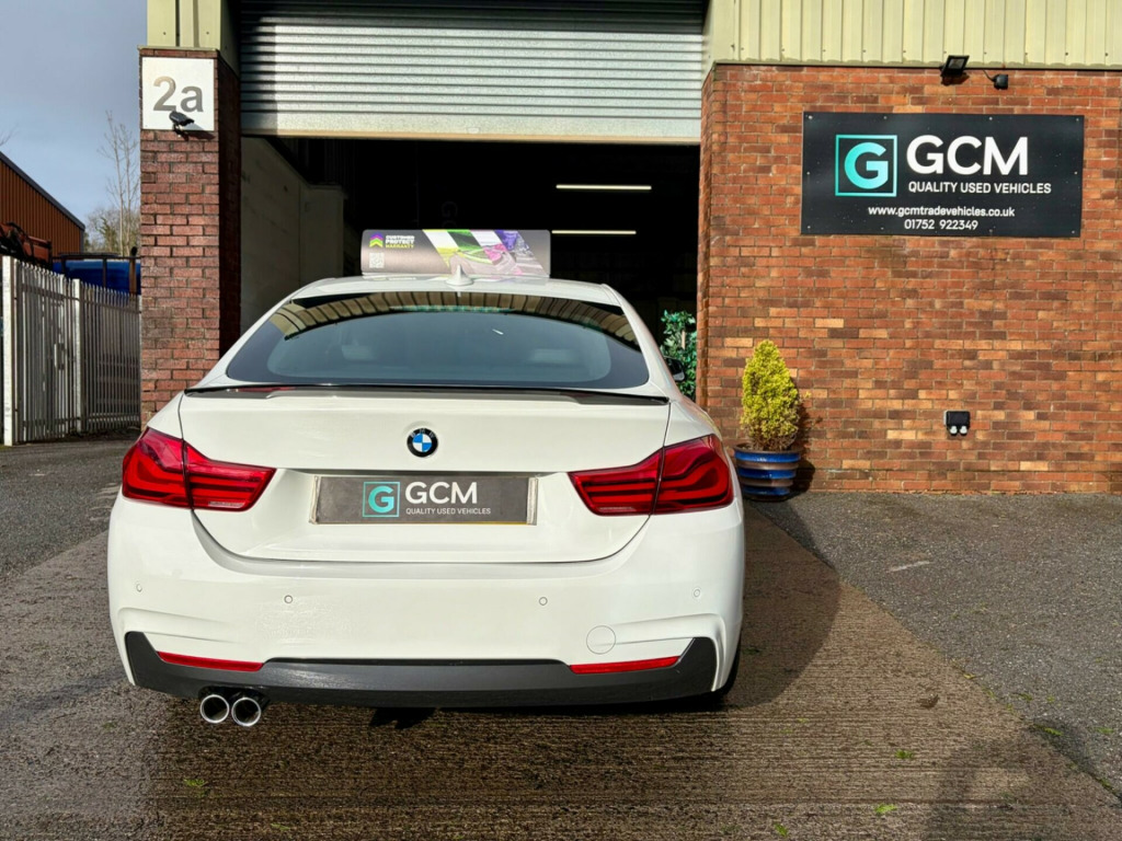 Here for sale is a beautifully presented 2018 68 plate BMW 4 Series Gran Coupe 2.0 420i M SportFinished in the best combination, Alpine White, accompanied with immaculate black Dakota leather Upholstery.The BMW has 2 former keepers & covered 78,000 miles with BMW service history completed at: 19k, 39k, 46k, 60k, 68k, 70k, 77k The car has also completed a fresh service advisory free MOT ensuring the car is ready for its new owner to drive home and enjoy.The car has a great spec including:GLOSS BLACK STYLING PACKAGELEATHERHEATED SEATS & STEERING WHEELAPPLE CAR PLAY PREPARATIONNAVIGATIONCRUISE CONTROLDABPARKING SENSORS& Much Much More The car is in OUTSTANDING condition inside and out and drives like new, a true credit to its previous owners. SUPPLIED WITH 6 MONTHS COMPREHENSIVE NATIONWIDE WARRANTY FOR COMPLETE PEACE OF MINDI welcome any inspection. LARGE INDOOR SHOWROOM FOR DARK EVENINGS AND WET WEATHER FINANCE OPTIONS AVAILABLEHPI CHECKED AND CLEARPART EXCHANGE WELCOMEEXTENDED WARRANTY OPTIONS AVAILABLEVIEWINGS BY APPOINTMENT ONLY01752 922349 ple carplay preparation, steering wheel - heated, air breather - body colour, interior trim - brushed aluminium with black high-gloss trim finisher, model designation deletion, dakota leather - black with blue highlights with black interior, 12v power socket in front centre console and passenger footwell, 18in alloy wheels - m double spoke - 400m, 6.5in colour display screen, access to bmw connected plus (12 month subscription from new), air breather - black high gloss, air conditioning - automatic with two-zone control, air conditioning and radio control panel in high gloss black, airbags, alarm system - thatcham 1 with remote control and engine immobiliser, ambient lighting - switchable bmw classic orange - cold white - led, armrest - front - folding with storage compartment, bmw connecteddrive online services, bmw emergency call, bmw professional radio with single cd player - with mp3 playback compatibility, bmw teleservices, battery safety cut off, bluetooth hands-free facility with usb audio interface and audio streaming, bottle holders integrated into door trim storage compartments - front - up to 1 litre, brake pad wear indicator - front and rear, bumper system front and rear - replaceable deformation elements for impacts up to 9mph, central locking switch - doors - fuel filler cap - luggage compartment, centre armrest for rear seats - include two cup holders, centre console - panel highlight in chrome, check control warning system for monitoring of lights and door-luggage compartment open warning, child seat isofix attachment - rear with passenger airbag deactivation, condition based service, crash sensor, cruise control with brake function, cup holders - two in front with sliding lid, dab digital radio, dsc - dynamic stability control plus, direction indicator - side repeaters - integrated in exterior mirrors, direction indicator lenses - led, door sill finishers - m designation, dynamic brake lights, eps - electric power steering, electric windows - front with open-close fingertip control - anti-trap facility and comfort closing function, exhaust tailpipes - dual left - with chrome finisher, extended lighting, exterior mirrors - heated - electrically adjustable, exterior parts in body colour, exterior trim - high-gloss shadowline, first aid kit and warning triangle, floor mats - velour, full black panel display, glove box, glove compartment - opener with chrome trim, handbrake lever - gear knob in leather, headlining - anthracite, heat protection glazing with green tint, high level third brake light, instrument cluster, interior lighting - front centre over interior mirror with soft-light and rear centre, interior trim - aluminium hexagon trim finishers with estoril blue matt highlight, kidney grille - chrome with extra wide black - high gloss vertical slats, led front foglights, led headlights, led taillights with new 3d l-shaped led light design, lights-on warning by audio warning signal when ignition is switched off, luggage compartment - lashing eyes, luggage compartment - light, m aerodynamic bodystyling, m gear selector lever in nappa leather, m sport instrument cluster, m sport multi-function leather steering wheel - three-spoke, m sport package, m sport suspension, media package - bmw professional, model designation, non smokers package, obc - on-board computer, oil sensor for level and grade - warning by check control system, optimum shift indicator, pdc - park distance control - front and rear, personal profile, rain sensor with automatic headlight activation, real time traffic information, rear seat headrests - two, rear suspension - five-link, remote control including integrated key - 2, remote control with integrated key with insert in blue, remote services, run flat tyres, seat belt security check for driver, seat heating for driver and front passenger, seats - 60-40 split folding rear, servotronic steering, shark fin, side armrests - front and rear integrated into door trim, side exterior m designation badges, side impact protection, sport seats - front, start-stop button with comfort go keyless engine start and auto start-stop deactivation button, steering column with manual reach and rake adjustment, storage compartment in rear centre console, sun visors with vanity mirrors and ticket holder, suspension - front aluminium, tailgate operation - automatic, three-point seat belts - all seats, toolkit located in luggage compartment, twin horns, tyre pressure monitor with a three-level warning strategy, tyres - reduced rolling resistance, visible vin, welcome light, windscreen washer jets - heated, windscreen wipers - two-speed with adjustable intervals, windscreen with grey shade band, idrive controller - 8 favourite buttons