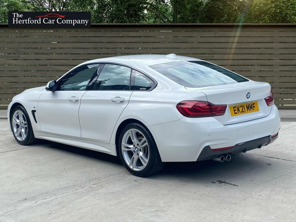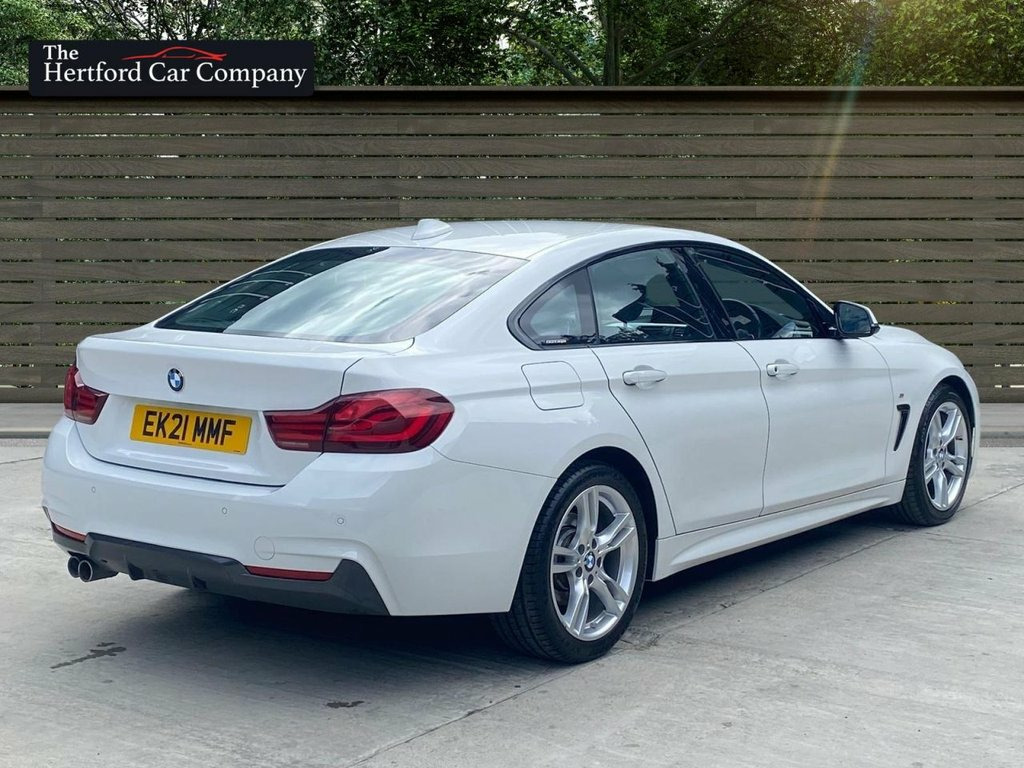 This 2021 BMW 4 Series Gran Coupe 420i M Sport boasts a full service history and has had only one owner from new, ensuring excellent provenance. This Euro 6 compliant model features a responsive 2.0L petrol engine and comes equipped with the desirable M Sport trim. Enjoy seamless connectivity with Bluetooth Hands Free Facility, USB Audio Interface, and Audio Streaming. Comfort is assured with two zone automatic air conditioning and heated seats for both the driver and front passenger. Parking is made simple with front and rear Park Distance Control, and visibility is enhanced by bright LED headlights. Experience the dynamic performance of this 420i M Sport, capable of accelerating from 0 to 60mph in just 7.7 seconds. This impressive acceleration, combined with its comprehensive service history and single owner status, sets this vehicle apart from others. The MOT is valid until April 2026, offering further peace of mind for the next owner. This BMW 4 Series Gran Coupe offers a compelling blend of style, technology, and driving pleasure. 12V Power Socket in Front Centre Console, 18in Alloy Wheels - M Double Spoke - 400, Access to BMW Connected Plus for 12 Mont, Air Breather - Black High Gloss, Air Conditioning Automatic with Two-Zone, Air Conditioning and Radio Control Panel, Airbags, Alarm System - Thatcham 1 with Remote Co, Ambient Lighting - Switchable BMW Classi, Armrest - Front - Folding with Storage C, BMW ConnectedDrive Online Services, BMW Emergency Call, BMW Professional Radio with Single CD Pl, BMW TeleServices, Battery Safety Cut Off, Bluetooth Hands-Free Facility with USB A, Bottle Holders Integrated into Door Trim, Brake Pad Wear Indicator - Front and Rea, Bumper System Front and Rear - Replaceab, Central Lockin