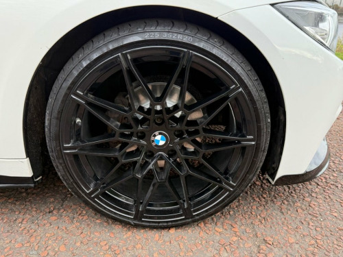 STUNNING BMW 420 I IN WHITE WITH FULL BLACK PACK, UPGRADED 20" ALLOY WHEELS, FULL M SPORT KIT WITH FRONT, REAR SPLITTERS, SPOILER THIS CAR IS SIMPLY AMAZING AND COMES WITH SOME LOVELY SPEC INCLUDING FULL BLACK LEATHER, HEATED SEATS, DUAL AIR CON, SAT NAV, DAB, BLUETOOTH, MULTI FUNCTIONING STEERING WHEEL, CRUISE CONTROL AND LOTS MORE, THIS CAR ONLY HAS 1 PREVIOUS OWNER AND COMES WITH A FULL BMW SERVICE HISTORY, LAST SERVICE WAS DONE 29/8/2025 AT 42867 MILES, WE WILL ALSO PROVIDE YOU WITH A FRESH MOT AND WARRANTY. 12V Power Socket in Front Centre Console, 18in Alloy Wheels - M Double Spoke - 400, Access to BMW Connected Plus (12 Month S, Air Breather - Black High Gloss, Air Conditioning and Radio Control Panel, Air Conditioning Automatic with Two-Zone, Airbags, Alarm System - Thatcham 1 with Remote Co, Alpine White, Ambient Lighting - Switchable BMW Classi, Armrest - Front - Folding with Storage C, Battery Safety Cut Off, Bluetooth Hands-Free Facility with USB A, BMW ConnectedDrive Online Services, BMW Emergency Call, BMW Professional Radio with Single CD Pl, BMW TeleServices, Bottle Holders Integrated into Door Trim, Brake Pad Wear Indicator - Front and Rea, Bumper System Front and Rear - Replaceab,