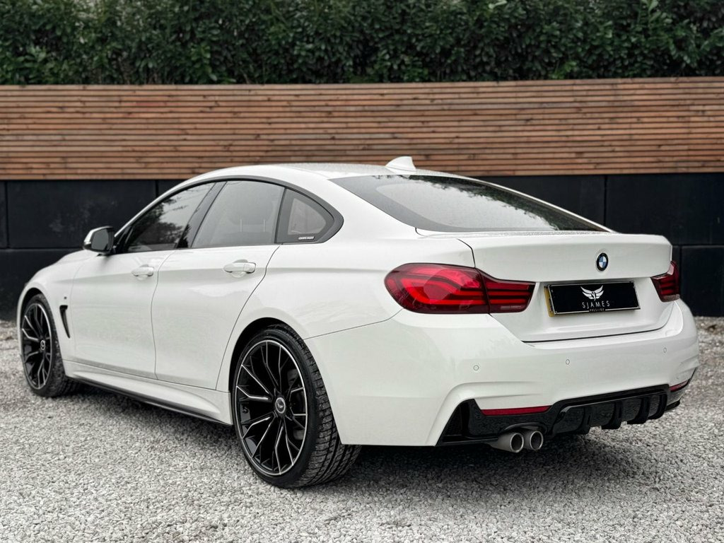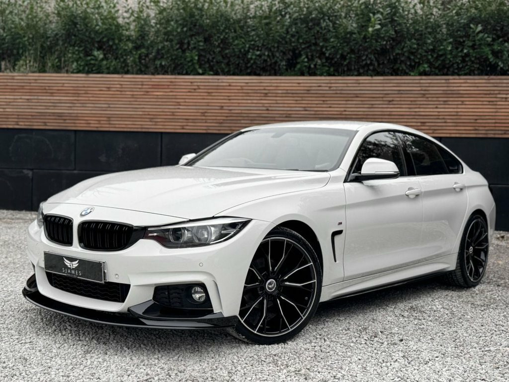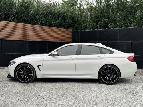 THIS STUNNING 4 SERIES GRAN COUPE COMES WITH A FANTASTIC SPEC INCLUDING - Alpine White - Black Dakota Leather - Heated Seats - Instrument panel with extended scope - Park distance Control. - Navigation system Professional - Cruise control with braking function - Navigation system Professional - Gloss black styling kit - Gloss black kidney grilles - 20" Alloy Wheels - OPTIONAL EXTRAS / UPGRADES AVAILABLE: - Optional brake caliper painting to a colour of your choice - Optional M4 style wing mirrors - Optional boot lip spoiler - Optional de-badge - Optional 3 year manufacturer equivalent warranty available. - The fitment of the brand new tyres, alloy wheels and styling parts are subject to a fee of £249. This also warrants the fitted parts for 12 months. - Number of keys to be confirmed at the point of sale. 12V Power Socket in Front Centre Console, 18in Alloy Wheels - M Double Spoke - 400, Access to BMW Connected Plus (12 Month S, Air Breather - Black High Gloss, Air Conditioning Automatic with Two-Zone, Air Conditioning and Radio Control Panel, Airbags, Alarm System - Thatcham 1 with Remote Co, Ambient Lighting - Switchable BMW Classi, Armrest - Front - Folding with Storage C, BMW ConnectedDrive Online Services, BMW Emergency Call, BMW Professional Radio with Single CD Pl, BMW TeleServices, Battery Safety Cut Off, Bluetooth Hands-Free Facility with USB A, Bottle Holders Integrated into Door Trim, Brake Pad Wear Indicator - Front and Rea, Bumper System Front and Rear - Replaceab, Central Lockin