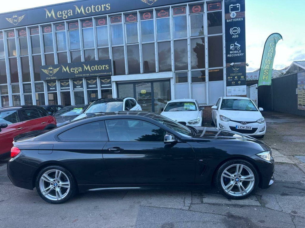 Beautiful BMW 4 Series 2.0 420i M Sport in excellent condition. Top Specs, Navigation, Parking Sensors, Heated Seats, Electric Windows, Electric Side Mirrors, Climate Control, Steering Control, Cruise Control, Bluetooth Connection, Aux Connection, Alloys, Isofix,Arm Rest and many more...., Great Mpg, cheap to Tax and Insure. ULEZ compliant. The car has been very well looked after and comes with FRESH-Service . We had it serviced recently at 112900 miles on 10/12/2025. It has also been MOTed till 20/11/2026 with no advisory. 3 Months essential warranty with Customer Protect is also included for your peace of mind. It is in very good condition and drives very smoothly with no fault whatsoever. ALL OUR CARS ARE FULLY INSPECTED BY PROFESSIONALS PRIOR TO ADVERTISEMENT & COME WITH 12 MONTHS FREE BASIC AA BREAKDOWN COVER. Finance is also available on request. DRIVE-AWAY INSURANCE IS ALSO AVAILABLE AT A COST. TO VIEW MORE STOCK PLEASE VISIT OUR WEBSITE AT: WWW.MEGAMOTORSUK.CO.UK , v power socket - centre console, 12v power socket - passenger footwell, 18in alloy wheels - light m star spoke - 400m, abs - anti lock braking system, asc - automatic stability control, air breather - black high gloss, air conditioning - automatic with two-zone control, air conditioning and radio control panel in high gloss black, airbags - curtain, airbags - driver, airbags - front side, airbags - passenger, airbags - passenger deactivation, alarm system thatcham 1 with remote control, ambient lighting - switchable bmw classic orange - cold white - led, armrest - front with storage compartment, armrest - rear centre, automatically dimming rear view mirror, auxiliary input, bmw apps interface, bmw connecteddrive online services, bmw emergency call, bmw professional radio - single cd and mp3, bmw remote services, bmw teleservices, battery safety cut off, bluetooth hands free with audio streaming, bluetooth hands free with usb audio interface, bottle holders - front door storage compartments, brake assist, brake drying, brake pad wear indicator, bumpers - body colour, cbc - cornering brake control, central locking - remote, check control warning system, child seat isofix attachment - rear, comfort go keyless engine start, crash sensor, cruise control with brake function, cup holders - front, cup holders - rear armrest, dab - digital radio, dbc - dynamic brake control, dsc - dynamic stability control plus, dtc - dynamic traction control, daytime driving lights, daytime running lights - led, display - 6.5in colour screen, door handles - body colour, door mirrors - body coloured, door mirrors - body coloured housing, door mirrors - electric and heated, door sill finishers - m designation, drive performance control - eco pro - comfort - sport and sport plus, dynamic brake lights, electric windows - front open and close fingertip control, electronic differential lock, extended lighting, exterior trim - high gloss shadowline, first aid kit, floor mats - velour, follow me home headlight function, front fog lights, full black panel display, gear knob - leather, handbrake - leather, head restraints - front and rear, headlight wash, headlights - automatic activation, headlights - beam throw control, headlining - m anthracite, heat protection glazing with green tint, heated windscreen washer jets, high level third brake light, hill start assistant, information plus, interior lighting - front and rear centre, interior trim - aluminium hexagon with estoril blue finisher, interior trim finisher - estoril blue, kidney grille - chrome with extra wide black - high gloss vertical slats, led tail lights, lights-on audio warning, loading aid, luggage compartment - lashing eyes, m aerodynamic bodystyling, m leather gear lever, m sport instrument cluster, m sport package, media package - bmw professional, navigation system - bmw professional multimedia, obc - on board computer, oil sensor for level and grade - warning by check control system, optimum shift indicator, pdc - park distance control - front and rear, pdc - park distance control - rear, personal profile, rain sensor with automatic headlight activation, real time traffic information, roof mouldings - body colour, run flat tyres, seats - front - manual height adjustment, seats - front heated, seats - front sports, seats - split rear 60-40, servotronic steering, shark fin aerial, side exterior m designation badges, side impact protection, speakers x6, steering column - reach and rake manual adjustment, steering wheel - leather - m sport, steering wheel - multifunction controls, storage compartment - behind rear seat backrest, storage compartment in rear centre console, sun visors with vanity mirrors and ticket holder, suspension - m sport, tpms - tyre pressure monitoring system, tool kit located in luggage compartment, tyres - reduced rolling resistance, usb connection, warning triangle, welcome light, windscreen with grey shade band, xenon headlights, idrive controller - 8 favourite buttons, enhanced bluetooth telephone preparation with usb audio interface and voice control, dakota leather - black with black interior