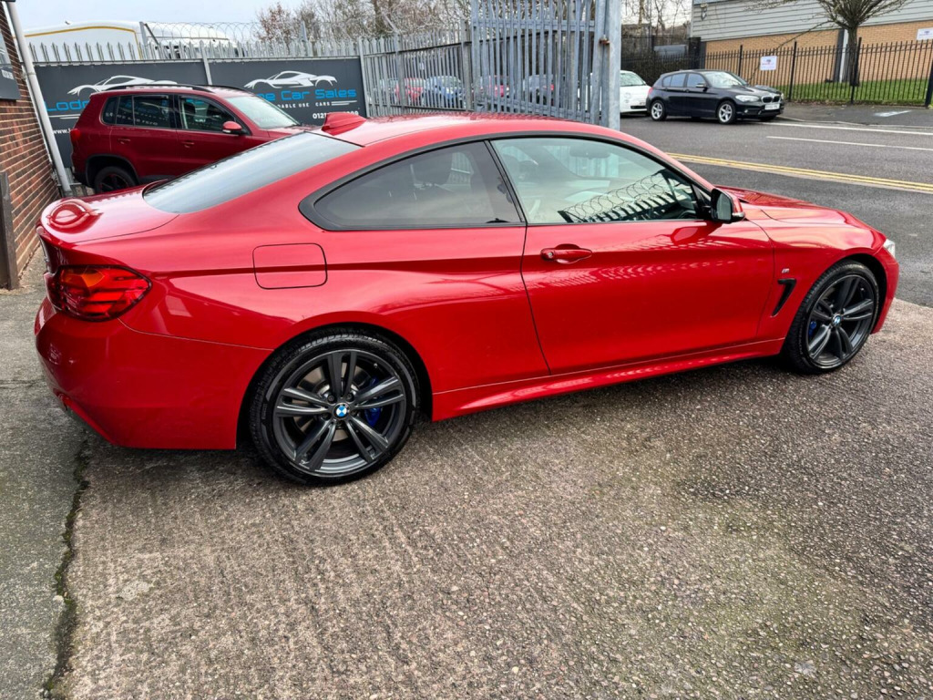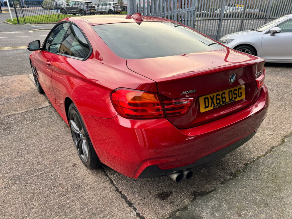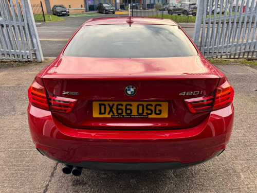 A FINE EXAMPLE OF A 420i M SPORT BOASTING SOME GREAT OPTIONAL EXTRAS AND FOUR WHEEL DRIVE SYSTEM. IT COMES WITH BMW SERVICE HISTORY, LONG MOT, TWO KEYS. THIS CAR BOASTS THE M SPORT TRIM AND COMES EQUIPPED WITH DESIRABLE FEATURES SUCH AS COMFORT ACCESS WITH SMART OPENER, KEYLESS ENTRY/START, HARMON KARDON SOUND SYSTEM, DRIVER ELECTRIC MEMORY SEAT, PADDLE SHIFT SPORTS TRANSMISSION, ELECTRIC FOLDING MIRRORS, CRUISE CONTROL, ENHANCED I-DRIVE SYSTEM, PARKING SENSORS, DAB/BLUETOOTH/MEDIA, ELECTRIC WINDOWS, CLIMATE CONTROL, PRIVACY GLASS, BLACK ALLOYS WITH BRIDGESTONE TYRES (REAR TYRES ALMOST NEW), NEW BRAKE PADS. CALL FOR FINANCE DEALS, WARRANTY INCLUDED. This BMW 4 Series offers an impressive fuel economy of 46 mpg, making it an economical choice for your journeys. Its low CO2 emissions further contribute to its environmental credentials and lower running costs. Youll also appreciate the low insurance group, which can help to reduce your annual expenses. Furthermore, the generous boot space provides ample room for luggage or shopping, demonstrating the practicality of this stylish coupe. These highlights collectively indicate that this BMW 4 Series offers a superior ownership experience compared to other vehicles in its class.