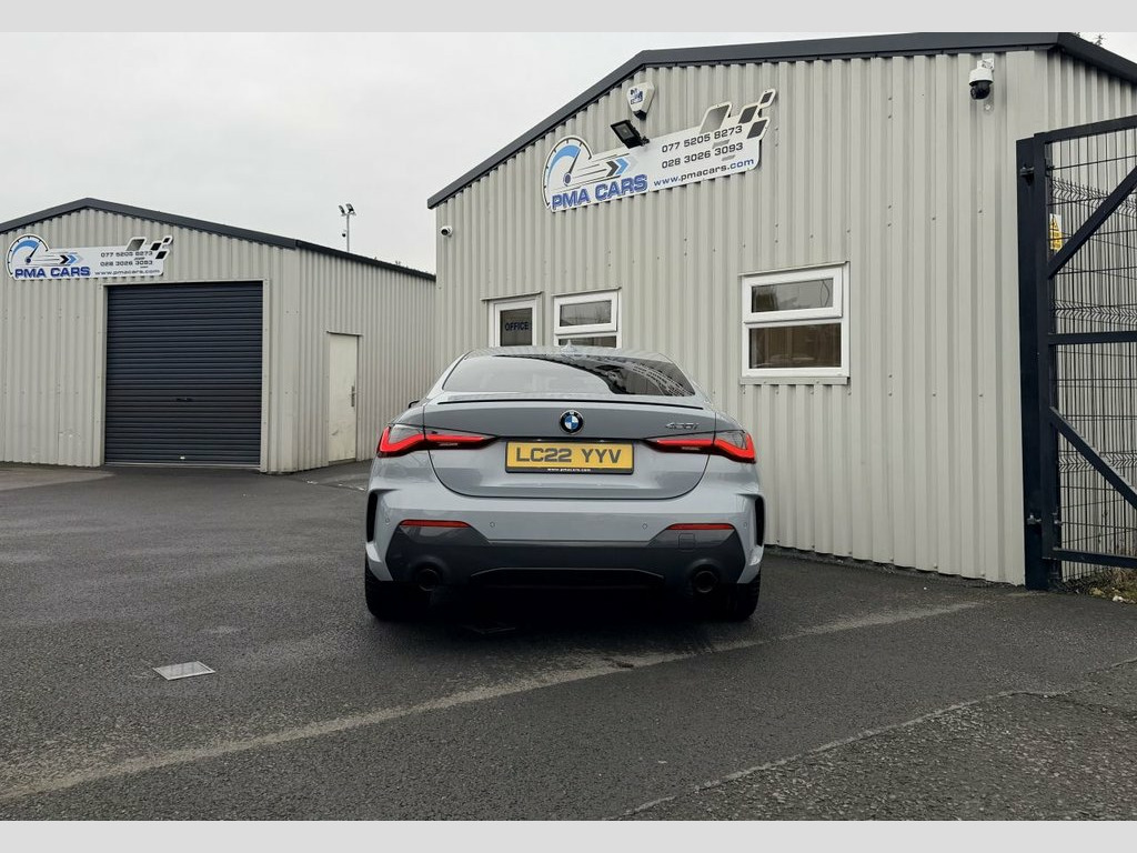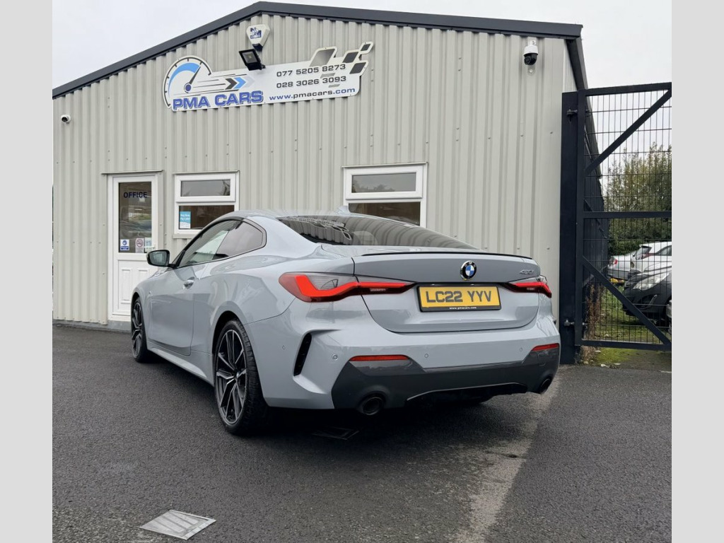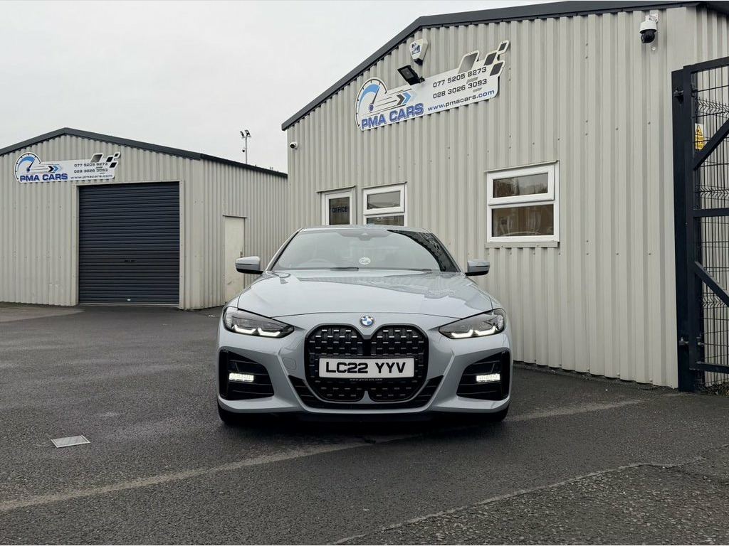 2022 BMW 420i M Sport Auto 181 Bhp Automatic Great Finance packages available Only 22,000 Miles Brooklyn Grey with Red leather interior 20" Alloy wheels Rear privacy glass Led daytime running lights Xenon headlights Led front fog lights Parking sensors Reverse camera Satellite navigation system Digital dash Full leather interior Heated seats Air conditioning Dual digital climate control Electric windows Electric mirrors Remote central locking Excellent condition throughout All Finance packages can be adjusted to best suit your budget Low deposit options available Credit and debit cards accepted £29950 07752058273 07763705142 02830263093 18in Alloy Wheels - Double Spoke Style -, Active Guard Plus, Air Conditioning - Automatic with Three-, Airbags, Alarm System, Ambient Lighting, Armrests, Attentiveness Assistant, Automatic Start-Stop Button, Battery in Luggage Compartment, BMW Connected Package Professional, BMW ConnectedDrive Online Services, BMW Emblem on Engine Compartment Lid and, BMW Emergency Call, BMW ID, BMW iDrive, BMW Individual Lights - Shadowline, BMW Kidney Grille with Mesh Grille - Fro, BMW Live Cockpit Professional, BMW TeleServices, Brooklyn Grey, Bumper System - Front and Rear, Centre Lock Switch, Closing System with Central Locking, Condition Based Service, Crash Sensor, Cruise Control, Cup Holders in Centr