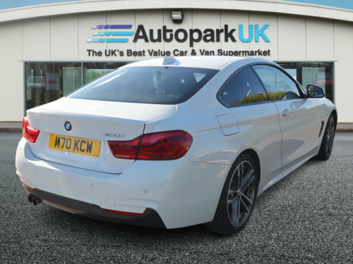 This 2018 BMW 4 Series 420i M Sport has been cared for by one former keeper and has a great service history with the most recent carried out at 71K. The 420i boasts an MOT valid until September 2026, offering excellent peace of mind. This stylish coupe features a powerful yet efficient 2.0L petrol engine, meeting Euro 6 emissions standards. Inside, you'll find the M Sport trim enhancing the driving experience, complemented by a premium Harman Kardon loudspeaker system for exceptional audio quality. Enjoy comfort in all conditions with automatic two zone climate control and heated seats for the driver and front passenger. The LED headlights provide clear visibility, and the rain sensor automatically activates them, ensuring you're always prepared for changing weather. This BMW 420i M Sport offers several advantages over similar vehicles. Its fuel economy is a notable highlight, achieving up to 49 mpg, which is impressive for its class. Furthermore, it falls into a low insurance group, potentially saving you money on running costs. You'll also appreciate the large boot space, providing ample room for luggage or shopping. The vehicle also benefits from low CO2 emissions, making it a more environmentally conscious choice. At Autopark UK, we pride ourselves on quality. Each vehicle is meticulously selected by our experienced buying team for its excellent condition and unbeatable value. As part of our commitment, this vehicle has undergone—or will undergo&mdash * MOT 23/09/2026 *, * AWAITING 110 POINT PDI CHECK BEFORE CO, High-Beam Assistant, Loudspeaker System - Harman Kardon, M Sport Braking System, M Sport Plus Package, Sun Protection Glazing