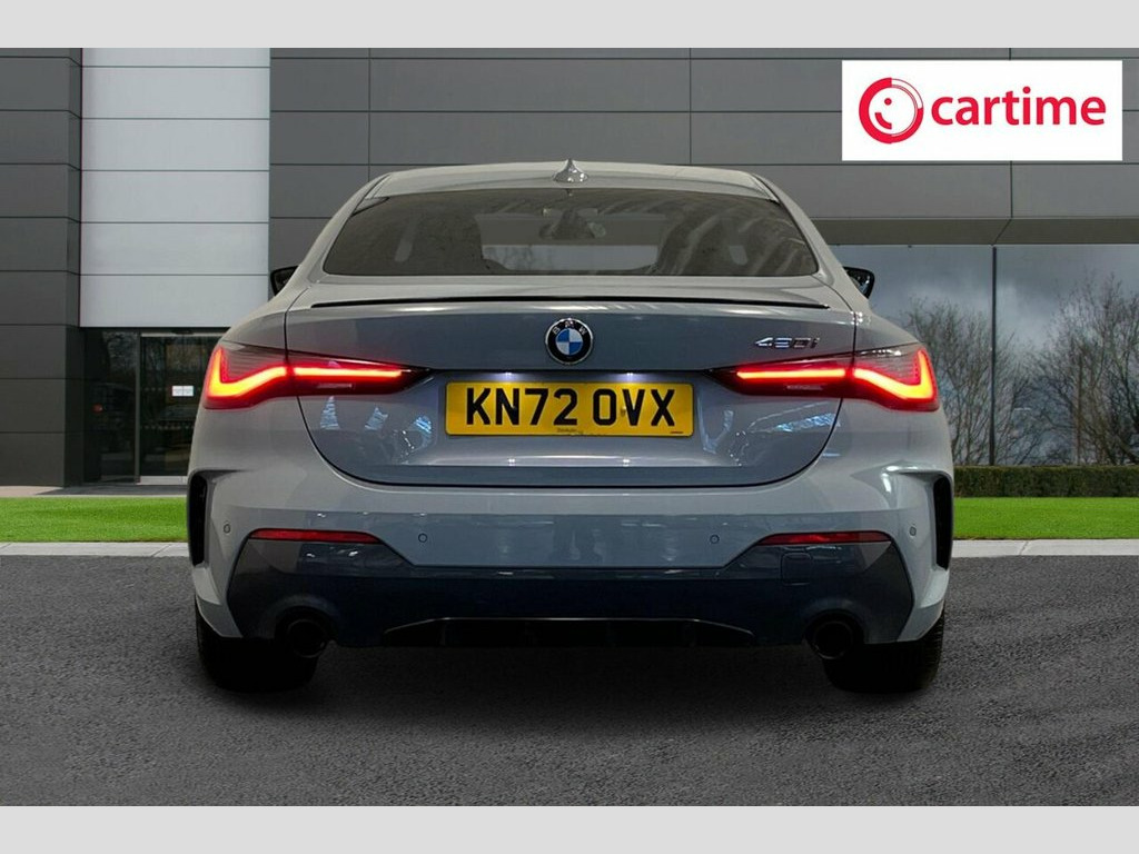 This 2022 BMW 4 Series 420i M Sport is a superb example, having had only one owner from new and boasting a clear vehicle history check. This Euro 6 compliant model features a 2.0 litre petrol engine and comes with an M Sport trim, enhanced by the M Sport Pro Package and M Sport Brakes with striking red calipers. Inside, you'll find the advanced BMW Live Cockpit Professional with Bluetooth connectivity, and a three-zone automatic air conditioning system that includes independent rear climate control. For convenience and safety, it is equipped with the Parking Assistant, which incorporates front and rear parking sensors, as well as a rear parking camera. This particular 420i M Sport offers excellent efficiency, achieving an impressive 43 miles per gallon, and benefits from a low CO2 emission rating, making it an environmentally conscious choice. Its low insurance group rating further adds to its appeal as an economical option. Practicality is also a strong point, with generous boot space suitable for everyday needs and luggage. The MOT is valid until September 2026, providing peace of mind for the new owner. These combined highlights demonstrate how this BMW 4 Series stands out from other vehicles in its class. 18in Alloy Wheels - Double Spoke Style -, 19in Alloy Wheels - M Double Spoke Style, Active Guard Plus, Air Conditioning - Automatic with Three-, Airbags, Alarm System, Ambient Lighting, Armrests, Attentiveness Assistant, Automatic Start-Stop Button, Battery in Luggage Compartment, BMW Connected Package Professional, BMW ConnectedDrive Online Services, BMW Emblem on Engine Compartment Lid and, BMW Emergency Call, BMW ID, BMW iDrive, BMW Individual Lights - Shadowline, BMW Kidney Grille with Mesh Grille - Fro, BMW Live Cockpit Professional, BMW TeleServices, Brooklyn Grey, Bumper System - Front and Rear, Centre Armrest in Rear - Folding with 2 , Centre Lock Switch, Closing System with Central