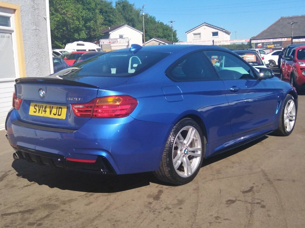 The 2014 BMW 420i M Sport xDrive is an exceptional blend of performance, style, and everyday usability. As part of BMW's 4 Series lineup, this model delivers exactly what you'd expect from the brand: sharp handling, strong road presence, and a premium driving experience—all enhanced by the xDrive all-wheel drive system. From the moment you lay eyes on the 420i M Sport, its dynamic design makes an impression. The M Sport package adds a more aggressive body kit, larger alloy wheels, and sportier detailing that really elevate the car's curb appeal. Step inside, and you're greeted by a refined interior that's both driver-focused and elegant, with high-quality materials and intuitive technology. The sport seats and M-specific trim pieces add an extra layer of excitement. Under the hood, the turbocharged 2.0L engine might not be the most powerful in the lineup, but it's smooth, responsive, and surprisingly efficient. With xDrive, BMW's intelligent AWD system, the 420i offers impressive traction and stability, making it a joy to drive in all weather conditions, from dry winding roads to slippery winter streets. Combined with the M Sport suspension and precise steering, this coupe feels agile and planted. What truly stands out about the 420i M Sport xDrive is its balance. It's sporty but comfortable, efficient but fun. It's a car that feels just as at home on a mountain road as it does in daily commuting. For those who want a premium 12V Power Socket - Centre Console, 12V Power Socket - Passenger Footwell, 18in Alloy Wheels - Light M Star Spoke -, 18in Alloy Wheels - M Double-Spoke - Fer, ABS - Anti Lock Braking System, Air Breather - Black High Gloss, Air Breather - Body Colour, Air Conditioning - Automatic with Two-Zo, Air Conditioning and Radio Control Panel, Airbags - Curtain, Airbags - Driver, Airbags - Front Side, Airbags - Passenger, Airbags - Passenger Deactivation, Alarm System Thatcham 1 with Remote Cont, Ambient Lighting - Switchable BMW Classi, Armrest - Front with Storage Compartment, Armrest - Rear Centre, ASC - Automatic Stability Control, Automatically Dimming Rear View Mirror, Auxiliary Input, Battery Sa