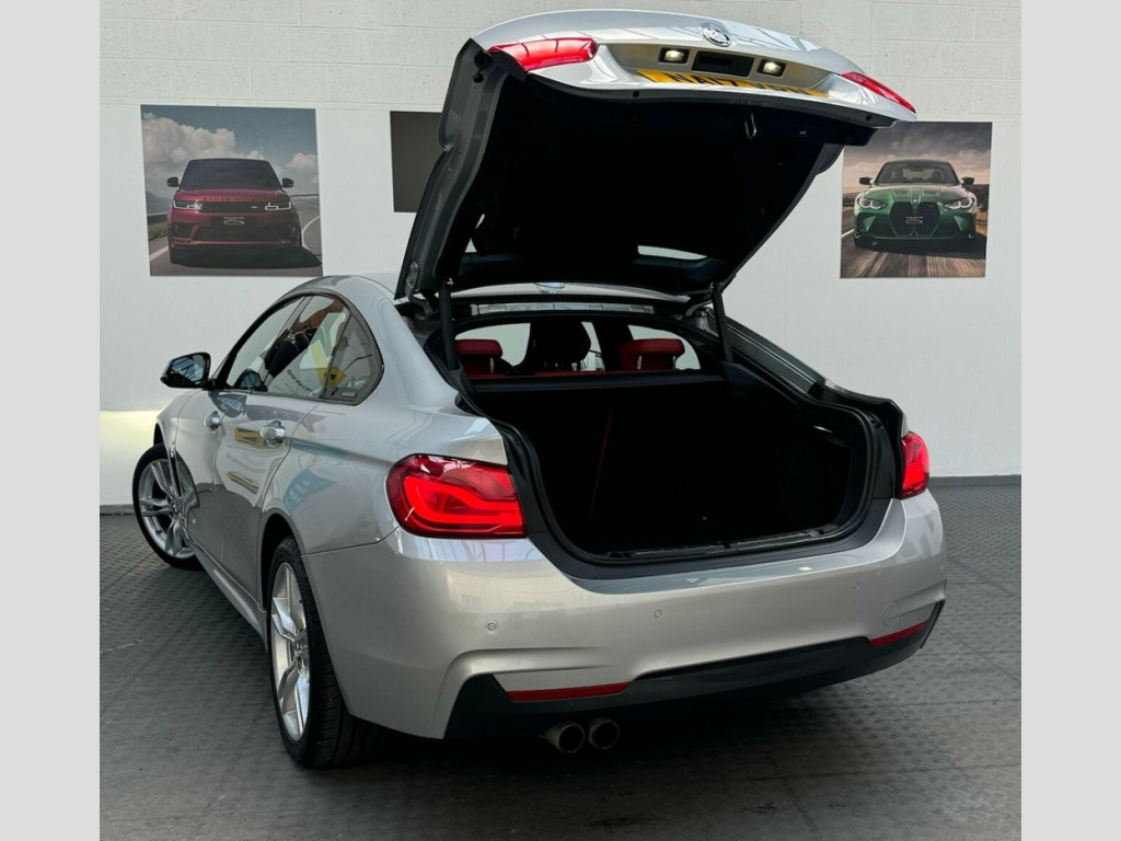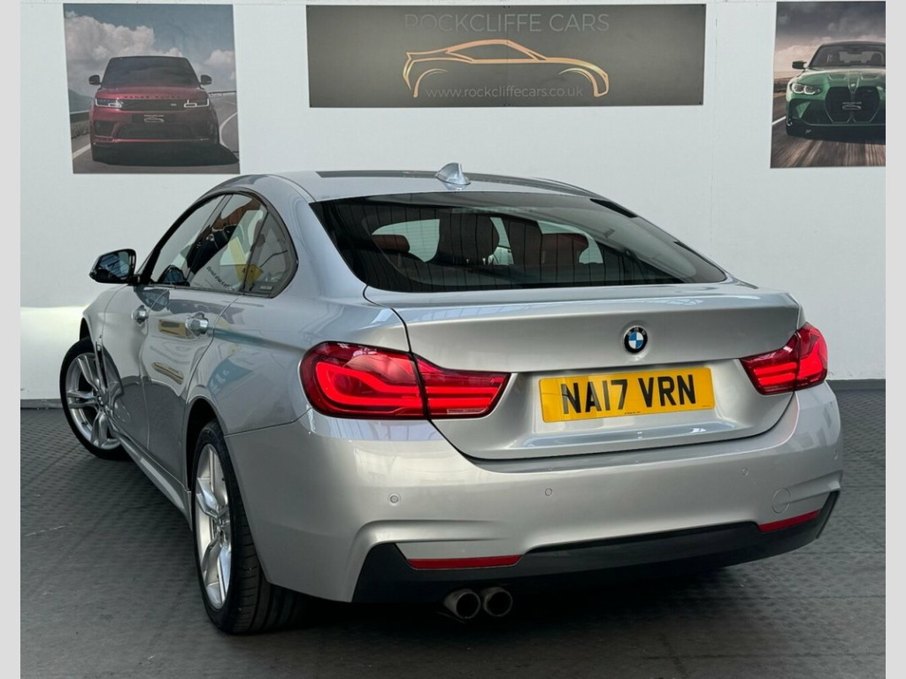 ROCKCLIFFE CARS PRESENTS – BMW 4 SERIES GRAN COUPE 2.0 420i M SPORT AUTO xDRIVE Registration: NA17 VRN Mileage: Only 50,000 Miles Fuel: Petrol | Transmission: Automatic | Drive: xDrive (4WD) Engine: 2.0 Turbo (184 PS) | Euro 6 (s/s) Colour: Silver Metallic Service History: Full and up to date OVERVIEW Rockcliffe Cars are delighted to offer this stunning BMW 4 Series Gran Coupe 2.0 420i M Sport Auto xDrive, finished in sophisticated Silver Metallic with contrasting black Dakota leather interior. This elegant five-door coupe combines sports performance, executive luxury, and practical versatility, making it the ideal choice for both business and pleasure. With just 50,000 miles and a full service history, this car has clearly been cared for meticulously and presents in excellent condition throughout. Powered by BMW's refined 2.0-litre petrol engine producing 184 PS, paired with the smooth 8-speed automatic gearbox and intelligent xDrive all-wheel-drive system, this 4 Series delivers exceptional performance, grip, and comfort in all conditions. EXTERIOR The M Sport styling package gives this car a distinctive and aggressive stance, featuring: M Aerodynamic body styling 18" M Star-Spoke Alloy Wheels LED Headlights with LED Daytime Running Lights LED Rear Lights Gloss Black Exterior Trim M Sport Suspension Shark-fin antenna and signature coupe roofline Finished in Silver Metallic, this 4 Series shines from every angle and looks every bit the prem 12V Power Socket in Front Centre Console, 18in Alloy Wheels - M Double Spoke - 400, Air Breather - Black High Gloss, Air Conditioning - Automatic with Two-Zo, Air Conditioning and Radio Control Panel, Airbags, Alarm System - Thatcham 1 with Remote Co, Ambient Lighting - Switchable BMW Classi, Armrest - Front - Folding with Storage C, Battery Safety Cut Off, Bluetooth Hands-Free Facility with USB A, BMW ConnectedDrive Online Services, BMW Emergency Call, BMW Professional Navigation, BMW TeleServices, Bottle Holders Integrated into Door Trim, Brake Pad Wear Indicator - Front and Rea, Bumper System Front and Rear - Replaceab, Central Locking Switch - Doors - Fuel Fi, Centre Armrest For Rear Sea