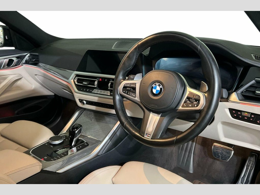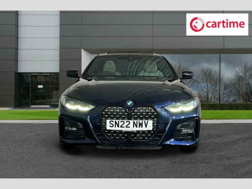 This 2022 BMW 4 Series 420i M Sport Pro Edition is a superb example, having had only one owner since new. It boasts a powerful yet efficient 2.0 litre petrol engine paired with a four wheel drive system, ensuring confident handling in all conditions. This Euro 6 compliant vehicle is equipped with a desirable electric glass sunroof, allowing you to enjoy the open air. Inside, you'll find the BMW Connected Package Professional, offering seamless integration with Android Auto and Apple CarPlay, alongside the advanced BMW Live Cockpit Professional with Bluetooth connectivity. Comfort is further enhanced by automatic three zone air conditioning, and visibility is excellent thanks to the bright LED headlights. The MOT remains valid until July 2026, providing peace of mind. This BMW 4 Series 420i M Sport Pro Edition offers several key advantages that set it apart. Its impressive fuel economy of 40 mpg means you can enjoy longer journeys with fewer stops for fuel, a significant benefit compared to many vehicles in its class. Furthermore, its low insurance group rating makes ownership more affordable. You'll also appreciate the generous boot space, providing ample room for luggage or shopping. The vehicle also benefits from low CO2 emissions, indicating a more environmentally conscious performance. 19in Alloy Wheels - Double Spoke Style -, 19in Alloy Wheels - M Double Spoke Style, Active Guard Plus, Adaptive M Suspension, Air Conditioning - Automatic with Three-, Airbags, Alarm System, Ambient Lighting, Armrests, Attentiveness Assistant, Automatic Start-Stop Button, Battery in Luggage Compartment, BMW Connected Package Professional, BMW ConnectedDrive Online Services, BMW Emblem on Engine Compartment Lid and, BMW Emergency Call, BMW ID, BMW iDrive, BMW Individual High-Gloss Shadowline wit, BMW Individual Lights - Shadowline, BMW Live Cockpit Professional, BMW TeleServices, Bumper System - Front and Rear, Centre Lock Switch, Closing System with Central Locking, Condition Based Service,