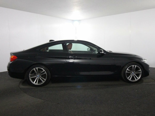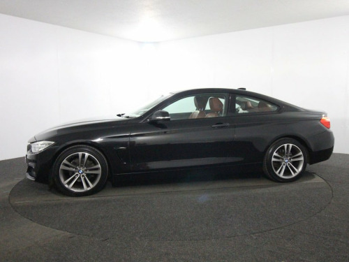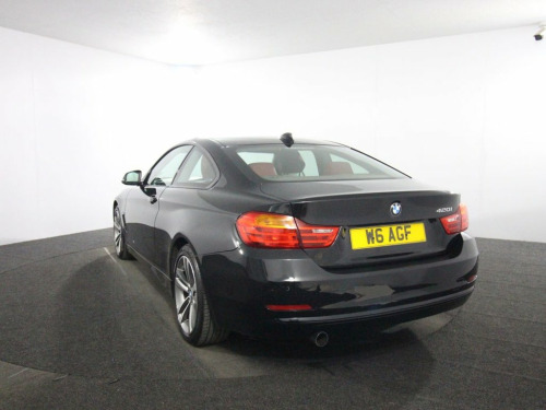 Service history with 3 services. Last serviced at 43632 miles. This 2014 BMW 4 Series 2.0 420i Sport Coupe delivers dynamic performance with its 184ps Euro 6 petrol engine paired with a manual gearbox and drive performance control modes including ECO PRO, Comfort, Sport, and Sport Plus. Premium 18-inch double spoke alloy wheels, Sport M-designated gearshift lever, and aluminium front suspension arms complement sporty handling and sharp styling. The striking Black Sapphire metallic paint (£645 option) enhances the coupe's athletic stance. Inside, the cabin impresses with Dakota leather in Coral Red/Black, a sport multi-function leather steering wheel, and front sport seats with manual height adjustment and heating for comfort. Technology highlights include an 8.8in iDrive controller with shortcut buttons, 6.5-inch colour display screen, Bluetooth with USB audio interface (£430 option), DAB digital radio, and park distance control (PDC) front and rear. Automatic xenon headlights with washers and rain sensor add convenience and safety. Further premium touches include dual-zone automatic climate control with air conditioning control panel in high gloss black, ambient lighting with switchable BMW Classic orange or white, a first aid kit, electronically controlled electric windows with fingertip operation, electrically heated and auto-dimming folding door mirrors (£300 option), and a non-smoker's package. Safety features are comprehensive with ABS, dyn 12V Power Socket in Front Centre Console, 18in Alloy Wheels - Double Spoke - 397, 6.5in Colour Display Screen, ABS - Anti Lock Braking System, Air Conditioning - Automatic - Dual Zone, Air Conditioning and Radio Control Panel, Air Microfilter, Airbags - Curtain, Airbags - Driver, Airbags - Front Side, Airbags - Passenger, Airbags - Passenger Deactivation, Alarm System Thatcham 1 with Remote Cont, Ambient Lighting - Switchable BMW Classi, Armrest - Front with Storage Compartment, Armrest - Rear Centre, ASC - Automatic Stability Control, Automatically Dimming Rear View Mirror, Auxiliary Input, Battery Safety Cut Off, Black Sapphire, Bluetooth Hands Free with USB Audio Inte, BMW Professional Ra