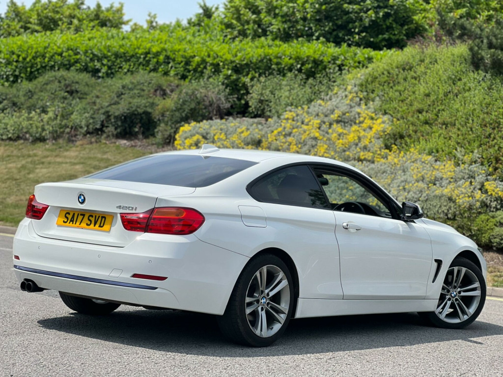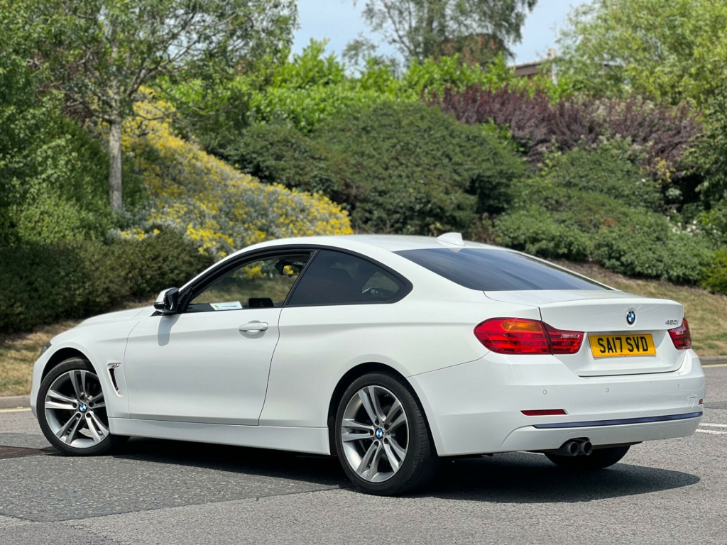 2017 BMW 420i Sport 2.0 petrol finished in white. 92,000 warranted miles on the clock. Comes with a 12 month warranty! MOT til 6th July 2025. 2 former keepers from new. Car drives well with no mechanical faults. Full V5 available. Comes with a top spec including; alloy wheels, leather steering wheel, multi-functional steering wheel, cruise control, on-board computer, Satellite Navigation, Bluetooth, Radio DAB/FM, electric windows, central locking, AC/Climate control, heated seats, USB input, automatic headlights, Xenon headlights, front/rear parking sensors, TPMS, cup holders and many more. Nationwide Delivery Available. P/X Welcome. ULEZ compliant. 2 keys. HPI Clear. Any questions don't hesitate to contact us on 07443456706 hanced bluetooth telephone preparation with usb audio interface and voice control, headlight wash, dakota leather - black with black interior, 12v power socket in front centre console and passenger footwell, 18in alloy wheels - double spoke - 397, 6.5in colour display screen, air breather - black high gloss, air conditioning - automatic with two-zone control, air conditioning and radio control panel in high gloss black, airbags, alarm system - thatcham 1 with remote control and engine immobiliser, ambient lighting - switchable bmw classic orange - cold white - led, armrest - front - folding with storage compartment, bmw connecteddrive online services, bmw emergency call, bmw navigation system, bmw professional radio with single cd player - with mp3 playback compatibility, bmw teleservices, battery safety cut off, bluetooth hands-free facility with usb audio interface and audio streaming, bottle holders integrated into door trim storage compartments - front - up to 1 litre, brake pad wear indicator - front and rear, bumper system front and rear - replaceable deformation elements for impacts up to 9mph, central locking switch - doors - fuel filler cap - luggage compartment, centre armrest for rear seats - include two cup holders, centre console - panel highlight in chrome, check control warning system for monitoring of lights and door-luggage compartment open warning, child seat isofix attachment - rear with passenger airbag deactivation, condition based service, crash sensor, cruise control with brake function, cup holders - two in front with sliding lid, dab digital radio, dsc - dynamic stability control plus, direction indicator - side repeaters - integrated in exterior mirrors, direction indicator lenses - led, door sill finishers - neutral bmw designation - front, drive performance control with eco pro - comfort and sport modes, dynamic brake lights, eps - electric power steering, electric windows - front with open-close fingertip control - anti-trap facility and comfort closing function, exhaust tailpipes - dual left - with dark chrome finisher, extended lighting, exterior mirrors - heated - electrically adjustable, exterior parts in body colour, exterior trim - high-gloss black, first aid kit and warning triangle, floor mats - velour, front air inlet with high-gloss black finisher, glove compartment, glove compartment - opener with chrome trim, handbrake lever - gear knob in leather, heat protection glazing with green tint, high level third brake light, instrument cluster, integrated rear seat headrests - two, interior lighting - front centre over interior mirror with soft-light and rear centre, interior trim - black high-gloss trim finishers with coral red matt highlight, kidney grille - chrome with extra wide black - high gloss vertical slats, led front foglights, led headlights, led tailights, lights-on warning by audio warning signal when ignition is switched off, luggage compartment - lashing eyes, luggage compartment - light, media package - bmw business, model designation, non smoker package, obc - on-board computer, oil sensor for level and grade - warning by check control system, optimum shift indicator, pdc - park distance control - front and rear, personal profile, rain sensor with automatic headlight activation, real time traffic information, rear bumper with high-gloss black finisher, rear suspension - five-link, remote control with integrated key with insert in red, run flat tyres, seat belt security check for driver, seat heating for driver and front passenger, seatbelt handover for driver and front passenger - automatic, seats - 60-40 split folding rear, servotronic steering, shark fin, side armrests - front and rear integrated into door trim, side impact protection, sport instrument cluster with red highlight and chrono scale, sport multi-function leather steering wheel - three-spoke, sport seats - front, start-stop button with comfort go keyless engine start and auto start-stop deactivation button, steering column with manual reach and rake adjustment, storage compartment in rear centre console, sun visors with vanity mirrors and ticket holder, suspension - front aluminium, three-point seat belts - all seats, toolkit located in luggage compartment, trim designation deletion, twin horns, tyre pressure monitor with a three-level warning strategy, tyres - reduced rolling resistance, visible vin, welcome light, windscreen washer jets - heated, windscreen wipers - two-speed with adjustable intervals, windscreen with grey shade band, idrive controller - 8 favourite buttons