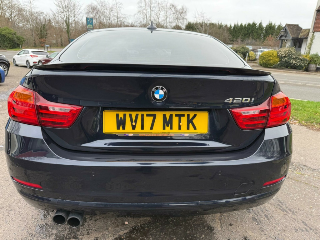 This 2017 BMW 4 Series Gran Coupe 420i Sport boasts a clear vehicle history, offering peace of mind for its next owner. Powered by a responsive 2.0 litre petrol engine, this Euro 6 compliant model delivers an impressive 0-62mph acceleration in just 7.5 seconds. The Sport trim enhances the driving experience with features like seat heating for the driver and front passenger, and the convenience of Park Distance Control for both front and rear, aided by parking assistance sensors. You'll also appreciate the Enhanced Bluetooth Telephone Preparation, complete with a USB audio interface and voice control, alongside stylish brushed aluminium interior trim with a black high-gloss finisher.Beyond its performance and technology, this 4 Series Gran Coupe offers practicality with its large boot space, making it ideal for everyday use and longer journeys. The inclusion of headlight wash ensures visibility is maintained in various conditions. These carefully selected features and its strong provenance indicate that this BMW 4 Series Gran Coupe is a well presented and capable vehicle, ready to provide an enjoyable driving experience.12 MONTHS FREE BREAKDOWN COVER FROM AA hanced bluetooth telephone preparation with usb audio interface and voice control, headlight wash, interior trim - brushed aluminium with black high-gloss trim finisher, dakota leather - black with black interior, variable sport steering, 12v power socket in front centre console and passenger footwell, 18in alloy wheels - double spoke - 397, 6.5in colour display screen, air breather - black high gloss, air conditioning - automatic with two-zone control, air conditioning and radio control panel in high gloss black, airbags, alarm system - thatcham 1 with remote control and engine immobiliser, ambient lighting - switchable bmw classic orange - cold white - led, armrest - front - folding with storage compartment, bmw connecteddrive online services, bmw emergency call, bmw navigation system, bmw professional radio with single cd player - with mp3 playback compatibility, bmw teleservices, battery safety cut off, bluetooth hands-free facility with usb audio interface and audio streaming, bottle holders integrated into door trim storage compartments - front - up to 1 litre, brake pad wear indicator - front and rear, bumper system front and rear - replaceable deformation elements for impacts up to 9mph, central locking switch - doors - fuel filler cap - luggage compartment, centre armrest for rear seats - include two cup holders, centre console - panel highlight in chrome, check control warning system for monitoring of lights and door-luggage compartment open warning, child seat isofix attachment - rear with passenger airbag deactivation, condition based service, crash sensor, cruise control with brake function, cup holders - two in front with sliding lid, dab digital radio, dsc - dynamic stability control plus, direction indicator - side repeaters - integrated in exterior mirrors, direction indicator lenses - led, door sill finishers - neutral bmw designation - front, drive performance control with eco pro - comfort and sport modes, dynamic brake lights, eps - electric power steering, electric windows - front with open-close fingertip control - anti-trap facility and comfort closing function, exhaust tailpipes - dual left - with dark chrome finisher, extended lighting, exterior mirrors - heated - electrically adjustable, exterior parts in body colour, exterior trim - high-gloss black, first aid kit and warning triangle, floor mats - velour, front air inlet with high-gloss black finisher, glove compartment, glove compartment - opener with chrome trim, handbrake lever - gear knob in leather, heat protection glazing with green tint, high level third brake light, instrument cluster, interior lighting - front centre over interior mirror with soft-light and rear centre, interior trim - black high-gloss trim finishers with coral red matt highlight, kidney grille - chrome with extra wide black - high gloss vertical slats, led front foglights, led headlights, led tailights, lights-on warning by audio warning signal when ignition is switched off, luggage compartment - lashing eyes, luggage compartment - light, media package - bmw business, model designation, non smoker package, obc - on-board computer, oil sensor for level and grade - warning by check control system, optimum shift indicator, pdc - park distance control - front and rear, personal profile, rain sensor with automatic headlight activation, real time traffic information, rear bumper with high-gloss black finisher, rear seat headrests - two, rear suspension - five-link, remote control with integrated key with insert in red, run flat tyres, seat belt security check for driver, seat heating for driver and front passenger, seats - 60-40 split folding rear, servotronic steering, shark fin, side armrests - front and rear integrated into door trim, side impact protection, sport instrument cluster with red highlight and chrono scale, sport multi-function leather steering wheel - three-spoke, sport seats - front, start-stop button with comfort go keyless engine start and auto start-stop deactivation button, steering column with manual reach and rake adjustment, storage compartment in rear centre console, sun visors with vanity mirrors and ticket holder, suspension - front aluminium, tailgate operation - automatic, three-point seat belts - all seats, toolkit located in luggage compartment, trim designation deletion, twin horns, tyre pressure monitor with a three-level warning strategy, tyres - reduced rolling resistance, visible vin, welcome light, windscreen washer jets - heated, windscreen wipers - two-speed with adjustable intervals, windscreen with grey shade band, idrive controller - 8 favourite buttons