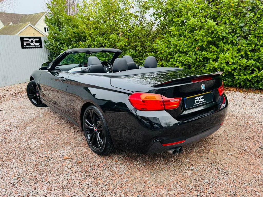 Peverel Car Company are pleased to present this striking 2016 (66) BMW 425d M Sport Convertible Auto, finished in the stunning Black Sapphire Metallic with Black Dakota Leather Upholstery. We have enhanced this vehicle further with bespoke finishing touches such as, Carbon Fibre Style M4 Performance Design Front Sport Splitter, Carbon Fibre Style and Gloss Black Kidney Grilles, Carbon Fibre Style M4 Performance Design Door Mirrors, Carbon Fibre Design Front Bumper Upper Canards, Gloss Black M Performance Style Rear Spoiler and Gloss Black 19 inch M Double Spoke Gloss Black Alloy Wheels. Making this a stand out 4 series. The BMW 4 Series Convertible continues to be a class leader in the executive coupe segment, blending refined performance, elegant styling, and everyday usability. The 425d features BMWs 2.0 litre twin turbocharged diesel engine, delivering an excellent mix of power and fuel efficiency. With 218bhp on tap and mated to BMWs smooth 8-speed automatic transmission, the 425d offers a dynamic yet relaxed drive, ideal for both commuting and long distance touring. The M Sport trim adds a sportier edge, with more aggressive styling and firmer suspension for enhanced road feel. As an M Sport model, this car well equipped with Specification including; BMW Professional Satellite Navigation System, Bluetooth with USB Audio Interface, DAB Digital Radio, Dual Zone Automatic Climate Control Air Conditioning, Black Dakota Leather with Electric Front Seats with Memory Functi Air Breather - Body Colour, 19in Alloy Wheels - M Star Spoke - 403M, 19in Alloy Wheels - M Double Spoke Style, 12V Power Socket - Centre Console, 12V Power Socket - Passenger Footwell, 18in Alloy Wheels - M Double Spoke - 400, 20GB Memory, A Pillar Trim Upper Section - Foam-Backe, ABS - Anti Lock Braking System, ASC - Automatic Stability Control, Active Carbon Microfilter, Air Breather - Black High Gloss, Air Conditioning - Automatic with Two-Zo, Air Conditioning and Radio Control Panel, Airbags - Driver, Airbags - Front Side, Airbags - Passenger, Airbags - Passenger Deactivation, Alarm System Thatcham 1 with Remote Cont, Ambient Lighting - Switchable BMW Classi, Armrest - Front Centre Conso