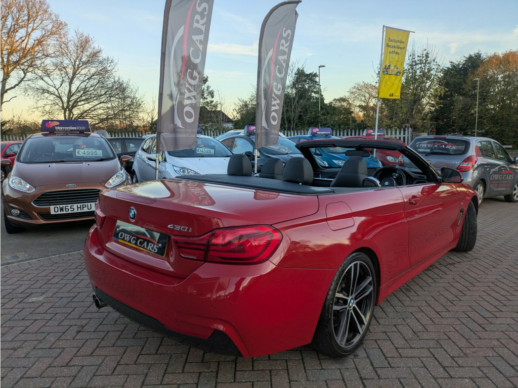 This 2018 BMW 4 Series 2.0 430i M Sport Convertible 2dr Petrol Auto Euro 6 (s/s) (252 ps) Convertible is currently available for £20,999 in Fareham Hampshire with Petrol engine and Automatic gearbox. For more information or to arrange a viewing, click here to send us an email using form below.