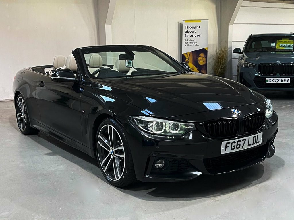 Woods of Wirral presents this 2017 BMW 4 Series 430i M Sport convertible boasting a clear vehicle history. Complimented by a fully documented service history offering peace of mind for its next owner. Finished in the desirable M Sport trim, this stylish convertible is powered by a 2.0 litre petrol engine, meeting Euro 6 emissions standards. This stunning convertible comes with a huge £5,040 of factory fitted upgrades. Inside, you'll find the M Sport Plus Package, which includes a premium branded sound system, and the Convertible Comfort Package, featuring a heated steering wheel for those cooler drives. The interior is further enhanced by Fineline Anthracite Wood trim with a pearl chrome highlight, complemented by a Digital Cockpit for a modern driving experience. Experience impressive performance with this 430i M Sport, accelerating from 0 to 60 mph in just 6.3 seconds. This model also offers excellent fuel economy, achieving up to 45 mpg, and benefits from low CO2 emissions, indicating its efficiency compared to similar vehicles. The combination of its dynamic capabilities, comfort features, and economic advantages makes this BMW 4 Series a compelling choice. Warm Air Collar, M Sport Plus Package, Steering Wheel - Heated, Convertible Comfort Package, 19in Alloy Wheels - M Double Spoke Style, M Sport Braking System, Interior Trim - Fineline Anthracite Wood, High-Beam Assistant, Exterior Mirrors - Electrically Folding , Black Sapphire, 6.5in Colour Display Screen, Access to BMW Connected Plus (12 Month S, Air Breather - Black High Gloss, Air Conditioning - Automatic with Two-Zo, Air Conditioning and Radio Control Panel, Airbags, Alarm System - Thatcham 1 with Remote Co, Ambient Lighting - Switchable BMW Classi, Armrest - Front - Folding with Storage C, Battery Safety Cut Off, Bluetooth Hands-Free Facility with USB A, BMW ConnectedDrive Online Servi