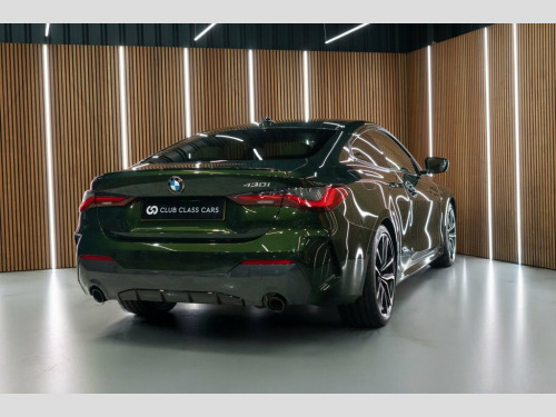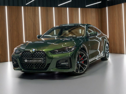 2021 BMW 430i M Sport Coupe 2dr 2.0 Petrol Auto in Sanremo Green with 2 owners and just over 33,000 miles. Fantastic spec including Comfort Plus Package (Keyless Entry / Digital Key / Power Bootlid / Electric Memory Seats / Electric Lumbar Support / Heated Steering Wheel), M Sport Pro Package (19in Alloy Wheels / Head-Up Display / Harman Kardon Sound System / M Sport Brake Calipers / Adaptive Suspension / Shadowline Exterior Trim), Electric Glass Sunroof, Oyster Leather Interior with Heated Front Seats, BMW Live Cockpit Professional, Apple CarPlay, Sat Nav, Adaptive LED Headlights, Adaptive M Suspension, Front & Rear Parking Sensors, Reversing Camera, Cruise Control etc. Full Service History with previous services completed as follows; - 19/10/2023 @ 17,515 miles (BMW) - 21/10/2025 @ 33,234 miles Will come with a new 12 month MOT. 12V Power Socket in Front Centre Console, 18in Alloy Wheels - Double Spoke Style -, Active Guard Plus, Air Conditioning - Automatic with Three-, Airbags, Alarm System - Thatcham 1 with Remote Co, Ambient Lighting with Welcome Light Carp, Armrest - Integrated in Door Trim Front , Attentiveness Assistant, BMW Connected Package Professional, BMW ConnectedDrive Online Services, BMW Emblem on Engine Compartment Lid and, BMW Emergency Call, BMW Kidney Grille with Mesh Grille - Fro, BMW Live Cockpit Professional, BMW Mobility Kit, BMW TeleServices, Battery Safety Cut-Off in the Event of a, Bluetooth Hands-Free Facility with USB A, Brake Energy Regeneration, Brake Pad Wear Indicator - Front and Rea,