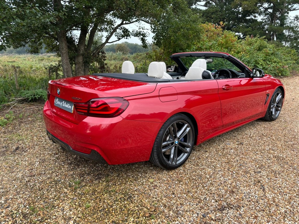 Car of Winkton have the pleasure in offering to the market place this eye catching BMW 420 2.0 Automatic Convertible M Sport Edition. Presented in the beautiful colour combination Melbourne Red accompanied with Full Opel White Extended Leather. This exemplary car boasts JUST Two former careful fastidious owners from new whom have kept this credible car to the highest exacting standards (Always Garaged). Only 20,000 Sparingly used miles with Full Service History. The responsive 2.0 petrol engine and simplistic automatic gearbox are perfectly matched to deliver an effortless engaging driving experience with no compromise on reduced running costs. The M Sport edition comes fully equipped as standard with this particular car offering a superior level of specification with a host of additional factory options. This practical convertible guarantees to exceed all expectations of a fun factor convertible. Viewing is highly advised to appreciate. Please check with a member of our sales department that your chosen car of interest is onsite, on occasions vehicles are stored off premises. Cars of Winkton bring into effect a wealth of knowledge, that only many years of experience and time can provide. We have earned a reputation of trust and reliability for providing some of the best quality low mileage prestigious used cars with known vehicle history at competitive prices. We pride ourselves on the professional dedicated service we provide to all of our customers. We understand that buying a car can be a daunting prospect, so we strive to make the buying process as simple and hassle-free as possible. Whilst every effort has been made to ensure the accuracy of the above information sometimes errors may occur. 12V Power Socket in Front Centre Console and Passenger Footwell,18in Alloy Wheels - M Double Spoke - 400M,6.5in Colour Display Screen,Access to BMW Connected Plus (12 Month Subscription From New),Air Breather - Black High Gloss,Air Conditioning Automatic with Two-Zone Control,Air Conditioning and Radio Control Panel in High Gloss Black,Airbags,Alarm System - Thatcham 1 with Remote Control and Engine Immobiliser,Ambient Lighting - Switchable BMW Classic Orange - Cold White - LED,Armrest - Front - Folding with Storage Compartment,BMW ConnectedDrive Online Services,BMW Emergency Call,BMW Professional Radio with Single CD Player - with MP3 Playback Compatibility,BMW TeleServices,Battery Safety Cut Off,Bluetooth Hands-Free Facility with USB Audio Interface and Audio Streaming,Boot Lid Lock with Soft Close Function,Bottle Holders Integrated into Door Trim Storage Compartments - Front - Up to 1 litre,Brake Pad Wear Indicator - Front and Rear,Bumper System Front and Rear - Replaceable Deformation Elements for Impacts Up to 9mph,Central Locking Switch - Doors - Fuel Filler Cap - Luggage Compartment,Centre Console - Panel Highlight in Chrome,Check Control Warning System for Monitoring of Lights and Door-Luggage Compartment Open Warning,Child Seat ISOFIX Attachment - Rear with Passenger Airbag Deactivation,Condition Based Service,Crash Sensor,Cruise Control with Brake Function,Cup Holders - Two in Front with Sliding Lid,DAB Digital Radio,DSC - Dynamic Stability Control Plus,Direction Indicator - Side Repeaters - Integrated in Exterior Mirrors,Direction Indicator Lenses - LED,Door Sill Finishers - M Designation,Dynamic Brake Lights,EPS - Electric Power Steering,Electric Windows - Front with Open-Close Fingertip Control - Anti-Trap Facility and Comfort Closing Function,Exhaust Tailpipes - Dual Left - with Chrome Finisher,Extended Lighting,Exterior Mirrors - Heated - Electrically Adjustable,Exterior Parts in Body Colour,Exterior Trim - High-Gloss Shadowline,First Aid Kit and Warning Triangle,Floor Mats - Velour,Full Black Panel Display,Glove Box,Handbrake Lever - Gear Knob in Leather,Heat Protection Glazing with Green Tint,High Level Third Brake Light,Instrument Cluster,Interior Lighting - Front Centre Over Interior Mirror with Soft-Light and Rear Centre,Interior Trim - Aluminium Hexagon Trim Finishers with Estoril Blue Matt Highlight,Kidney Grille - Chrome with Extra Wide Black - High Gloss Vertical Slats,LED Front Foglights,LED Headlights,LED Taillights with New 3D L-Shaped LED Light Design,Lights-On Warning by Audio Warning Signal When Ignition is Switched Off,Loading Aid,Luggage Compartment - Lashing Eyes,Luggage Compartment - Light,M Aerodynamic Bodystyling,M Sport Instrument Cluster,M Sport Multi-Function Leather Steering Wheel - Three-Spoke,M Sport Package,M Sport Suspension,Media Package - BMW Professional,Model Designation,Non Smokers Package,OBC - On-Board Computer,Oil Sensor For Level and Grade - Warning by Check Control System,Optimum Shift Indicator,PDC - Park Distance Control - Front and Rear,Personal Profile,Rain Sensor with Automatic Headlight Activation,Real Time Traffic Information,Rear Seat Headrests - Two,Rear Suspension - Five-Link,Remote Control Including Integrated Key - 2,Remote Control with Integrated Key with Insert in Blue,Remote Services,Roof - Retractable Hard Top,Run Flat Tyres,Seat Adjustment - Front Electric with Driver Memory,Seat Belt Security Check for Driver,Seat Heating for Driver and Front Passenger,Servotronic Steering,Shark Fin,Side Armrests - Front and Rear Integrated into Door Trim,Side Exterior M Designation Badges,Side Impact Protection,Sport Automatic Transmission,Sport Seats - Front,Start-Stop Button with Comfort Go Keyless Engine Start and Auto Start-Stop Deactivation Button,Steering Column with Manual Reach and Rake Adjustment,Storage Compartment - Behind Rear Seat Backrest,Storage Compartment in Rear Seat Base Centre,Sun Visors with Vanity Mirrors and Ticket Holder,Suspension - Front Aluminium,Three-Point Seat Belts - All Seats,Toolkit Located in Luggage Compartment,Twin Horns,Tyre Pressure Monitor with a Three-Level Warning Strategy,Tyres - Reduced Rolling Resistance,Visible VIN,Welcome Light,Windscreen Washer Jets - Heated,Windscreen Wipers - Two-Speed with A
