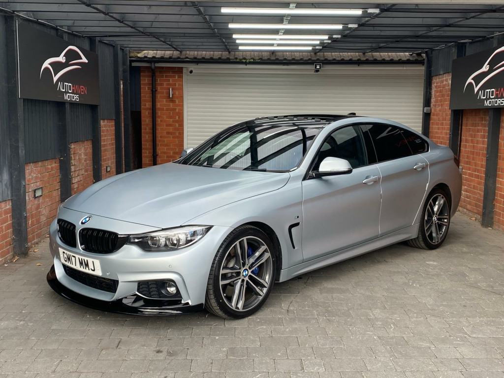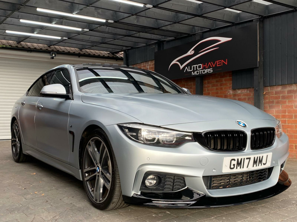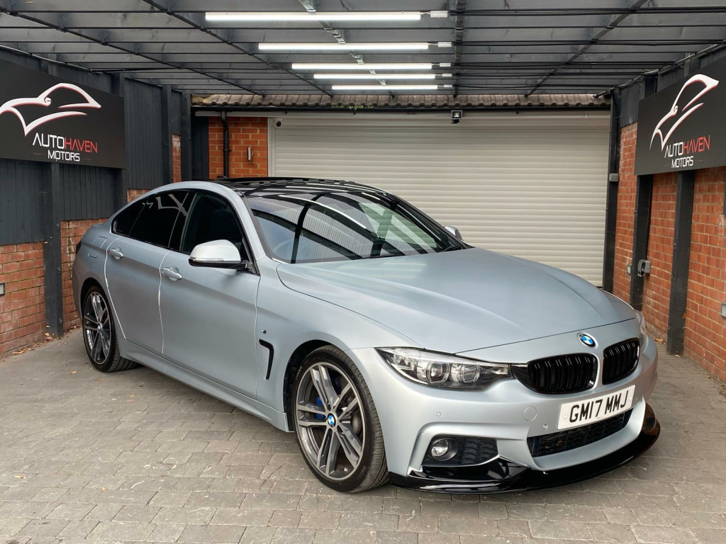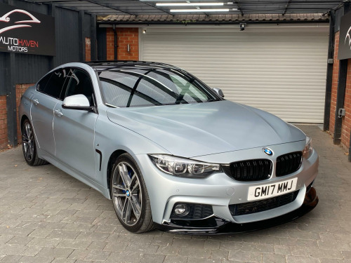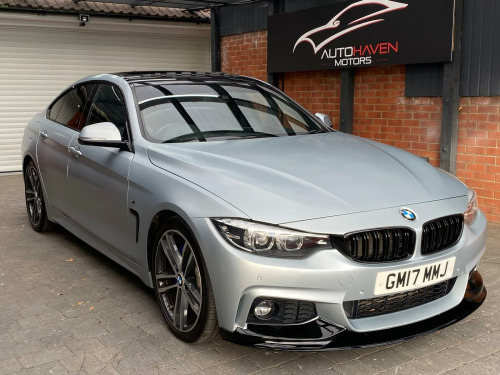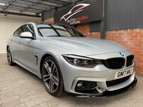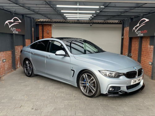This 2017 BMW 4 Series Gran Coupe 430d M Sport presents an exceptional opportunity with its remarkably low mileage of just 60,741 miles and comes with a FULL BMW Service history - Bar 1 which was done at a specialist. This is an INDIVIDUAL Colour of Frozen Silver with Black leather seats which looks stunning. This Euro 6 compliant diesel model boasts a powerful 3.0L engine and benefits from a clear vehicle history check, offering peace of mind. Inside, you'll find a wealth of premium features designed to enhance your driving experience, including a luxurious glass sunroof, a high quality Harman Kardon loudspeaker system for immersive audio, and a heated steering wheel for added comfort. The advanced Head Up Display projects vital information directly into your line of sight, while the Adaptive M Sport Suspension ensures dynamic handling and a smooth ride. It also comes with MSPORT BRAKES, M SPORT PLUS PACKAGE, HARMON KARDEN SOUND SYSTEM, ADAPTIVE SUSPENSION, REVERSE CAMERA, GHOST IMMOBILISER, FOLDING MIRRORS, PRIVACY GLASS, HIGH BEAM ASSIST, M PERFORMNACE KIT.The performance of this 430d M Sport is truly impressive, achieving 0-62mph in a swift 5.6 seconds, demonstrating its potent acceleration capabilities. This level of performance, combined with the large boot space, sets it apart from many other vehicles in its class. The M Sport trim further accentuates its sporty character, making this BMW 4 Series Gran Coupe a compelling choice for those seeking a blend of performance, luxury, and practicality.This is a lovely example. HPI CLEAR, Comes with 2 KEYS all the manuals. FINANCE AVAILABLE SO CALL US. PART EXCHANGE ALSO CONSIDERED. OUR CARS ARE READY TO BE DRIVEN AWAY SAME DAY. Please call for more info + NATIONWIDE DELIVERY+EXTENDED WARRANTY AVAILABLE. ple carplay preparation, head-up display, loudspeaker system - harman kardon, reversing assist camera, 19in alloy wheels - m double spoke style 704m - bi-colour orbit grey, exterior mirrors - electrically folding with anti dazzle, frozen silver, glass sunroof, m sport plus package, sun protection glazing, dakota leather - black with black interior, interior trim - bmw individual - piano black trim finishers with pearl chrome highlight, model designation deletion, split folding rear seat, steering wheel - heated, high-beam assistant, adaptive m sport suspension, m sport braking system, 12v power socket in front centre console and passenger footwell, 18in alloy wheels - m double spoke - 400m, air breather - black high gloss, air conditioning - automatic with two-zone control, air conditioning and radio control panel in high gloss black, airbags, alarm system - thatcham 1 with remote control and engine immobiliser, ambient lighting - switchable bmw classic orange - cold white - led, armrest - front - folding with storage compartment, bmw connecteddrive online services, bmw emergency call, bmw professional navigation, bmw teleservices, battery safety cut off, bluetooth hands-free facility with usb audio interface and audio streaming, bottle holders integrated into door trim storage compartments - front - up to 1 litre, brake pad wear indicator - front and rear, bumper system front and rear - replaceable deformation elements for impacts up to 9mph, central locking switch - doors - fuel filler cap - luggage compartment, centre armrest for rear seats - include two cup holders, centre console - panel highlight in chrome, check control warning system for monitoring of lights and door-luggage compartment open warning, child seat isofix attachment - rear with passenger airbag deactivation, condition based service, crash sensor, cruise control with brake function, cup holders - two in front with sliding lid, dab digital radio, dsc - dynamic stability control plus, direction indicator - side repeaters - integrated in exterior mirrors, direction indicator lenses - led, door sill finishers - m designation, dynamic brake lights, eps - electric power steering, electric windows - front with open-close fingertip control - anti-trap facility and comfort closing function, exhaust tailpipes - dual left - with chrome finisher, extended lighting, exterior mirrors - heated - electrically adjustable, exterior parts in body colour, exterior trim - high-gloss shadowline, first aid kit and warning triangle, floor mats - velour, full black panel display, glove compartment, glove compartment - opener with chrome trim, handbrake lever - gear knob in leather, headlining - anthracite, heat protection glazing with green tint, high level third brake light, incorrect fuelling protection system, instrument cluster, interior lighting - front centre over interior mirror with soft-light and rear centre, interior trim - aluminium hexagon trim finishers with estoril blue matt highlight, kidney grille - chrome with extra wide black - high gloss vertical slats, led front foglights, led headlights, led tailights, lights-on warning by audio warning signal when ignition is switched off, luggage compartment - lashing eyes, luggage compartment - light, m aerodynamic bodystyling, m sport instrument cluster, m sport multi-function leather steering wheel - three-spoke, m sport package, m sport suspension, media package - bmw professional, model designation, non smoker package, obc - on-board computer, oil sensor for level and grade - warning by check control system, optimum shift indicator, pdc - park distance control - front and rear, personal profile, rain sensor with automatic headlight activation, real time traffic information, rear seat headrests - two, rear suspension - five-link, remote control with integrated key with insert in blue, run flat tyres, seat adjustment - front electric with driver memory, seat belt security check for driver, seat heating for driver and front passenger, seats - 60-40 split folding rear, servotronic steering, shark fin, side armrests - front and rear integrated into door trim, side exterior m designation badges, side impact protection, sport seats - front,