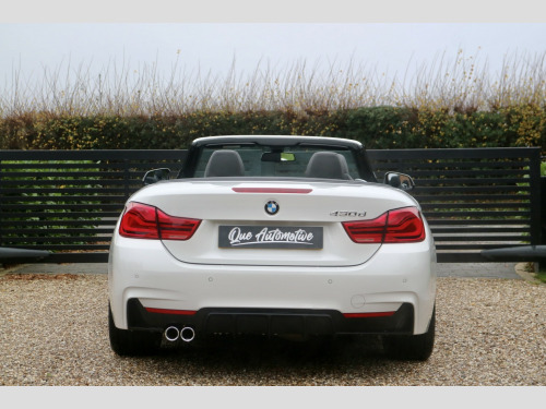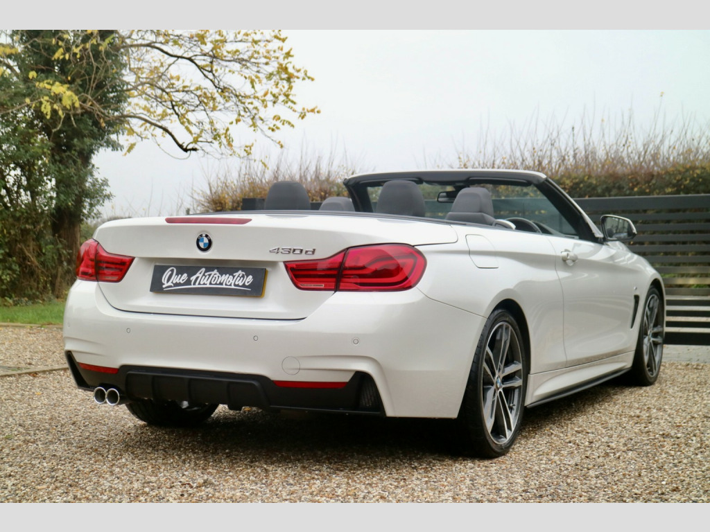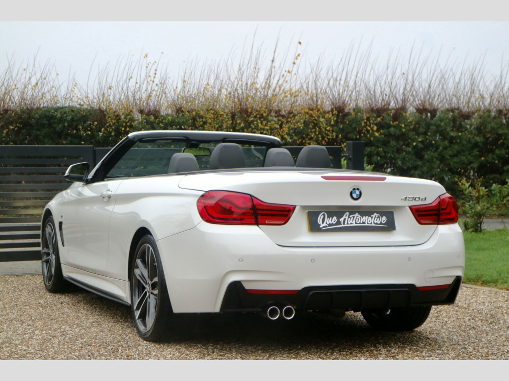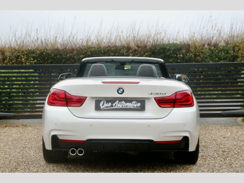 Welcome to the sale of this 2018 BMW 430d M Sport Convertible finished in Alpine White. This vehicle boasts a full and up to date service history with MOT until November 2026. We have just carried out a major service, this included all filters including the fuel filter and a brake fluid change. We have replaced the brake pads on all four corners and replaced all 4 tyres following a professional strip & repaint wheel refurbishment back to factory diamond cut spec with orbit grey centres. , Upgrades include: Heated Electric Front Seats with Memory Function, Heated Steering Wheel, M Sport Brakes, Harmon Kardon, Convertible Comfort Package, Reverse Camera, High Beam Assist, Warm Air Collar. , QUE AUTOMOTIVE - Car sales with genuine car enthusiasts. Located in Colchester, Essex we are easy to reach by road, rail and air. We offer a range of different finance packages including PCP and HP and through our network of Finance Brokers we\re able to source the best possible finance deal available to you. All our vehicles come with a 3 Month Warranty as standard. Viewings are carried out on an appointment only basis so please contact us prior to travelling.