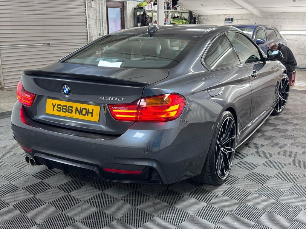 A truly beautiful and practical 2016 BMW 430d M Sport with M-Performance kit ready for viewing at Roy Hanna Motors! 2 Keys. MOT to 14th November 2026. This car has services recorded on the in-car service history computer. ~ 12,769 miles. ~ 35,060 miles. ~ 46,592 miles. We will fully service this car and perform a full pre-delivery check for the lucky new owners. * Brand new Alloy wheels and tyres shown on car are a optional extra.* * We have a variety of wheels to chose from for each vehicle* Packed full of factory extras like - ~ iDrive controller. ~ Control display - 6.5" colour display screen. ~ Stop/start button. ~ iDrive Controller with 8 favourite buttons. ~ Cruise control with brake function. ~ M Performance kit. ~ Bluetooth audio streaming. ~ Black leather interior. ~ Front fog lights. ~ Front sport seats. ~ Front & rear parking sensors. ~ BMW Teleservices. ~ Rear tinted windows. ~ Chrome exhaust tailpipe. ~ Bluetooth handsfree. ~ Remote central locking. ~ Climate and traction controls. ~ Steering wheel mounted controls. ~ AUX & USB connectivity. ~ CD/Radio Player. ~ Body Coloured Bumpers. ~ Electric windows. *We Have Many Different Finance HP & PCP Deals Available To Suit Your Budget, You Can Drive Away In Your New Car With £0 Deposit & Pay Nothing For 2 Full Months! *For A Personalised Quote Give Us A PM / Text / Call Or Propose Yourself For Finance On Our Website *All Usual Dealer Facilities Available. *Credit/Debit Cards Ac 12V Power Socket in Front Centre Console, 18in Alloy Wheels - M Double Spoke - 400, 19in Alloy Wheels - M Double Spoke Style, 3.5mm Auxiliary Input Point in Centre Co, 6.5in Colour Display Screen, Air Breather - Black High Gloss, Air Conditioning - Automatic - Dual Zone, Air Conditioning and Radio Control Panel, Airbags, Alarm System - Thatcham 1 with Remote Co, Ambient Lighting - Switchable BMW Classi, Armrest - Front - Folding with Storage C, Armrest - Rear Centre with Two Cupholder, Automatically Dimming Rear View Mirror, Battery Safety Cut Off, Bluetooth Hands-Free Facility with USB A, BMW ConnectedDrive Online Services, BMW Emergency Call, BMW Professional Radio with Single CD Pl, BMW T
